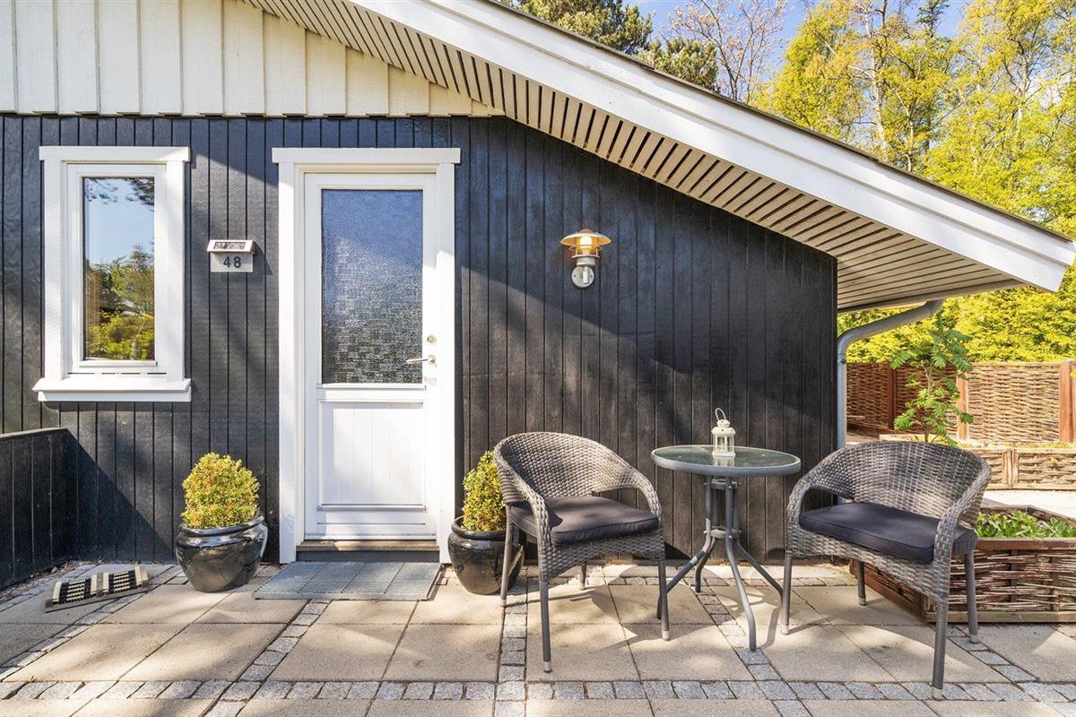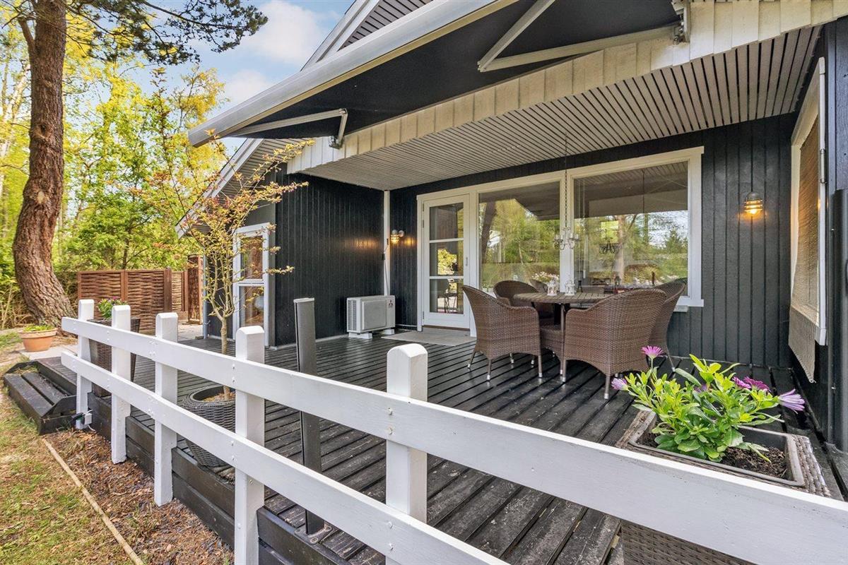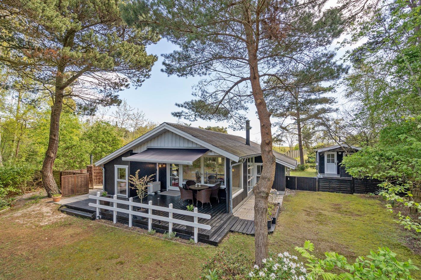 De vakantiewoning is gelegen op een 982 m² groot aangelegde tuin. De grond is omheind. Afstand tot de zee 75 m. Dichtstbijzijnde winkel 4500 m. Er is een golfbaan op een afstand van 10000 m. Bij de vakantiewoning hoort 50 m² terras. Daarnaast is er een 12 m² groot overdekt terras. Parkeerplaats bij het huis.