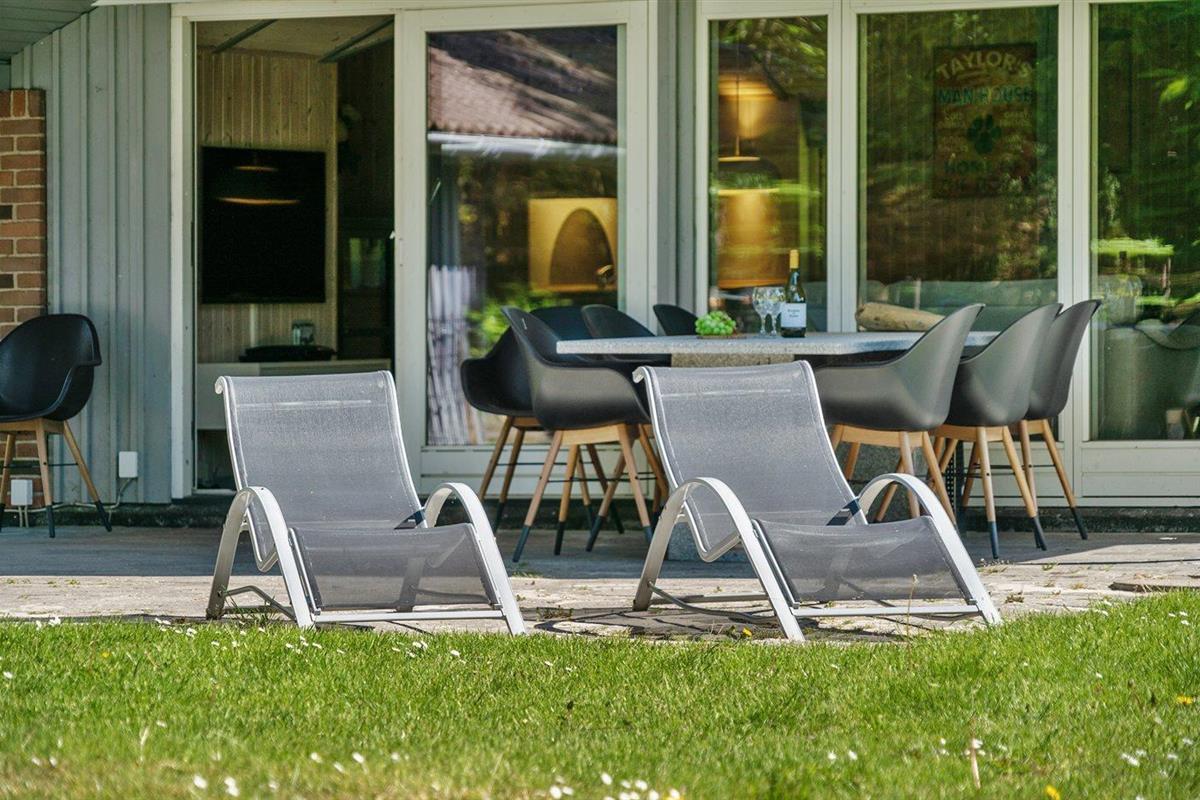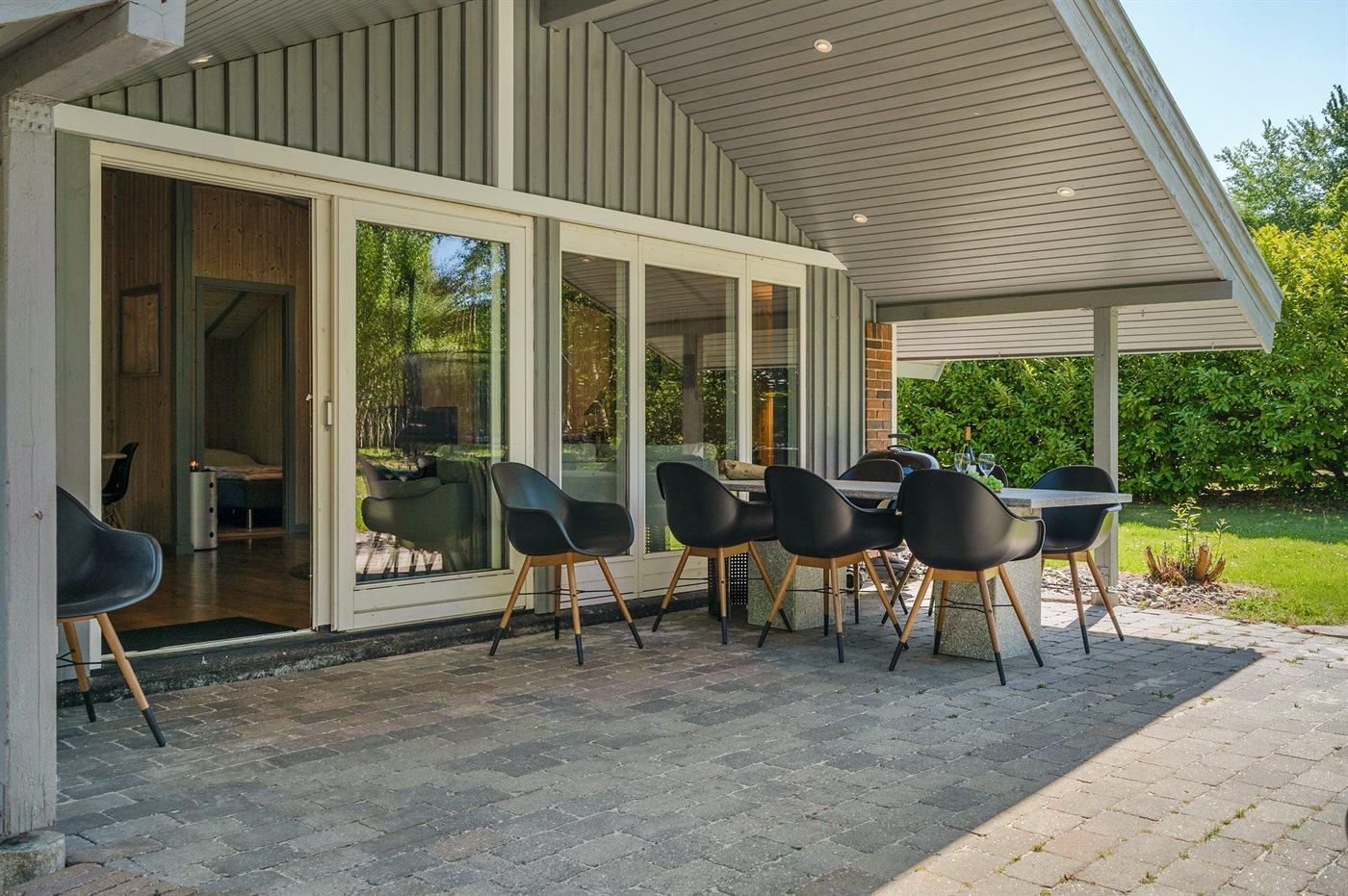 De vakantiewoning is gelegen op een 1160 m² groot aangelegde tuin. De grond is omheind. Afstand tot de zee 600 m. Dichtstbijzijnde winkel 3850 m. Bij de vakantiewoning hoort 60 m² terras. Daarnaast is er een 10 m² groot overdekt terras. Trampoline. Barbecue. Carport ter beschikking. Parkeerplaats bij het huis.