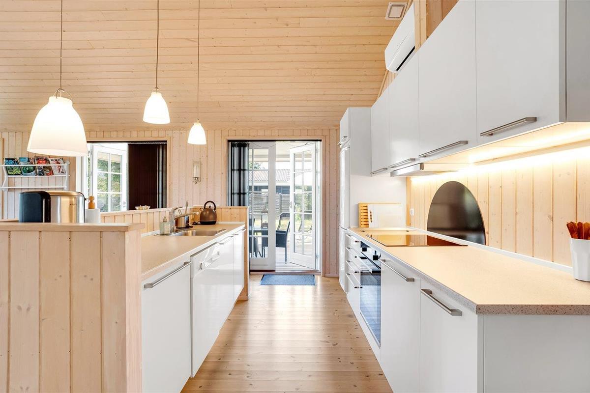 De keuken is uitgerust met koelkast Er is 4 inductiekookplaten, heteluchtoven, magnetron en vaatwasser.