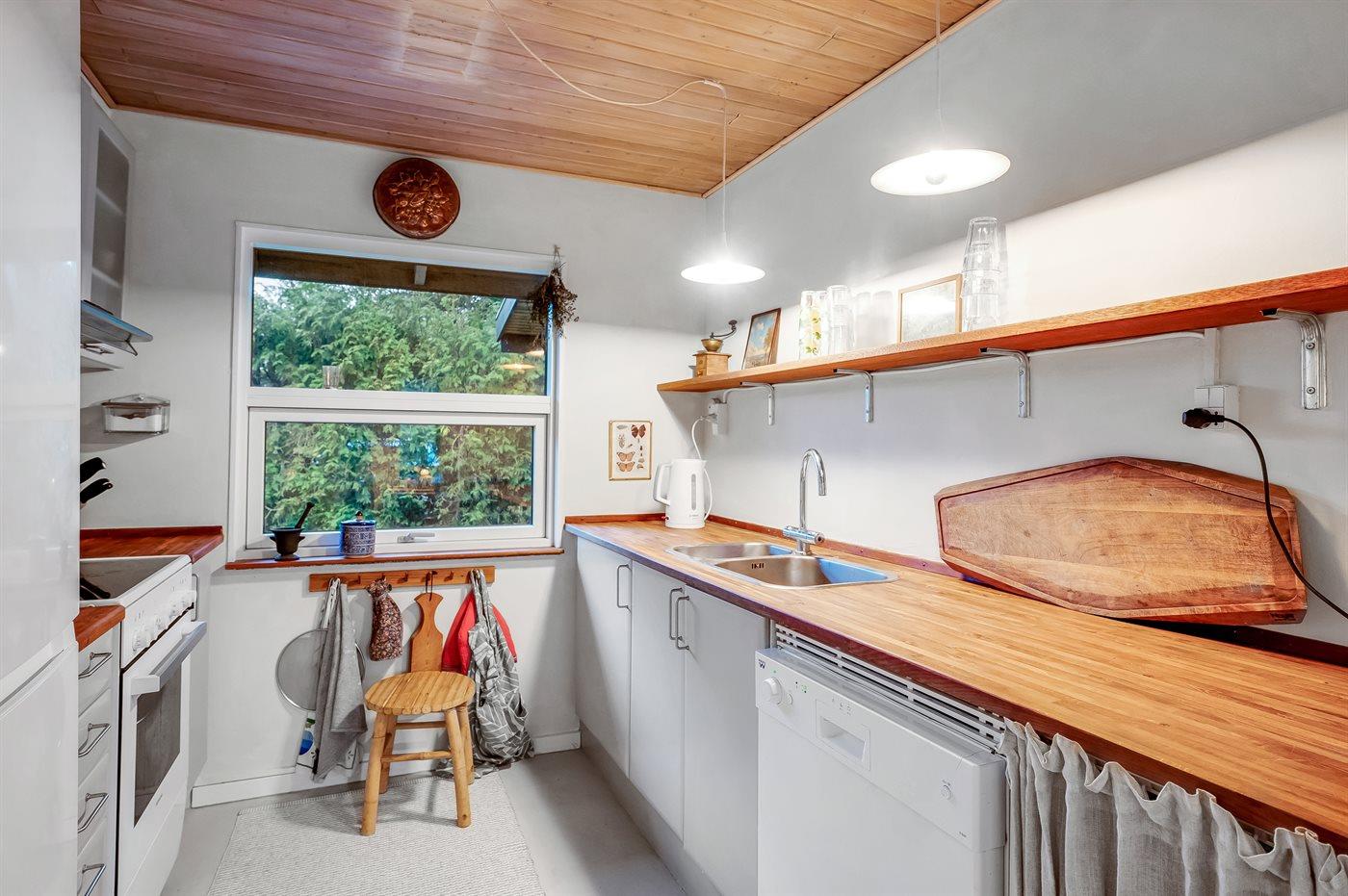 De keuken is uitgerust met koelkast Er is 4 elektrische kookplaten, heteluchtoven, magnetron en vaatwasser.