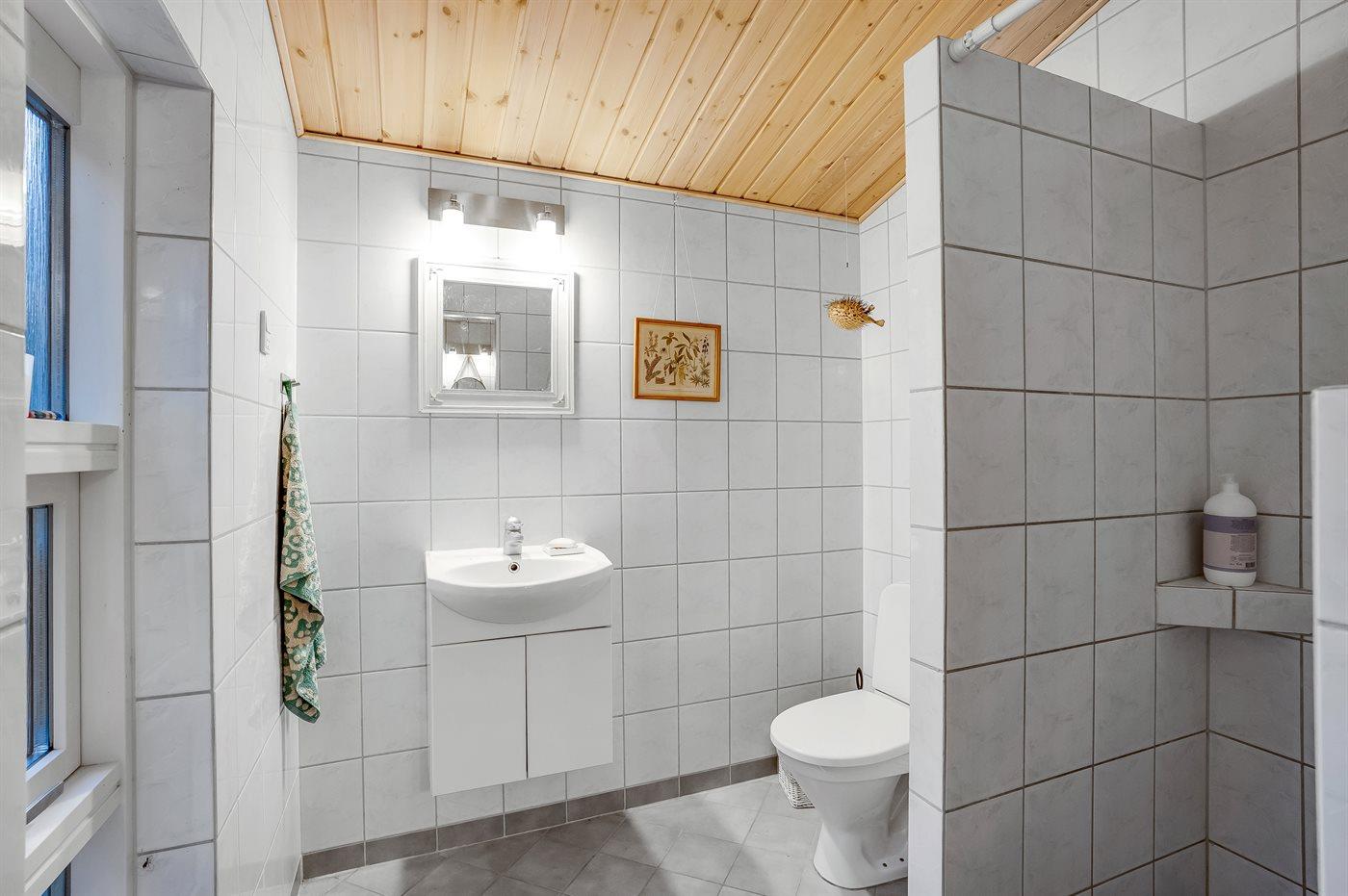 Er is 1 badkamer met douchehok en 2 toiletten, waarvan 1 gastentoilet. Er is vloerverwarming in 1 badkamer.