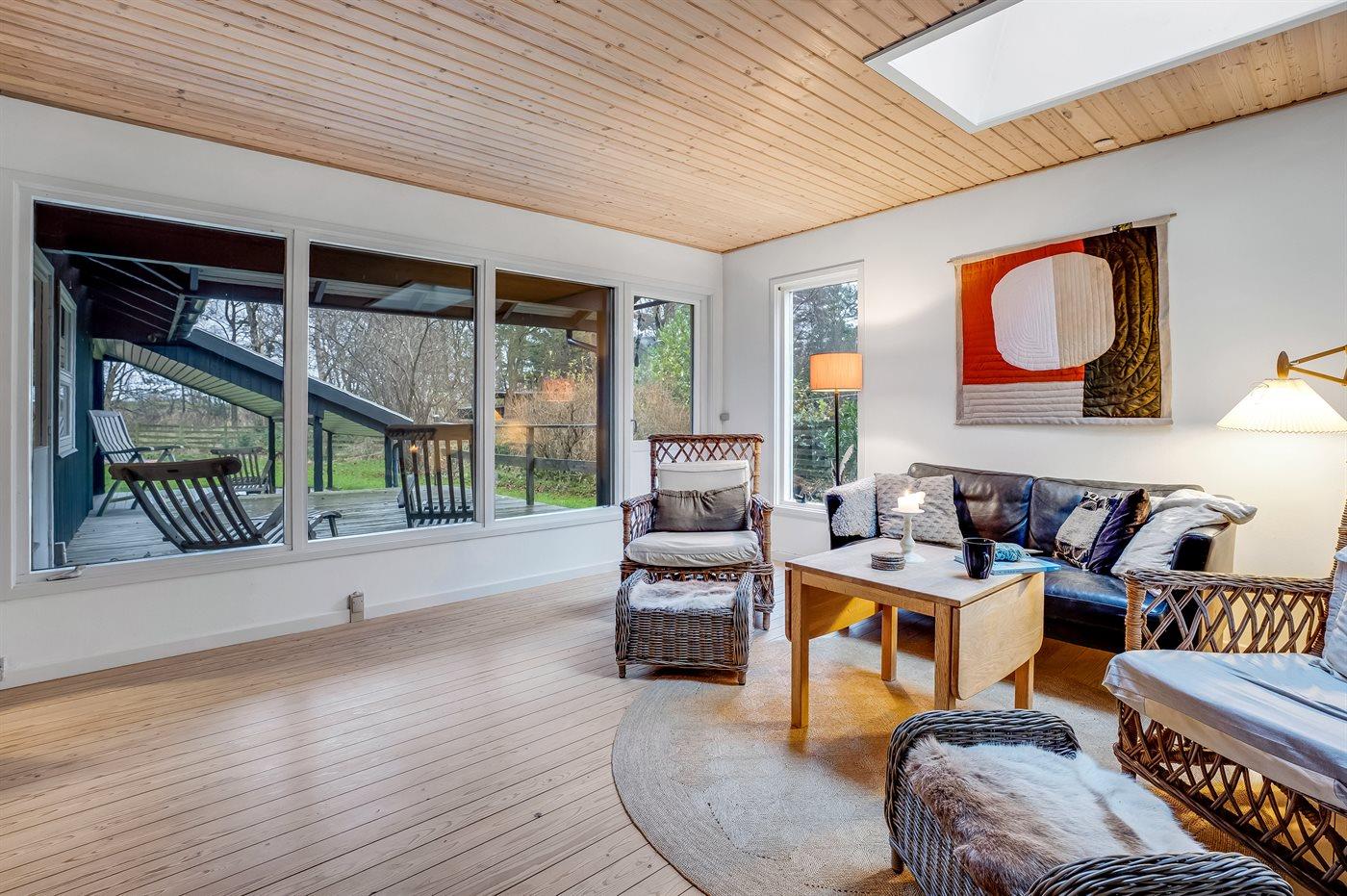 De vakantiewoning is gelegen op een 1026 m² groot aangelegde tuin. De grond is omheind. Afstand tot de zee 20 m. Dichtstbijzijnde winkel 4000 m. Er is een golfbaan op een afstand van 7000 m. Bij de vakantiewoning hoort deels overdekt en beschut terras. Schommel. Speeltoren. Afstand tot speelplaats 1000 m. Op zwoele avonden zorgt de buitenhaard voor een gezellige sfeer. Barbecue. Parkeerplaats bij het huis.