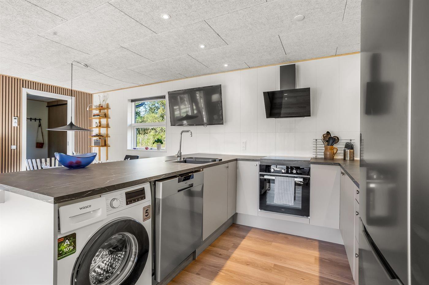 De keuken is uitgerust met koelkast Er is 4 inductiekookplaten, heteluchtoven, magnetron, Airfryer alsook een vaatwasser, koffiemachine, broodrooster, garde en wafelijzer.
