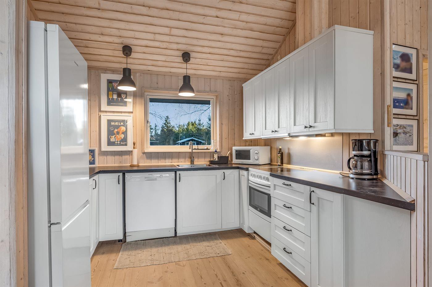 De keuken is uitgerust met koelkast Er zijn 4 keramische kookplaten, heteluchtoven, magnetron en vaatwasser.