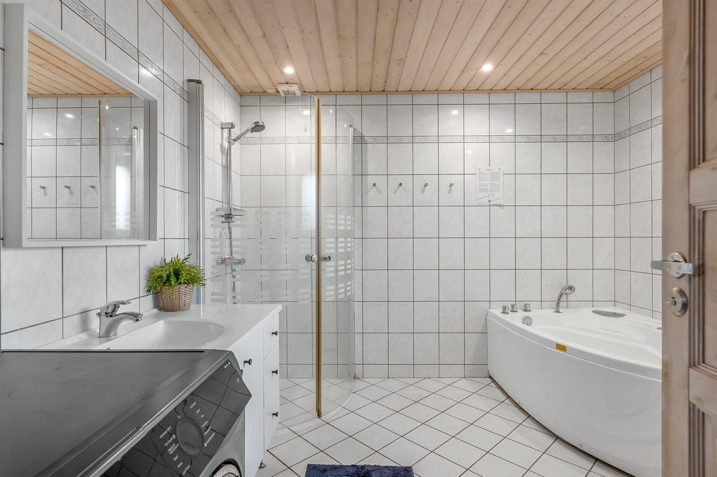 Er is 2 badkamers met douchehok en 2 toiletten. Er is vloerverwarming in 2 van de badkamers.
