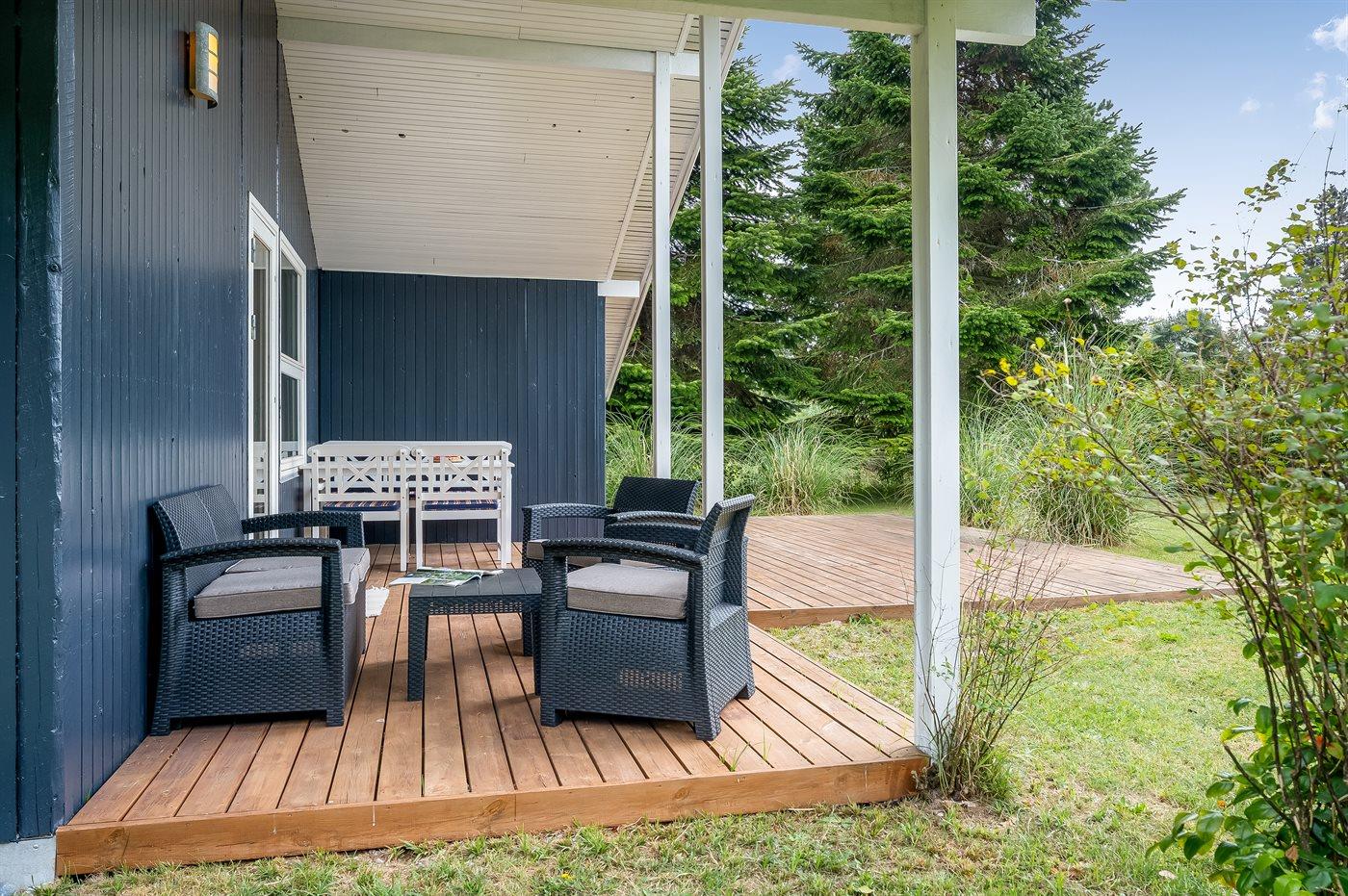 De vakantiewoning is gelegen op een 971 m² groot aangelegde tuin. Afstand tot de zee 800 m. Dichtstbijzijnde winkel 4400 m. Bij de vakantiewoning hoort terras. Daarnaast is er een overdekt terras. Parkeerplaats bij het huis.