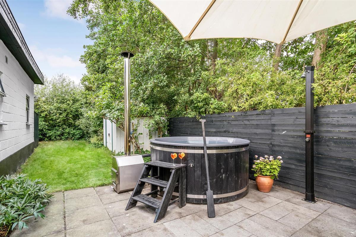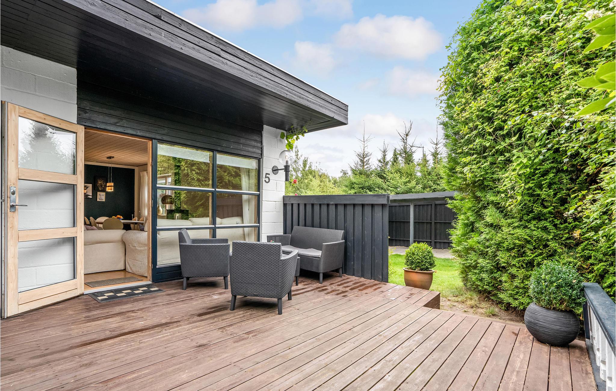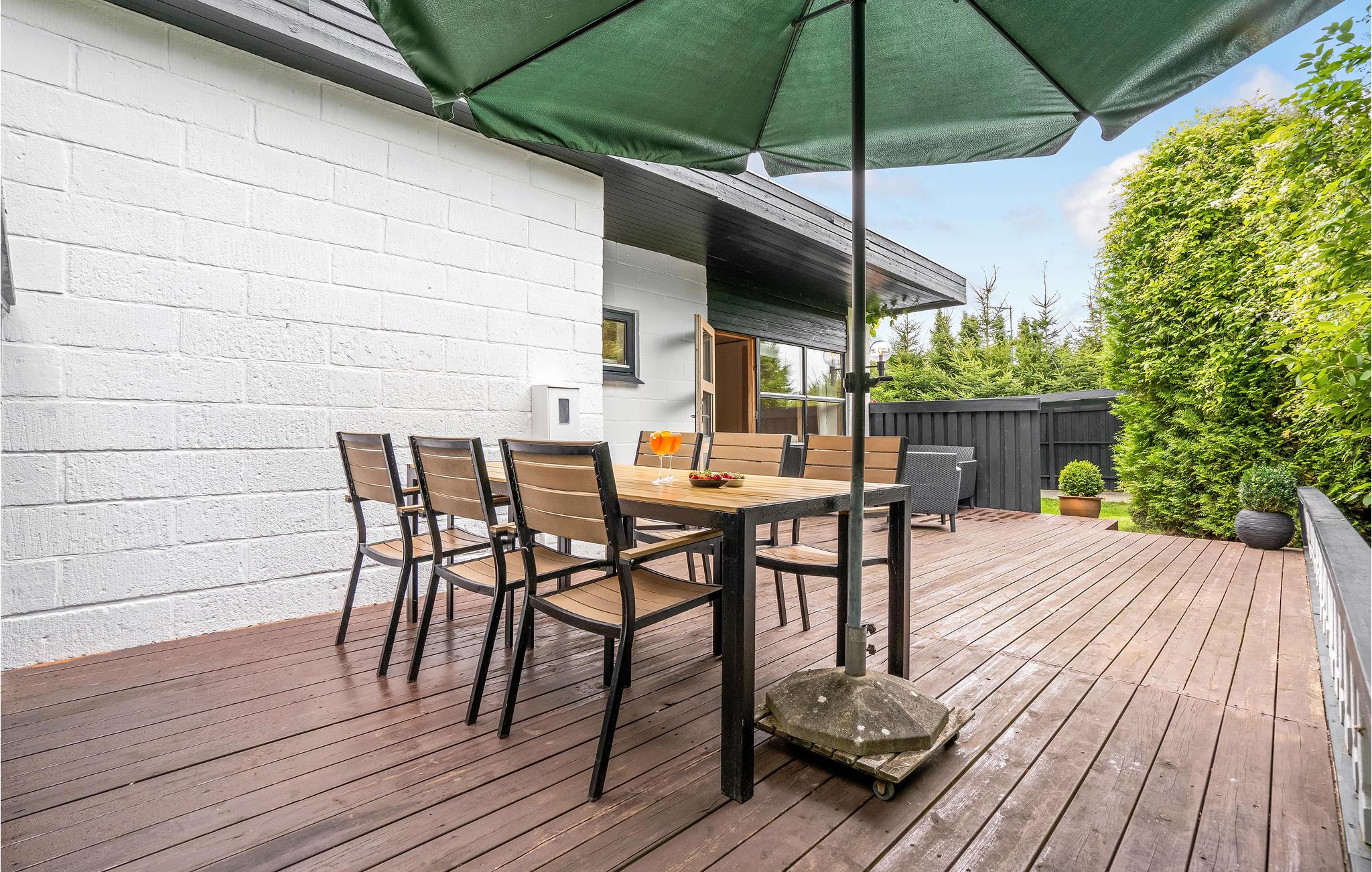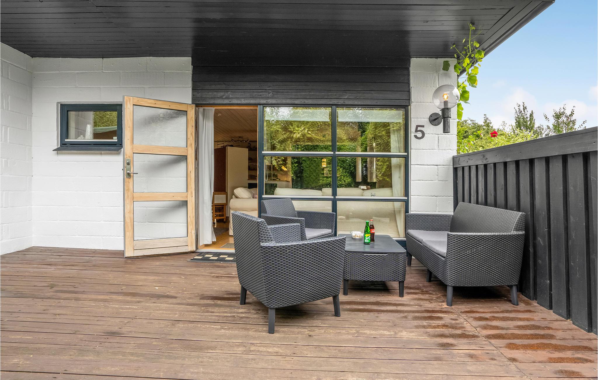 Binnen vindt u een smaakvol ingerichte woonkamer en open keuken. Met wifi is voor entertainment gezorgd. Er is ook een grote serre, verschillende terrassen waar u altijd beschutting en zon kunt vinden en kunt genieten van al uw maaltijden. Het gaat hier echt om rust en gezelligheid. Ook buiten nodigen het wildernisbad en de buitendouche uit tot wellness in je eigen vakantiehuis. Dankzij een terrasverwarmer kunt u de Deense zomeravonden buiten doorbrengen.