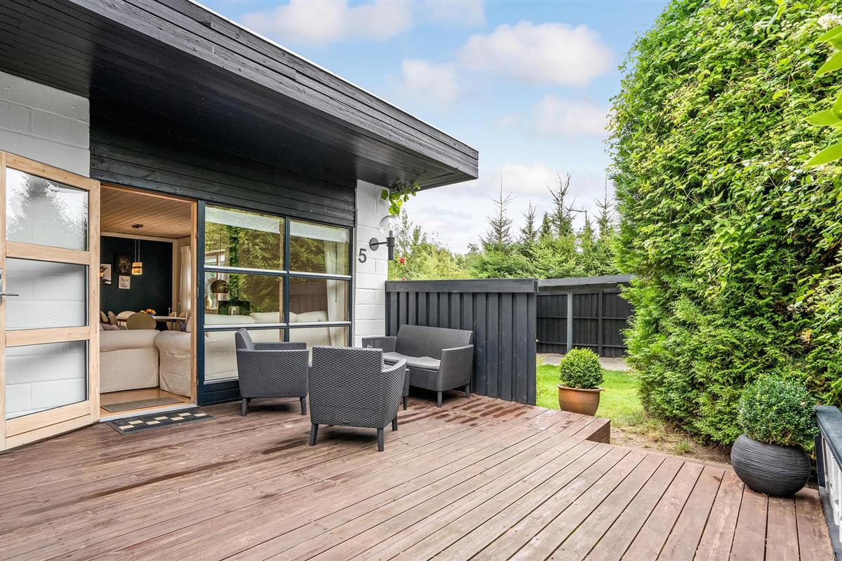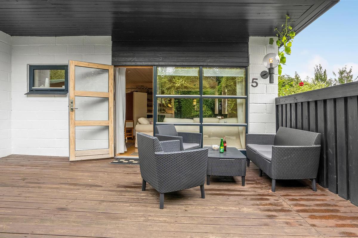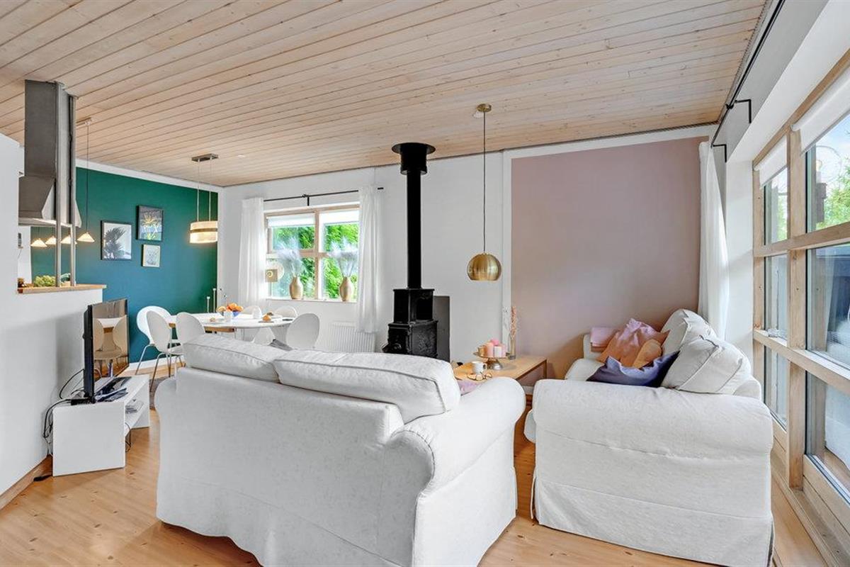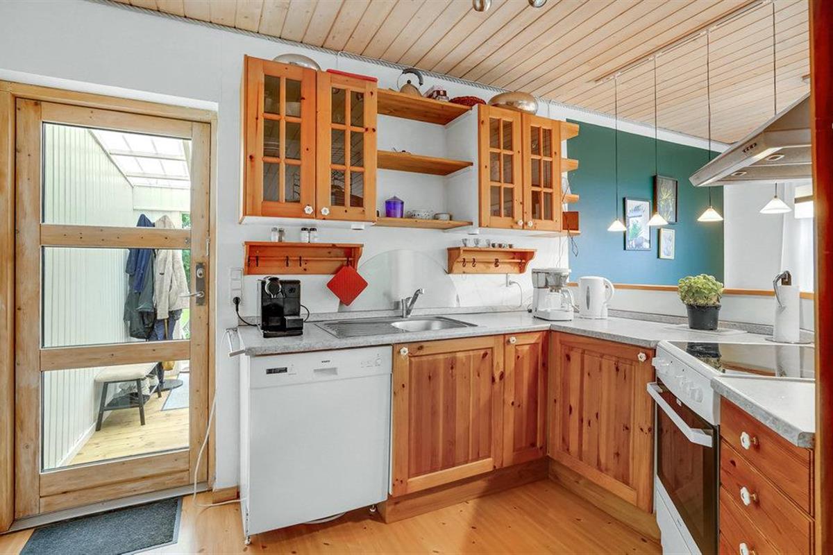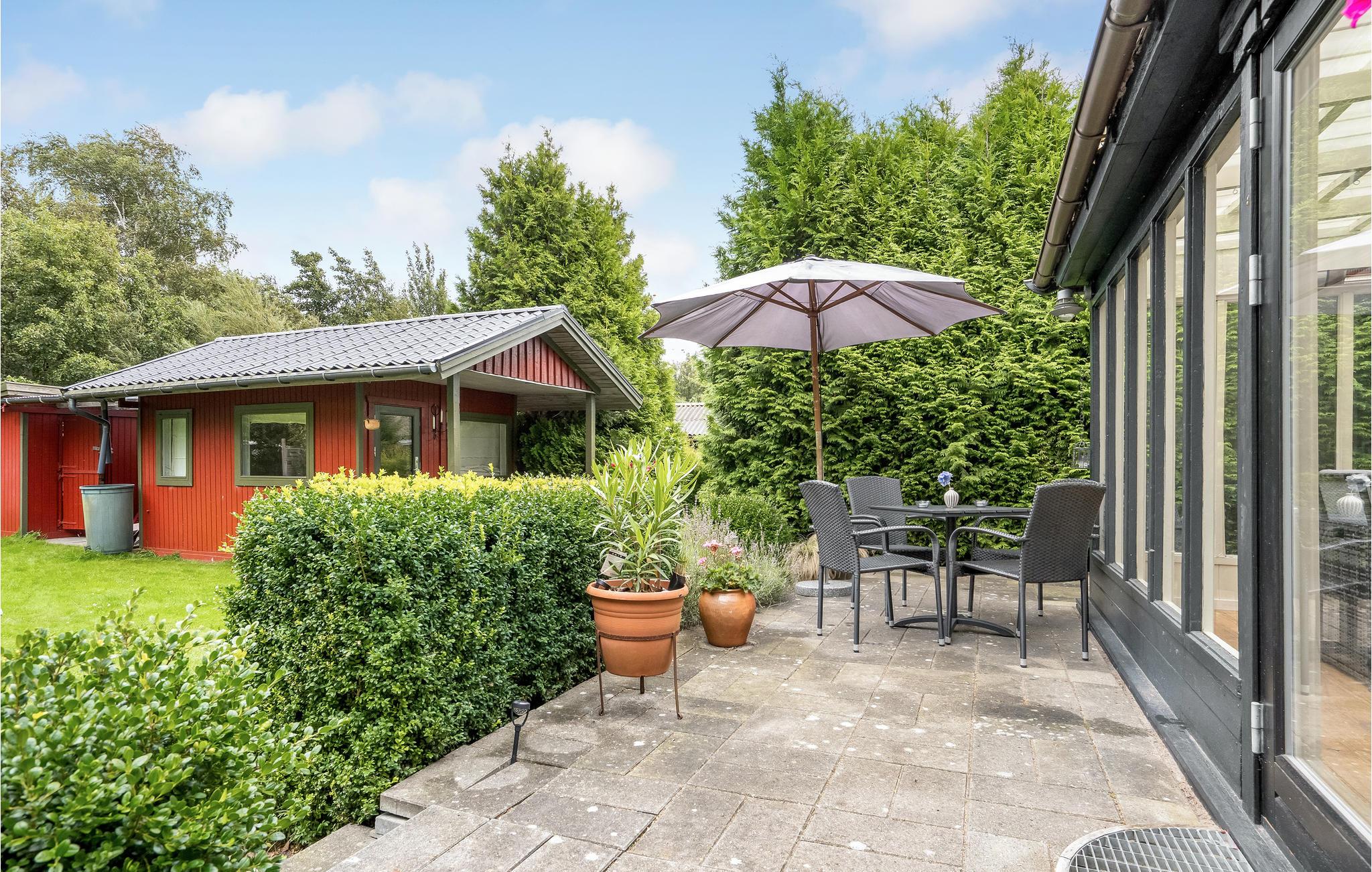 Binnen vindt u een smaakvol ingerichte woonkamer en open keuken. Met wifi is voor entertainment gezorgd. Er is ook een grote serre, verschillende terrassen waar u altijd beschutting en zon kunt vinden en kunt genieten van al uw maaltijden. Het gaat hier echt om rust en gezelligheid. Ook buiten nodigen het wildernisbad en de buitendouche uit tot wellness in je eigen vakantiehuis. Dankzij een terrasverwarmer kunt u de Deense zomeravonden buiten doorbrengen.