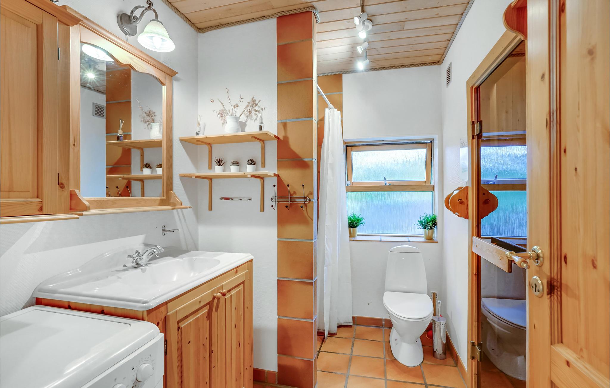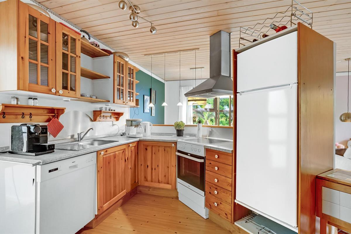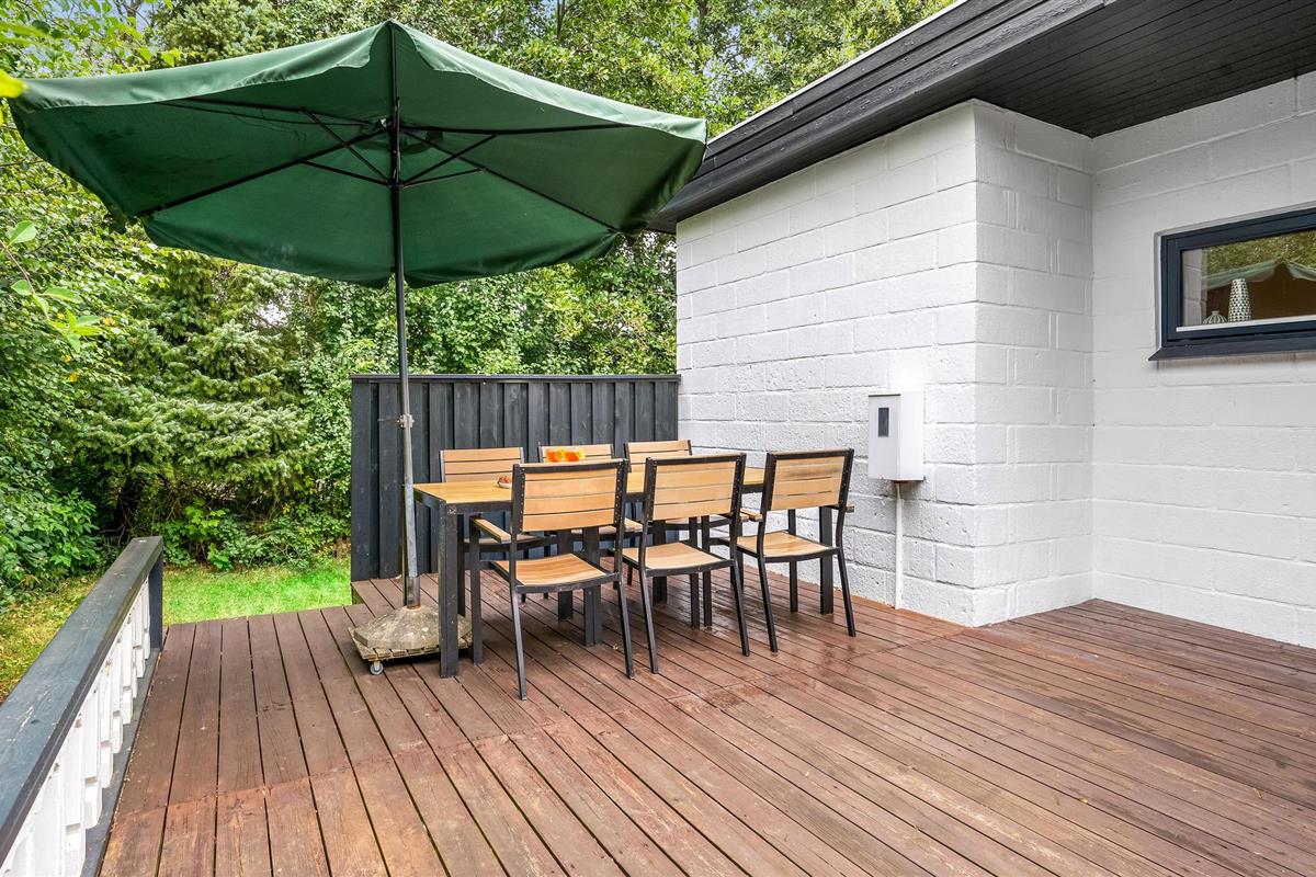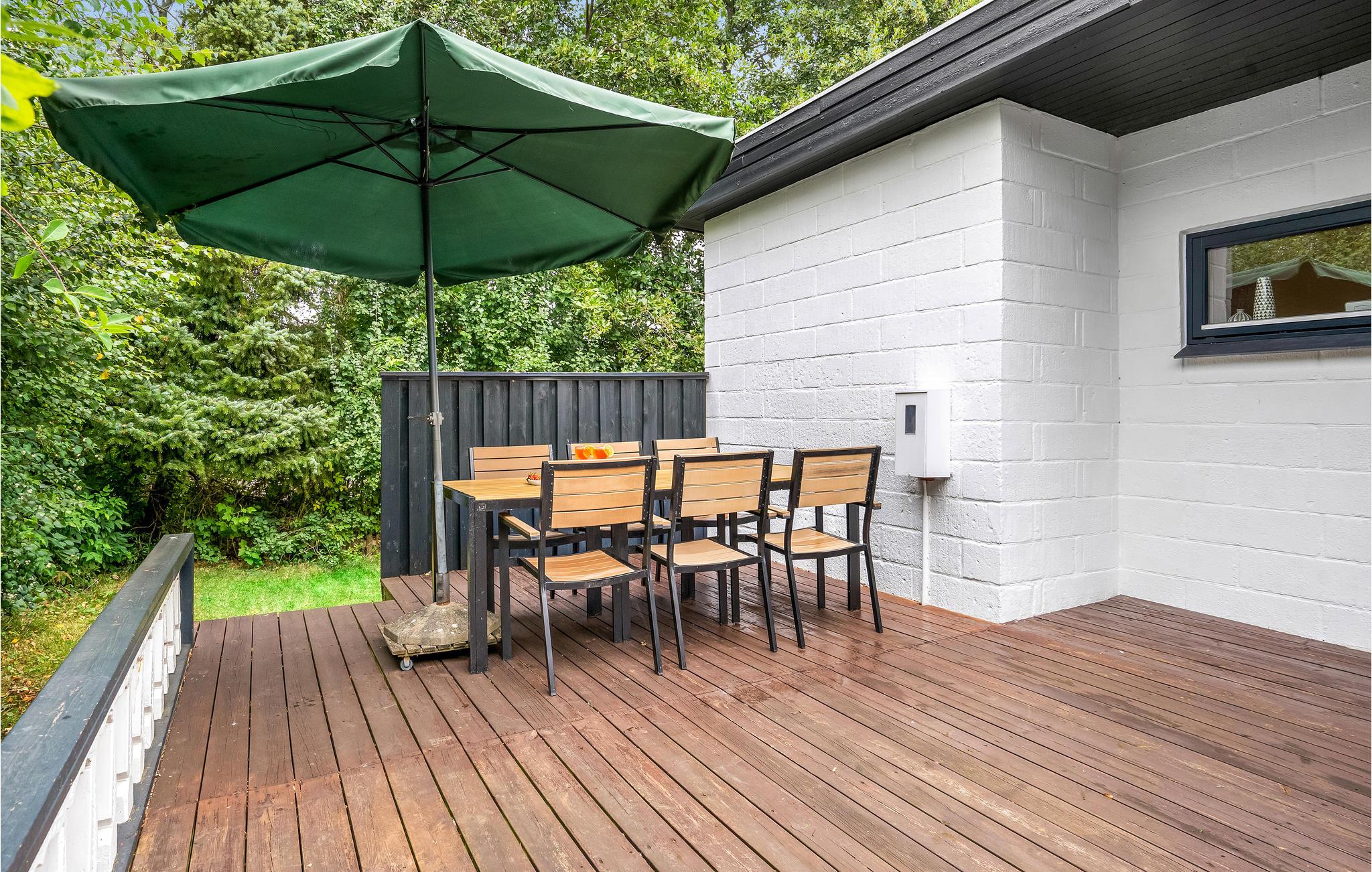Binnen vindt u een smaakvol ingerichte woonkamer en open keuken. Met wifi is voor entertainment gezorgd. Er is ook een grote serre, verschillende terrassen waar u altijd beschutting en zon kunt vinden en kunt genieten van al uw maaltijden. Het gaat hier echt om rust en gezelligheid. Ook buiten nodigen het wildernisbad en de buitendouche uit tot wellness in je eigen vakantiehuis. Dankzij een terrasverwarmer kunt u de Deense zomeravonden buiten doorbrengen.