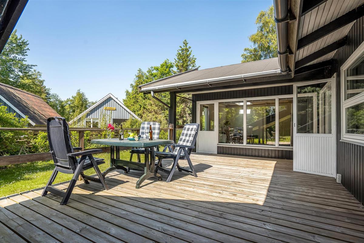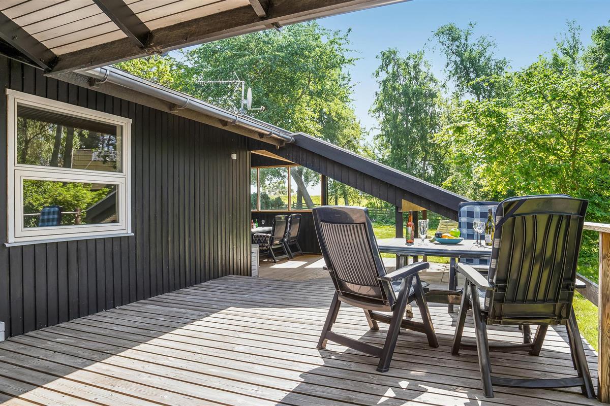 Geniet van het open en overdekte terras, dat in verbinding staat met de tuin. De tuin van het vakantiehuis maakt deel uit van de Vild Med Vilje beweging, die ernaar streeft om iets concreets en lokaals te doen om de natuur wilder, rijker en diverser te maken en daarom vinden er geen reguliere tuinwerkzaamheden plaats. Blijf hangen en ontspan op het omheinde terrein, waar je kunt genieten van de zomer en de lange avonden.