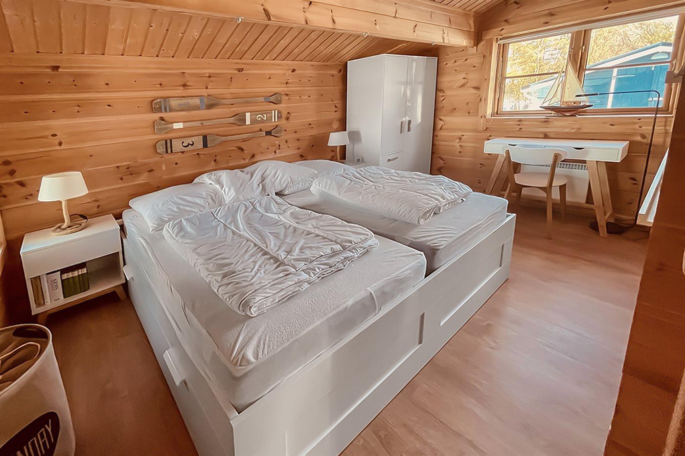 Er zijn in totaal 2 slaapkamers. De slaapplaatsen zijn als volgt verdeeld: 4 slaapplaatsen in tweepersoonsbedden.2 slaapplaatsen op matrassen. 2 van deze slaapplaatsen bevinden zich in de open slaapzolder.