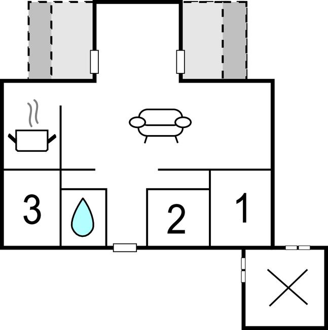Slaapkamer 10m2 (nr. 1) - 2 Slaapplaatsen. (2-persoonsbed(den)).