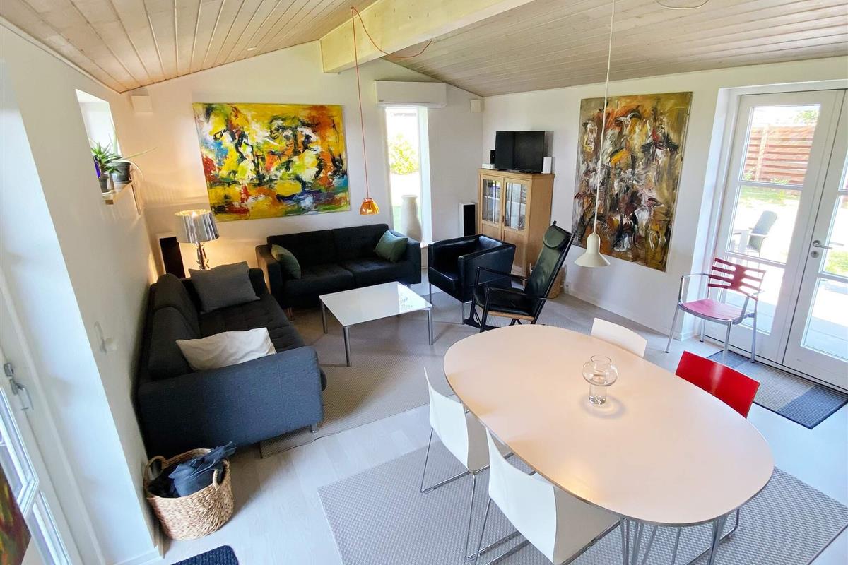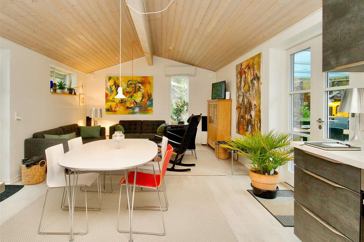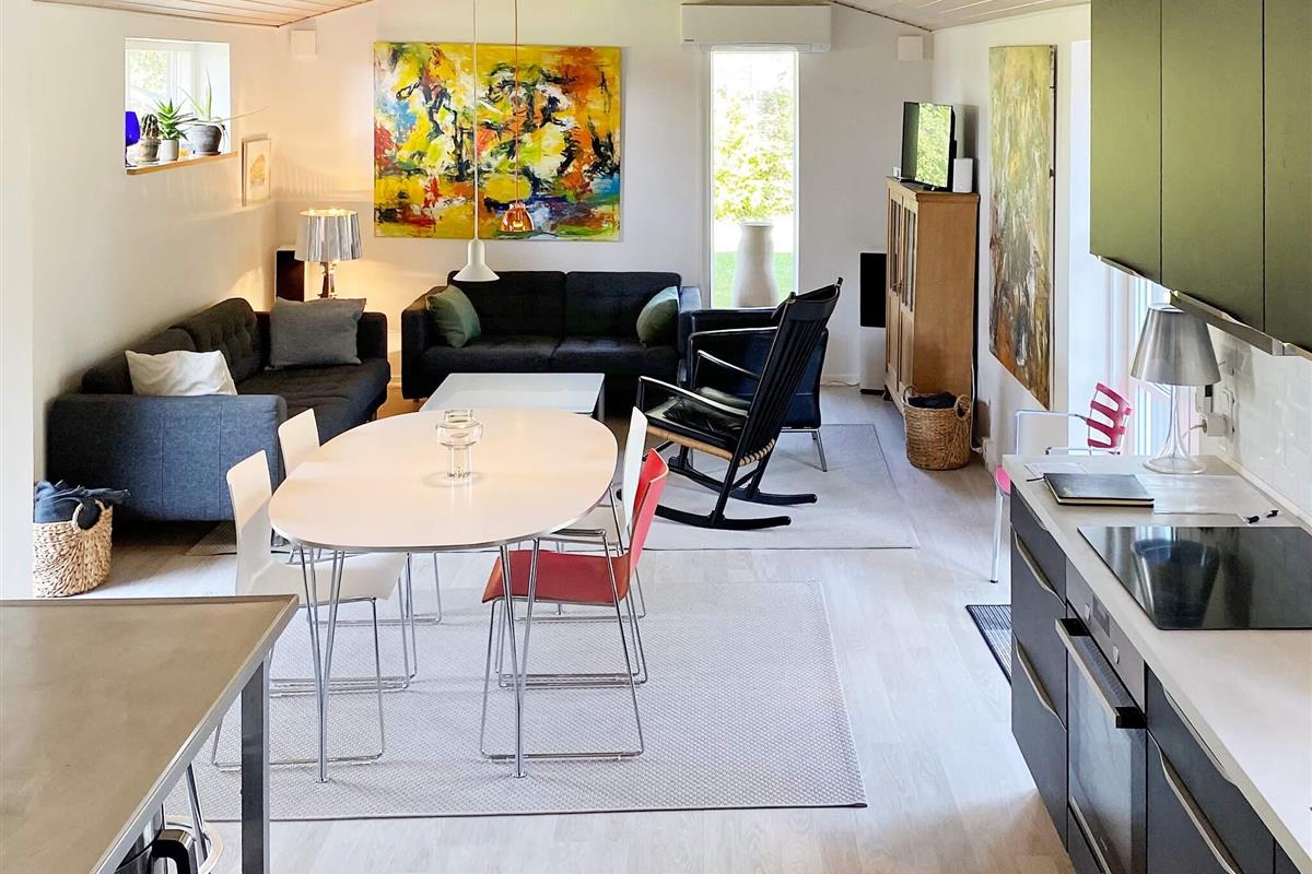 Das Ferienhaus bietet eine gute Raumaufteilung mit offenem Küchen-/Wohnbereich inklusive Ess- und Sitzecke und Zugang zur Terrasse auf beiden Seiten. Zur Unterhaltung gibt es Smart TV und Google Cast sowie eine Bluetooth-Stereoanlage und einen tragbaren Bluetooth-Lautsprecher.
