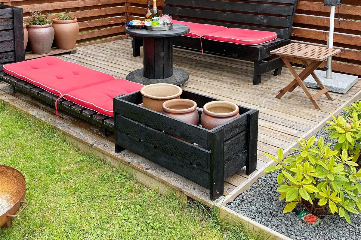 Und: Terrasse, überd. Terrasse, Außenbereich, Carport, E-Heiz., Luft-Luft-Wärmepumpe, Grill, Garten 1232 m2, gemütliche Möblierung, Ferienhausgebiet, Nichtraucherhaus
