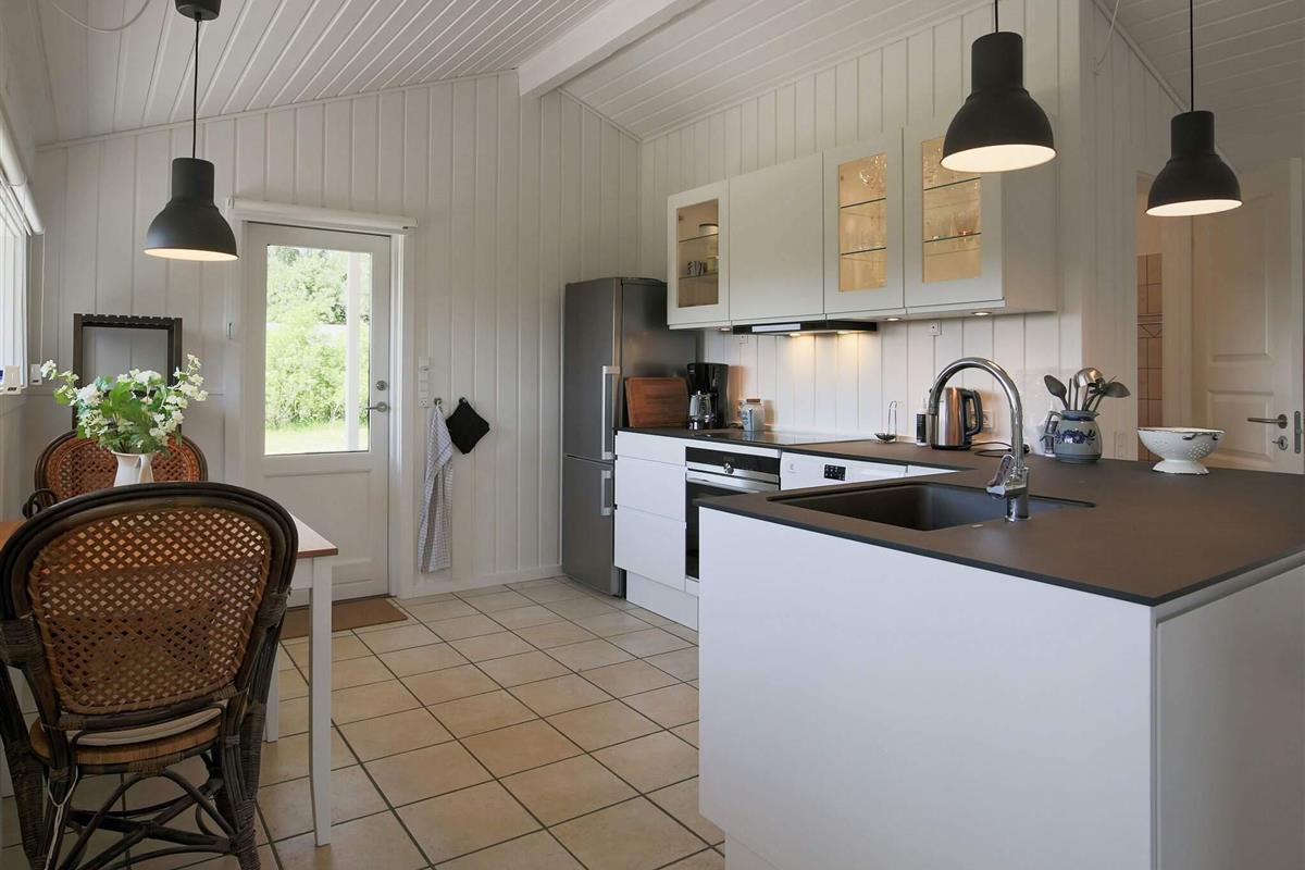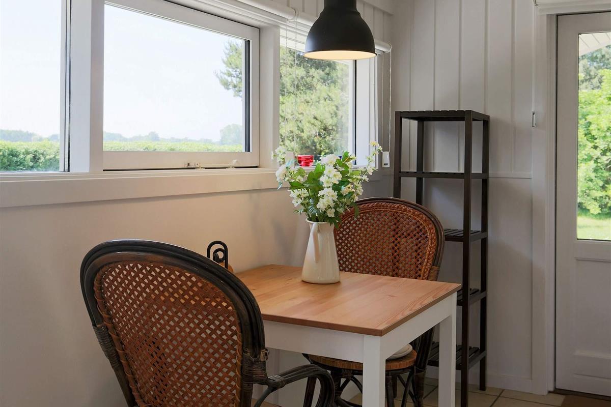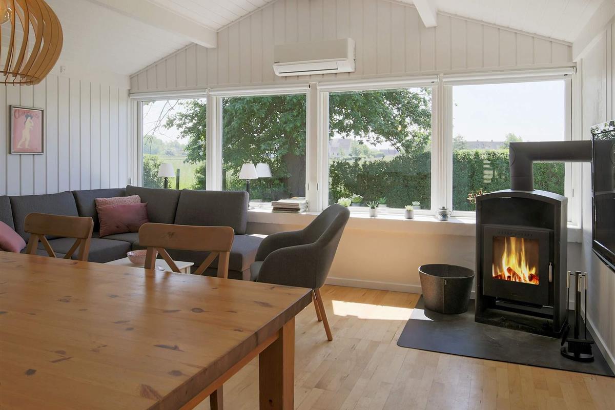 In diesem Ferienhaus bei Gilleleje können Sie einen schönen und erholsamen Urlaub verbringen und dabei den Ausblick zu den umliegenden Feldern genießen, auch wenn Sie im Wohnzimmer sitzen. Die Terrassentür kann zur Seite geschoben und somit zur Terrasse hin ganz geöffnet werden.