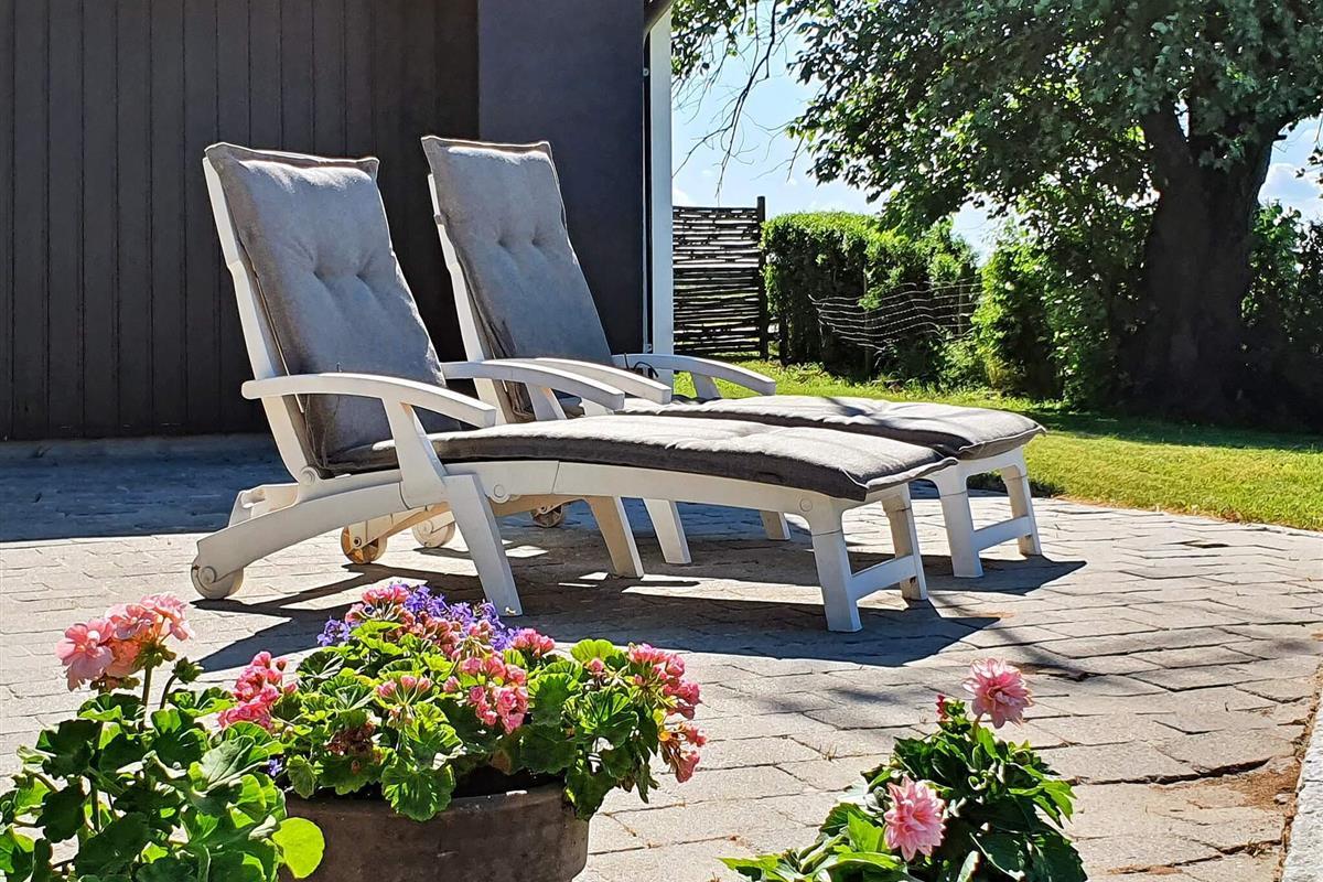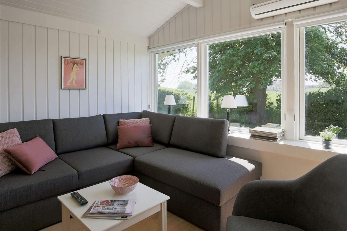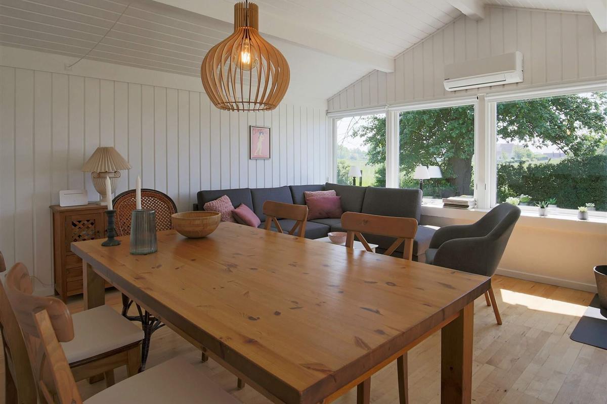 Das Ferienhaus ist ansprechend eingerichtet und wurde für die Saison 2021 aufgefrischt. Wände und Decken sind in allen Räumen weiß gestrichen und auch die offene Zimmerdecke bis zum First trägt zum hellen, luftigen Ambiente bei.