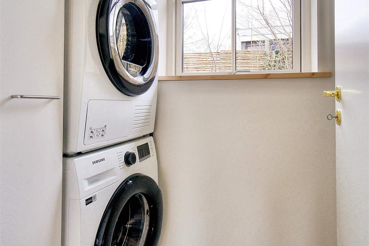 Das Haupthaus bietet eine gut ausgestattete Küche mit Cerankochfeld, Backofen, Mikrowelle, Dunstabzugshaube, Kühl-Gefrierkombination und Geschirrspüler. Das Wohnzimmer ist schlicht, aber komfortabel eingerichtet und verfügt über Apple TV, Internetzugang und einen gemütlichen Kamin. Für die energieeffiziente Beheizung sorgt eine Luft-Luft-Wärmepumpe. Es gibt ein Schlafzimmer mit Doppelbett und ein modernes Badezimmer mit Dusche, Waschmaschine und Trockner.