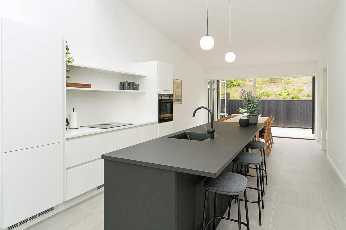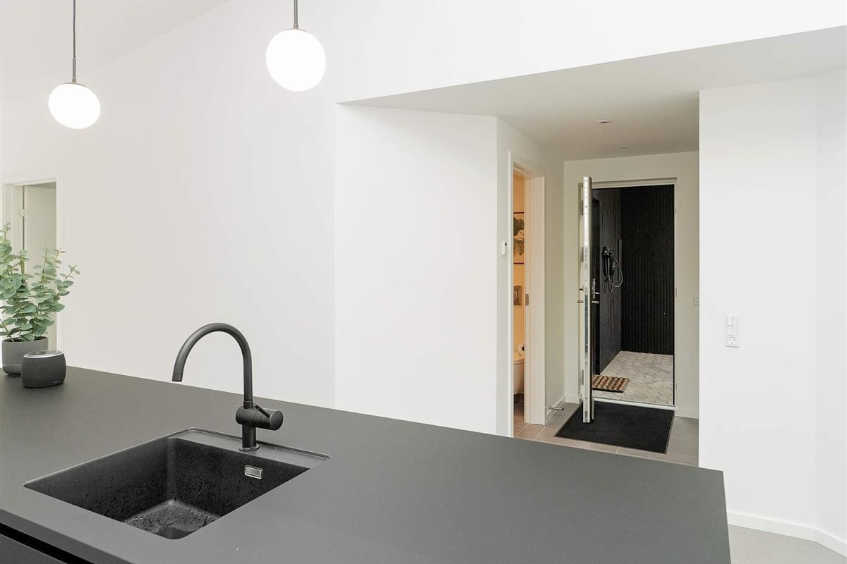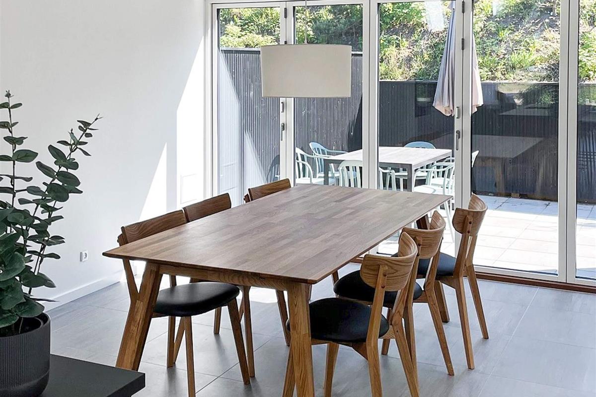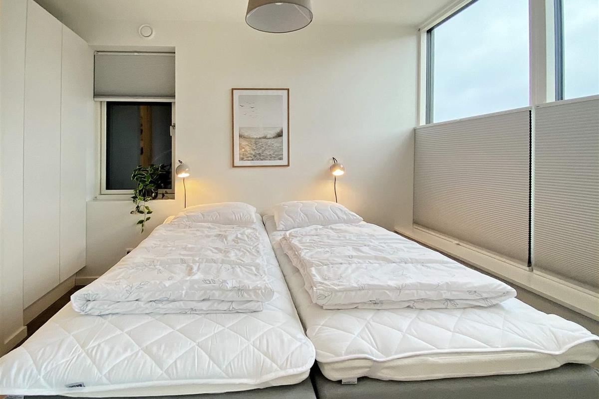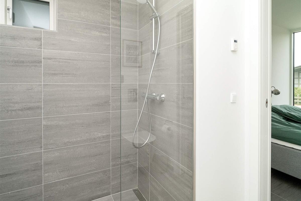 Hochwertige Materialien und geschmackvolle Einrichtungslösungen bieten einen offenen Küchen- und Wohnbereich mit hohen Decken, Kochinsel, Geschirrspüler, Induktionskochfeld mit integriertem Dunstabzug, Backofen sowie Kühl-/Gefrierkombination. Dachfenster sorgen für viel Tageslicht. In allen Räumen gibt es Fußbodenheizung. Zwei Schlafzimmer bieten Schlafplätze für 4 Personen, dazu zwei Badezimmer mit Duschkabine und Fußbodenheizung. Im Hauswirtschaftsraum befindet sich eine kombinierte Waschmaschine mit Trockner.