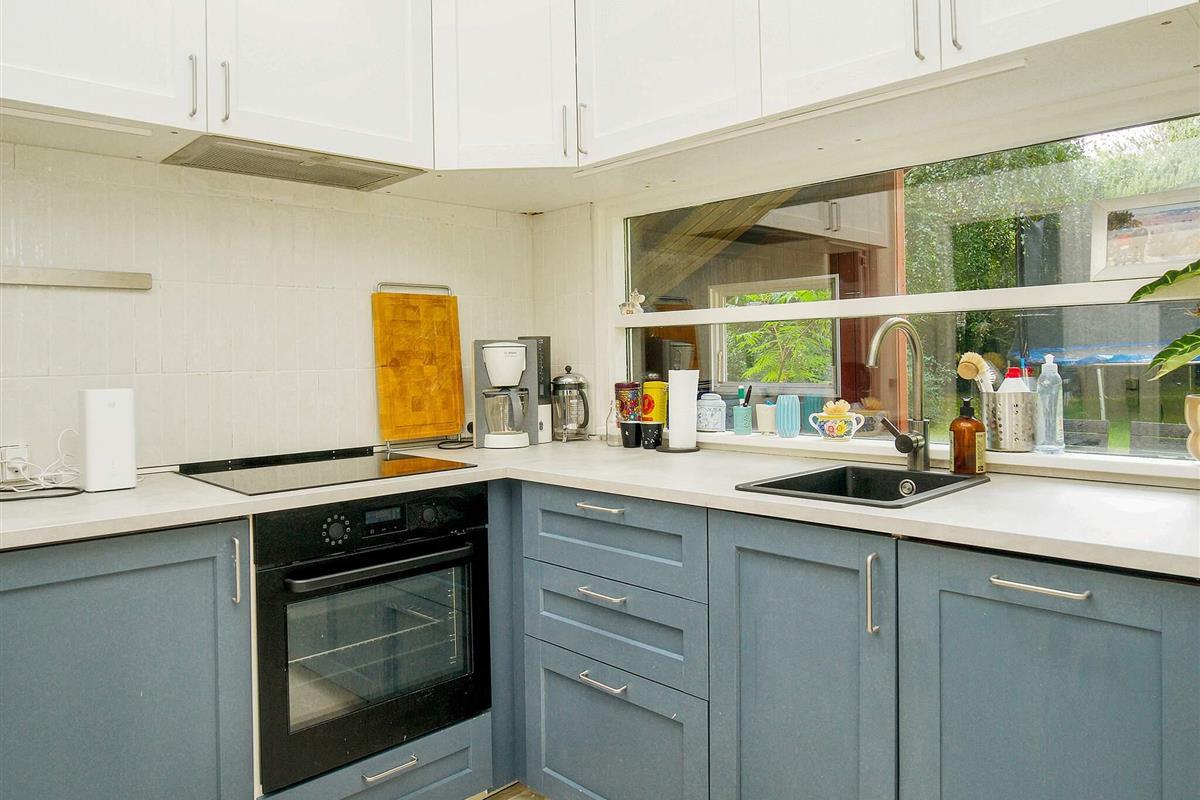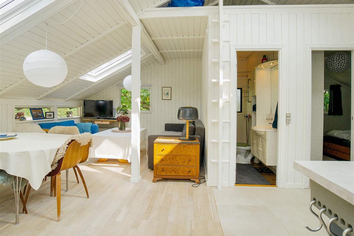 Das Haus ist praktisch und gemütlich eingerichtet und umfasst zwei Schlafzimmer mit Doppelbetten. Im Wohnzimmer kann ein zusätzliches Bett aufgestellt werden. Das Haus eignet sich jedoch am besten für maximal vier Personen, da es sonst zu eng wirkt. Die offene Wohnküche bietet einen wunderbaren Treffpunkt mit Blick auf den Garten und die teilweise überdachte Terrasse. Ein kleines Bad/WC ist ebenfalls vorhanden.