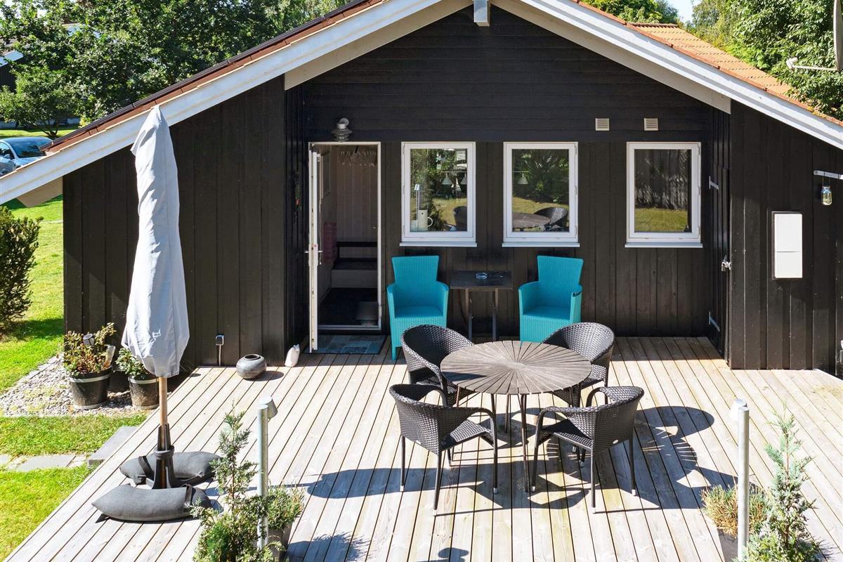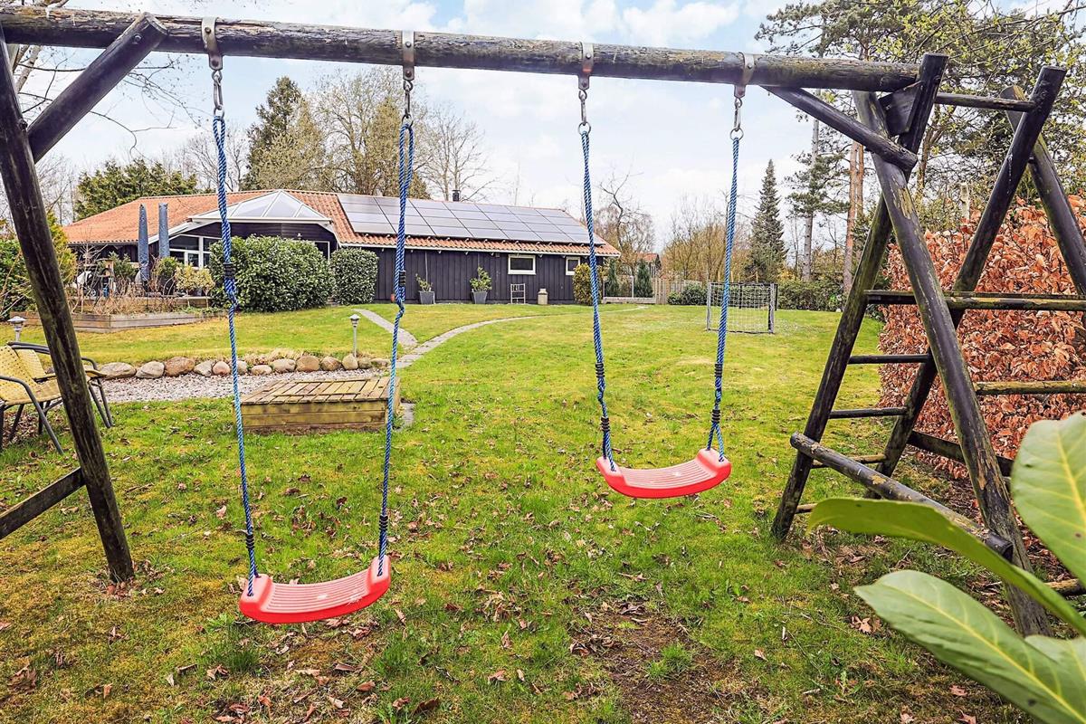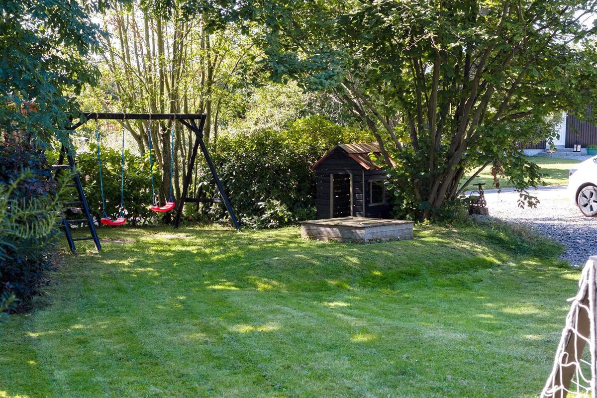 Auf dem großen, üppig bepflanzten Grundstück finden auch die jüngsten Gäste einen Sandkasten und eine Schaukel. Die große Sonnenterrasse bietet den ganzen Tag über Sonne und lädt auch an lauen Sommerabenden zum Verweilen ein.