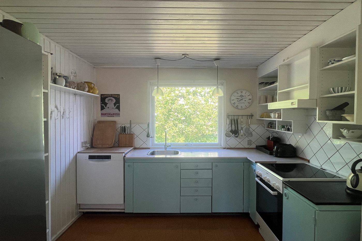 De keuken is uitgerust met koelkast Er zijn 4 keramische kookplaten, heteluchtoven, magnetron en vaatwasser.
