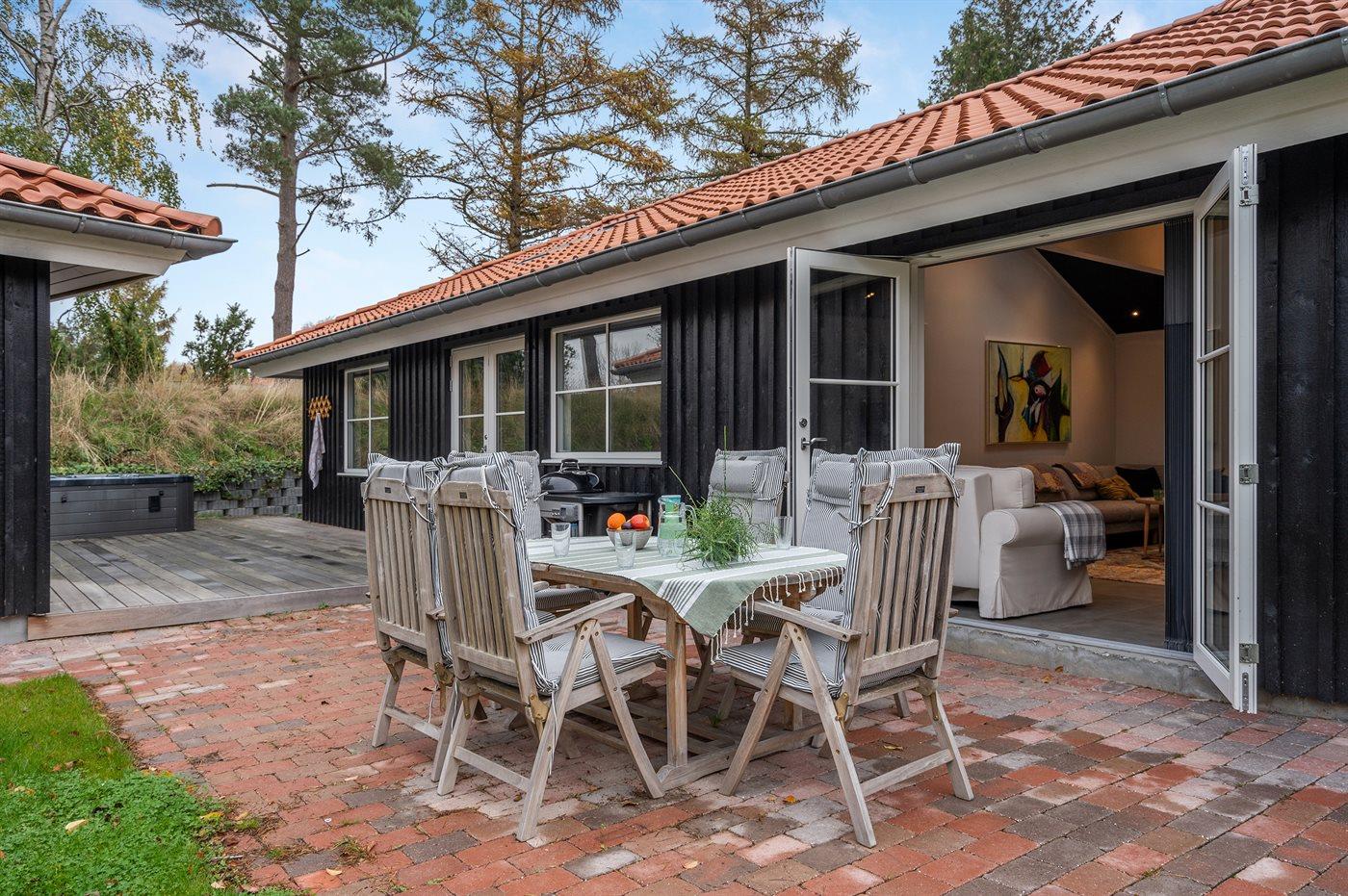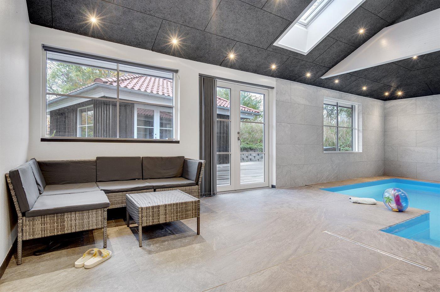 Moderne vakantiewoning in Gilleleje met binnenzwembad, sauna en buitenbubbelbad voor ultieme ontspanning.