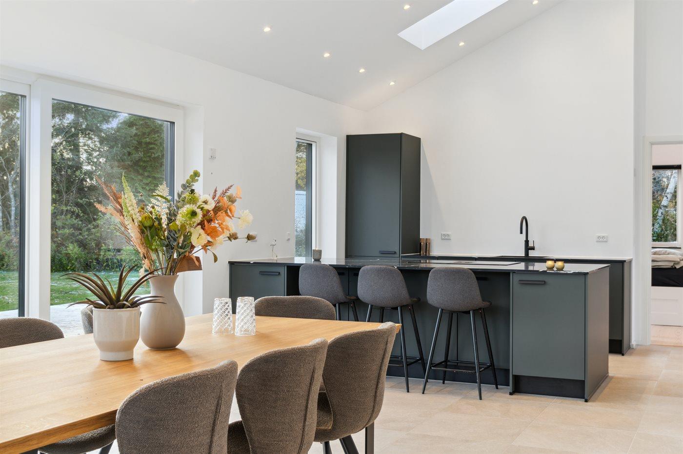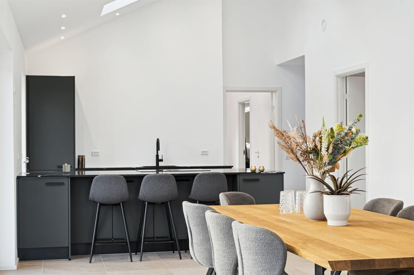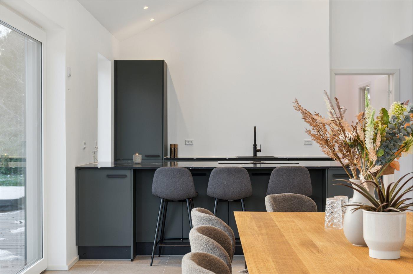 De keuken is uitgerust met koelkast Er is 4 inductiekookplaten, heteluchtoven, Airfryer en vaatwasser.