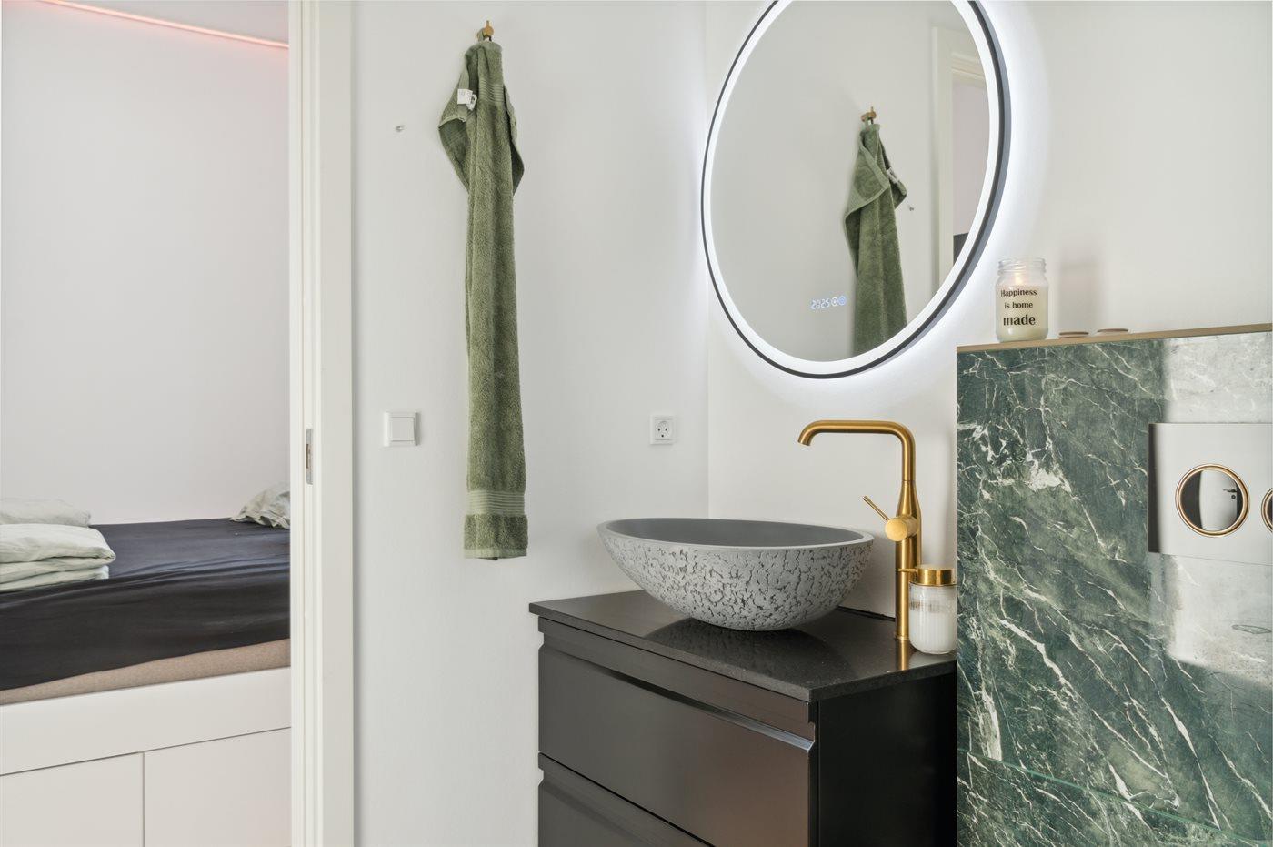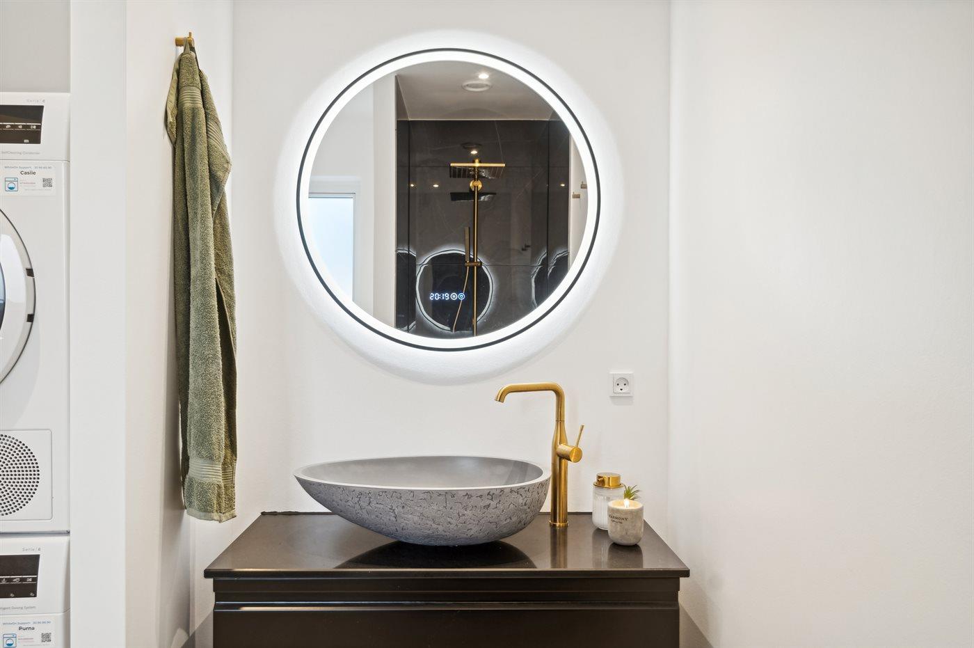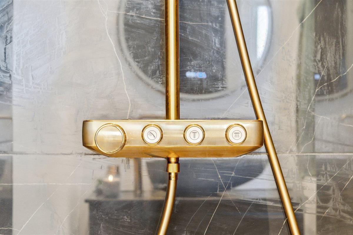 Er is 2 badkamers met douchehok en 2 toiletten. Er is vloerverwarming in 2 van de badkamers.