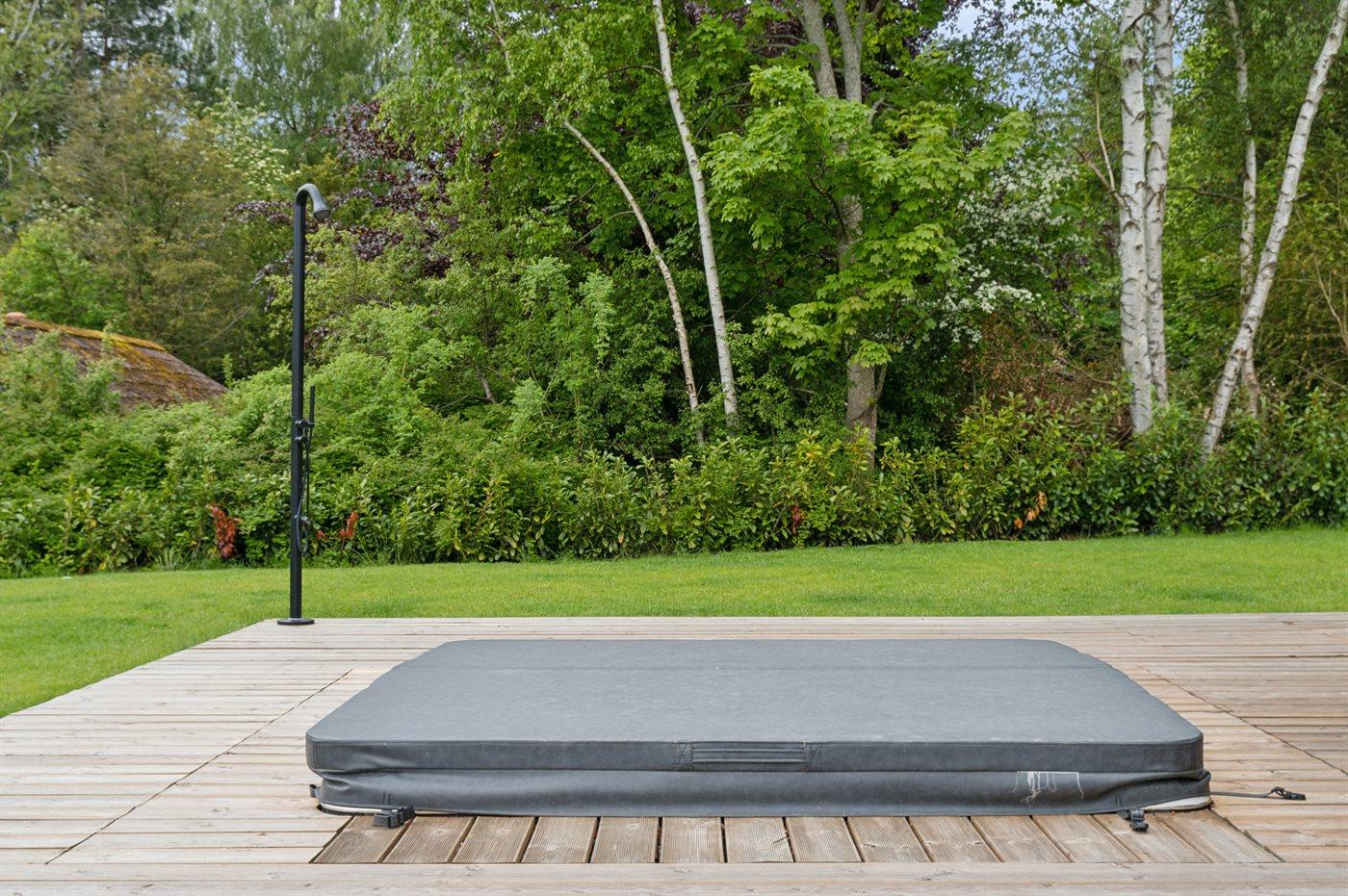 Het buitenbubbelbad (standwater) biedt ontspanning aan 7 personen.
