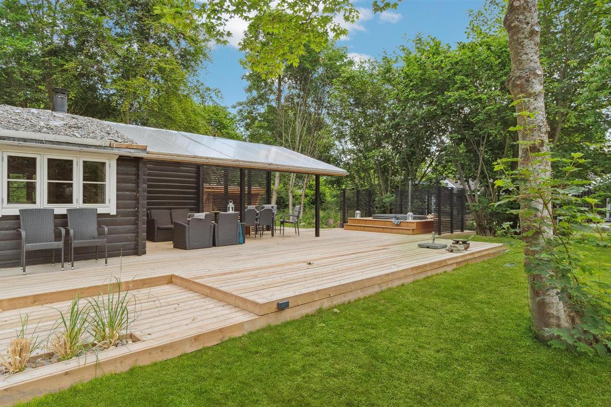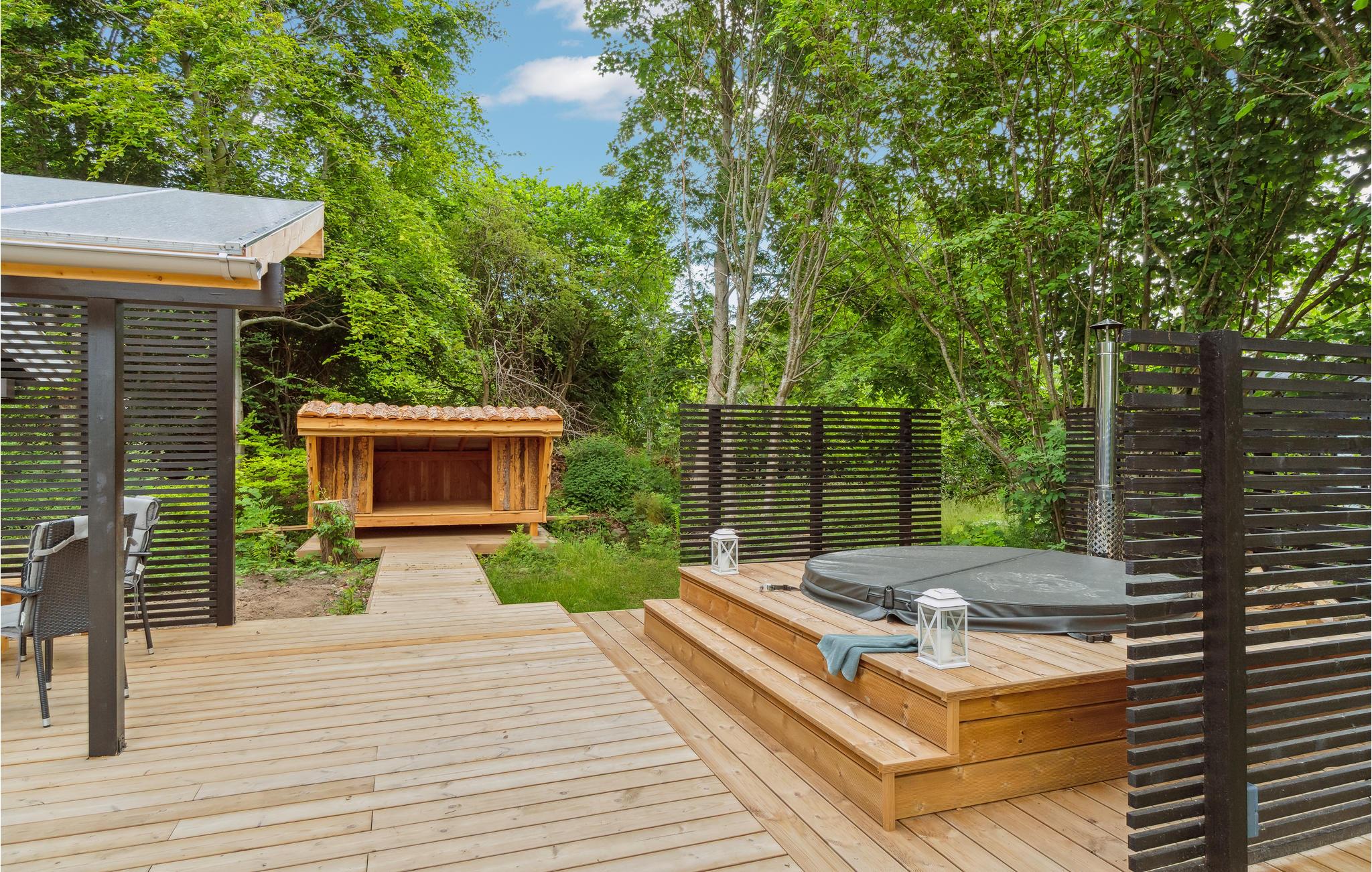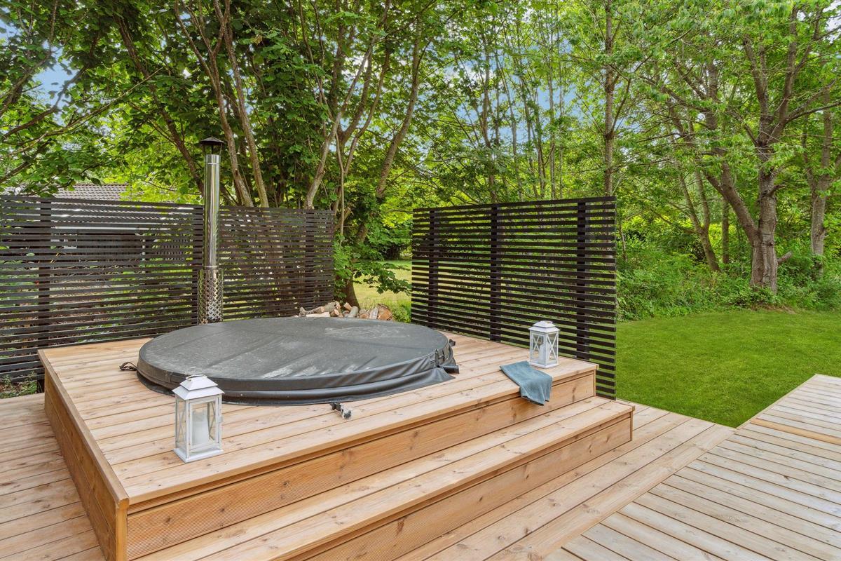 Comfortabel vakantiehuis in Gilleleje met houtkachel en buiten hot tub, vlakbij zee en natuur, perfect voor ontspanning.