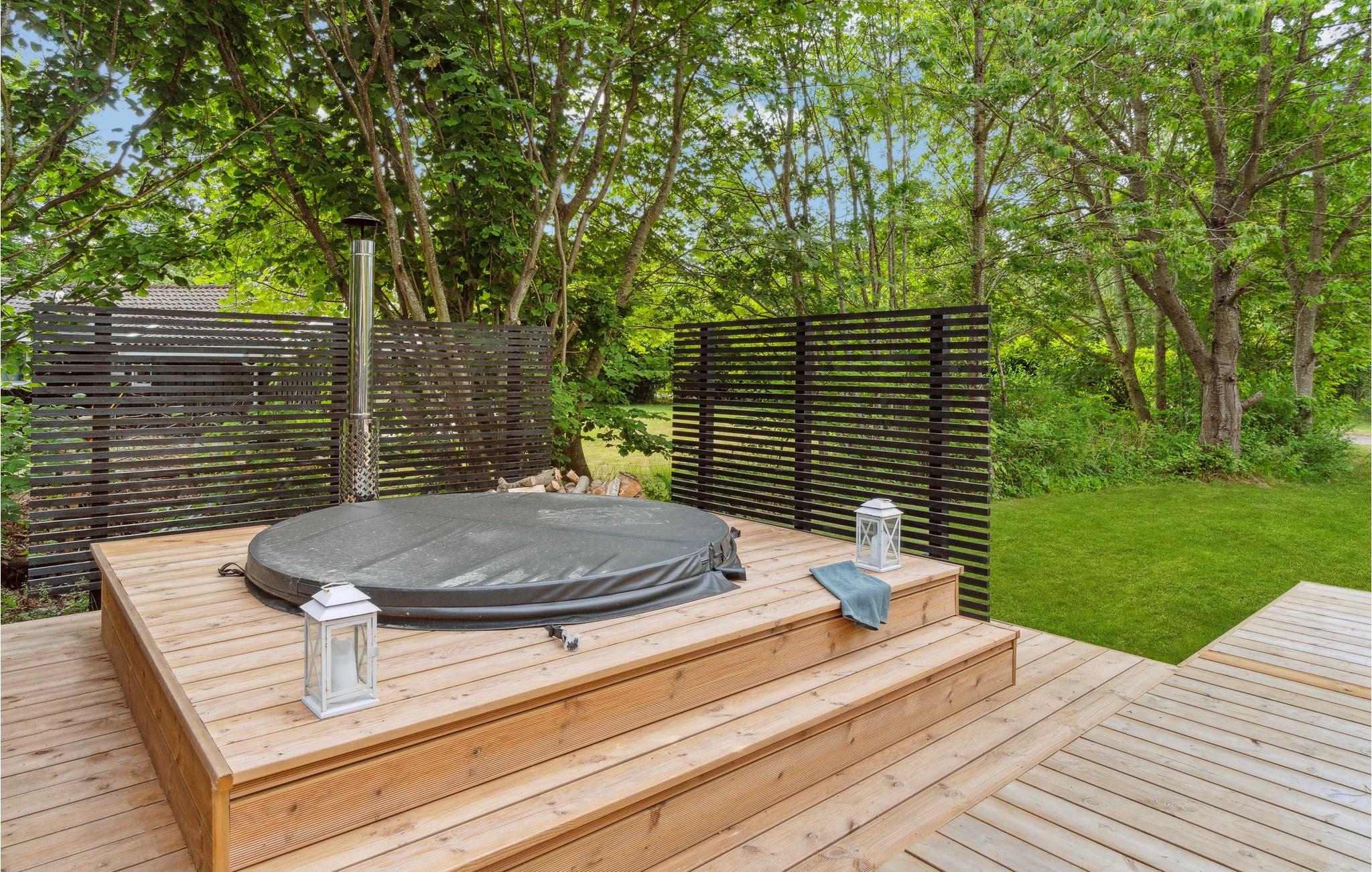 Stap uit op het grote houten terras en begin de dag met een al fresco ontbijt. Neem plaats op de loungemeubels, ontspan in het overdekte gedeelte of trakteer jezelf op een duik in het Finse houten bad in de buitenlucht. De ruime buitenruimte biedt volop ruimte om te ontspannen en volop te genieten van de groene omgeving.