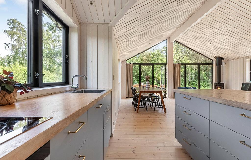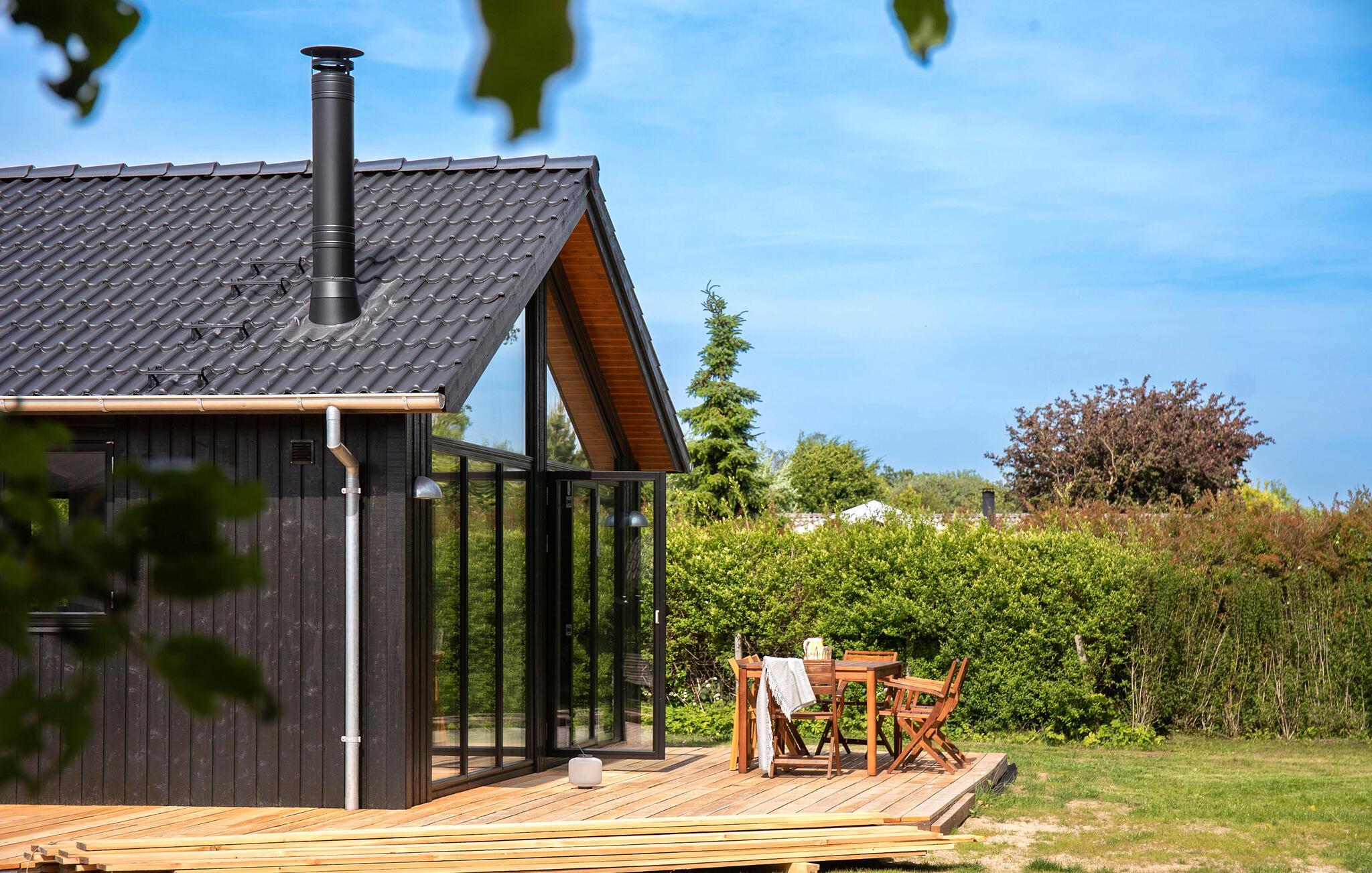 Breng een ontspannen vakantie door in dit moderne houten huis met Deense gezelligheid.