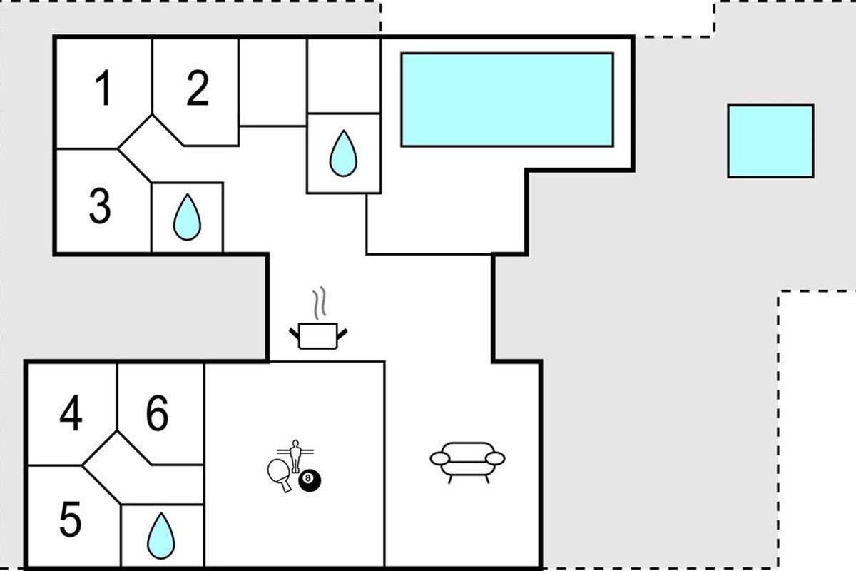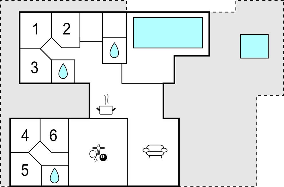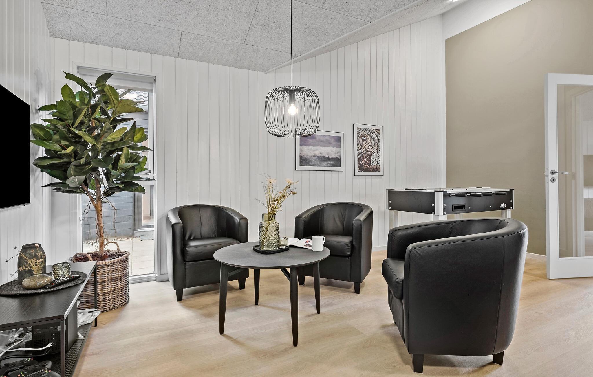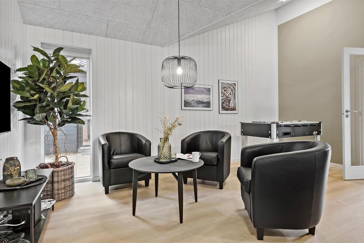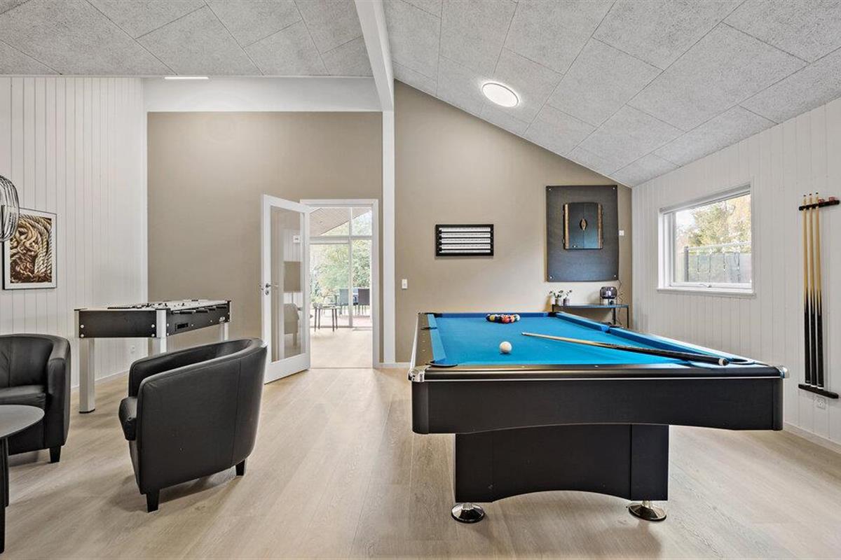Binnen vind je een activiteitenruimte die het hart van elke spelletjesliefhebber sneller doet kloppen. Daag de familie uit voor een leuk spelletje biljart, tafelvoetbal, tafeltennis of darts. In de woonkamer kun je ontspannen op de bank, een film kijken of de tijd verdrijven met de spelconsole en gezellige uurtjes doorbrengen. De open en ruime eetkeuken verwelkomt alle vakantiegasten. Het is niet alleen een plek waar je lekker kunt koken, maar het wordt ook een sociaal trefpunt tijdens je vakantie.