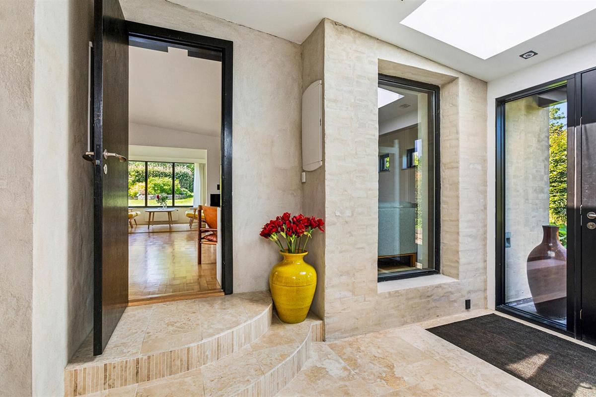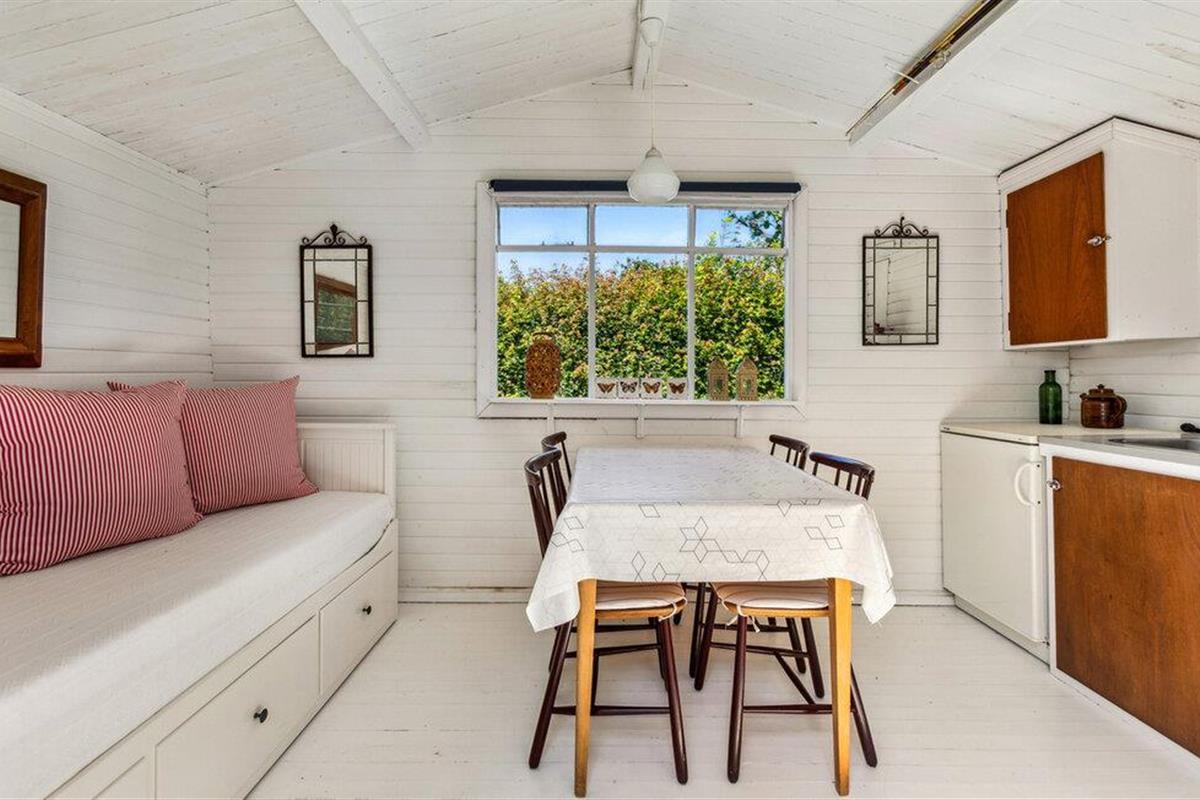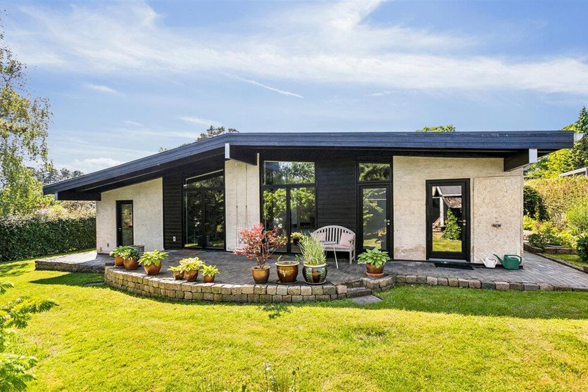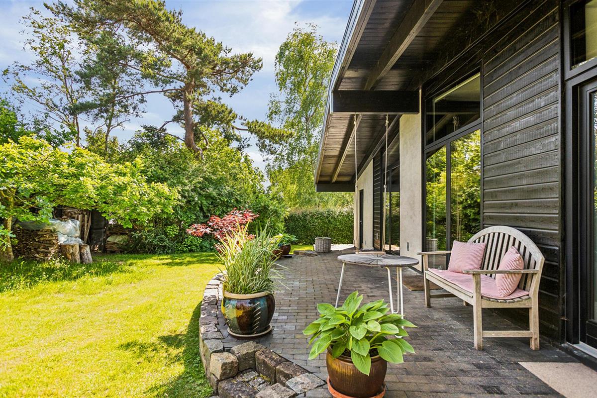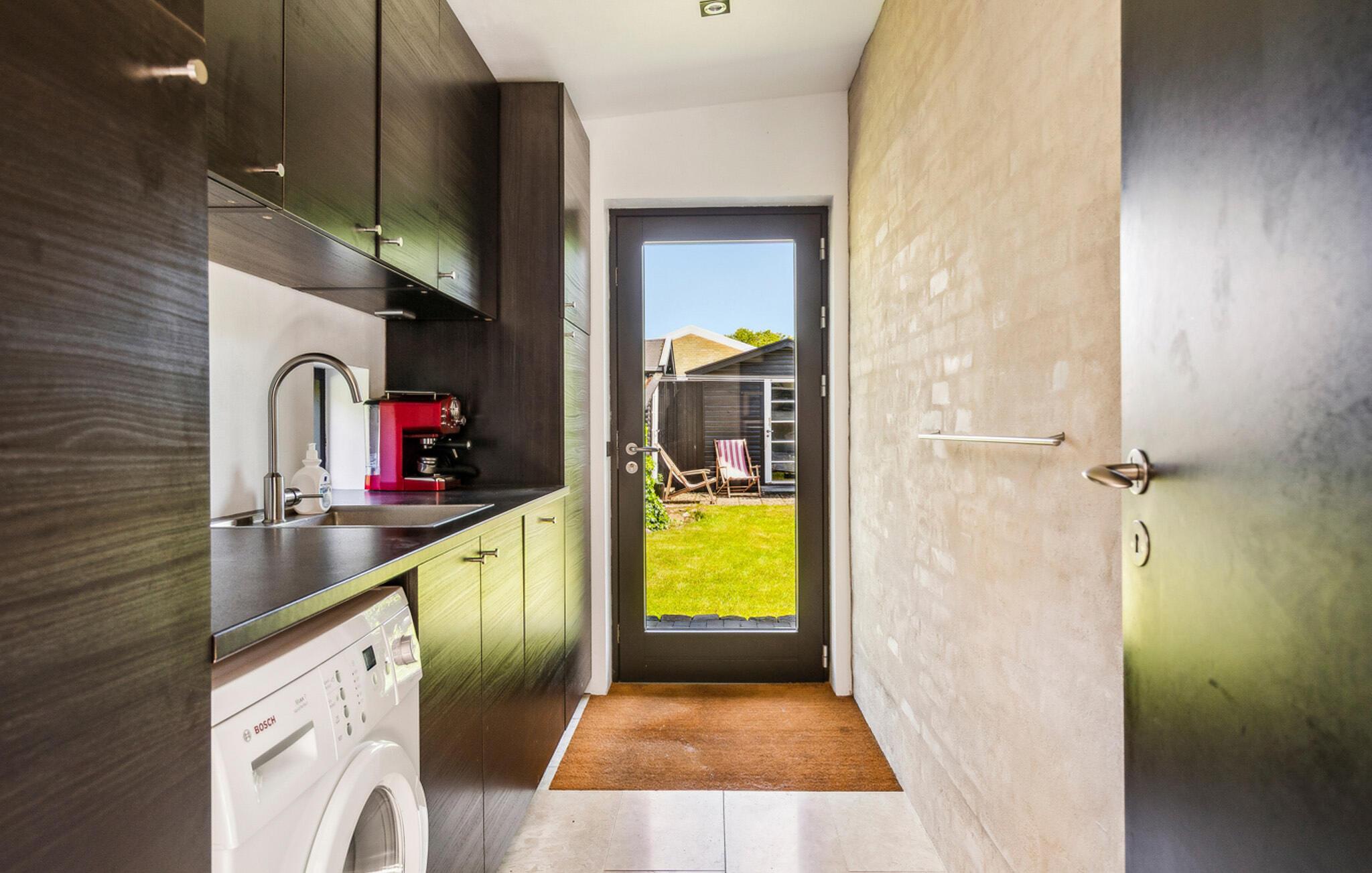 Geniet van een comfortabel vakantiehuis nabij het strand met tuin, open haard en buitenbad in Gilleleje.