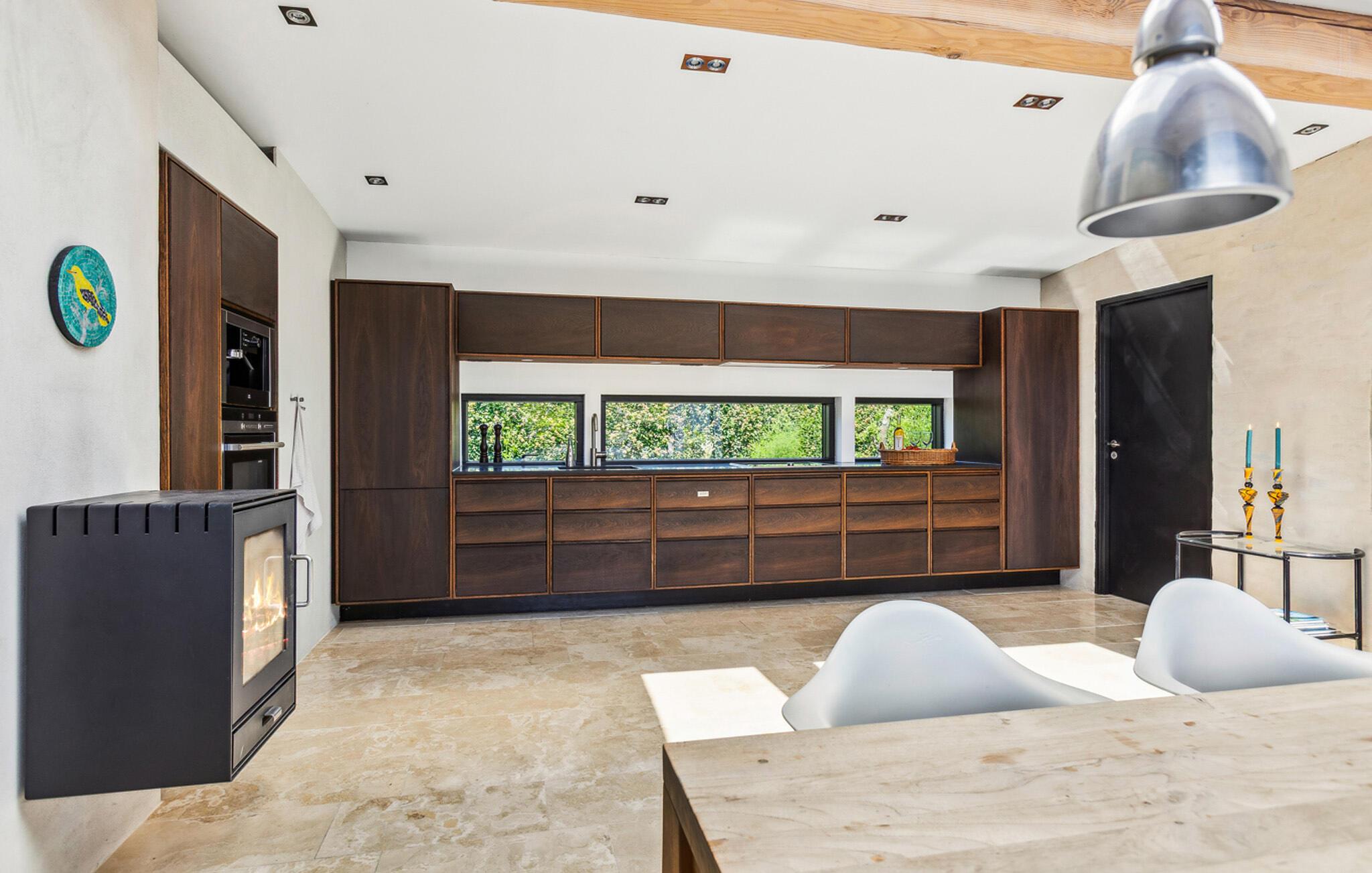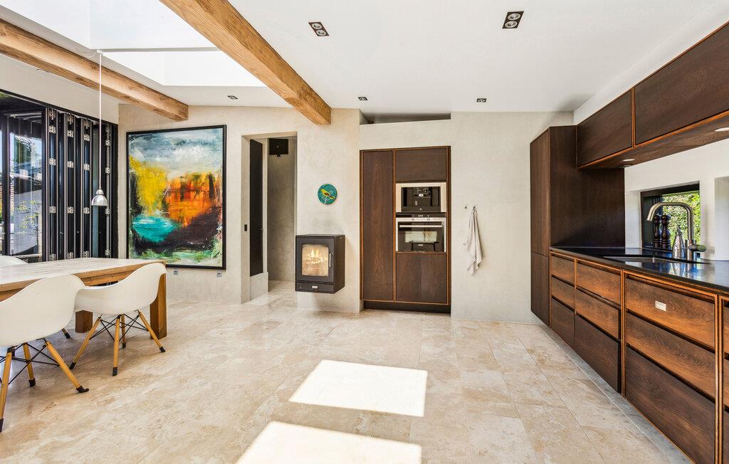 Dit comfortabele vakantiehuis verwelkomt je met een gezellig interieur, waarin grote ramen zorgen voor veel natuurlijk daglicht en een prachtig uitzicht op de tuin bieden. Verzin culinaire hoogstandjes, luister naar het zachte geknetter van de open haard tijdens ontspannen maaltijden en maak het jezelf gemakkelijk in de woonkamer om een film te streamen na een lange dag.