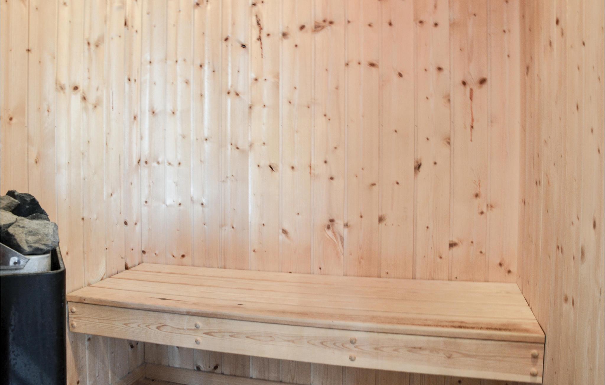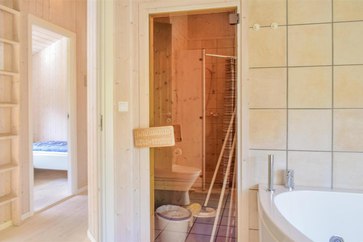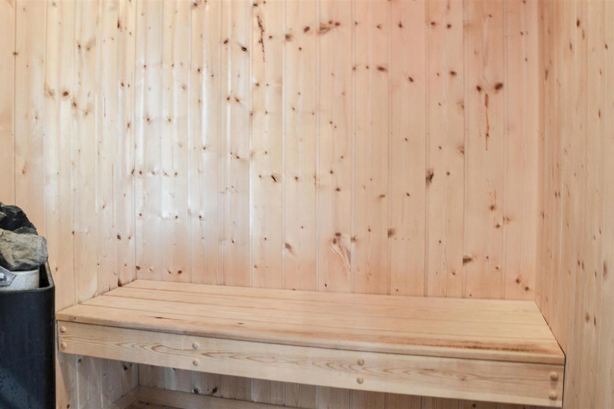 De open keuken loopt direct over in de woonkamer en biedt aangename ruimte voor het hele gezin. De grote badkamer bevat ook een sauna. Er is ook een gastentoilet. Vanuit de woonkamer heeft u direct toegang tot het terras met uitzicht op de tuin.