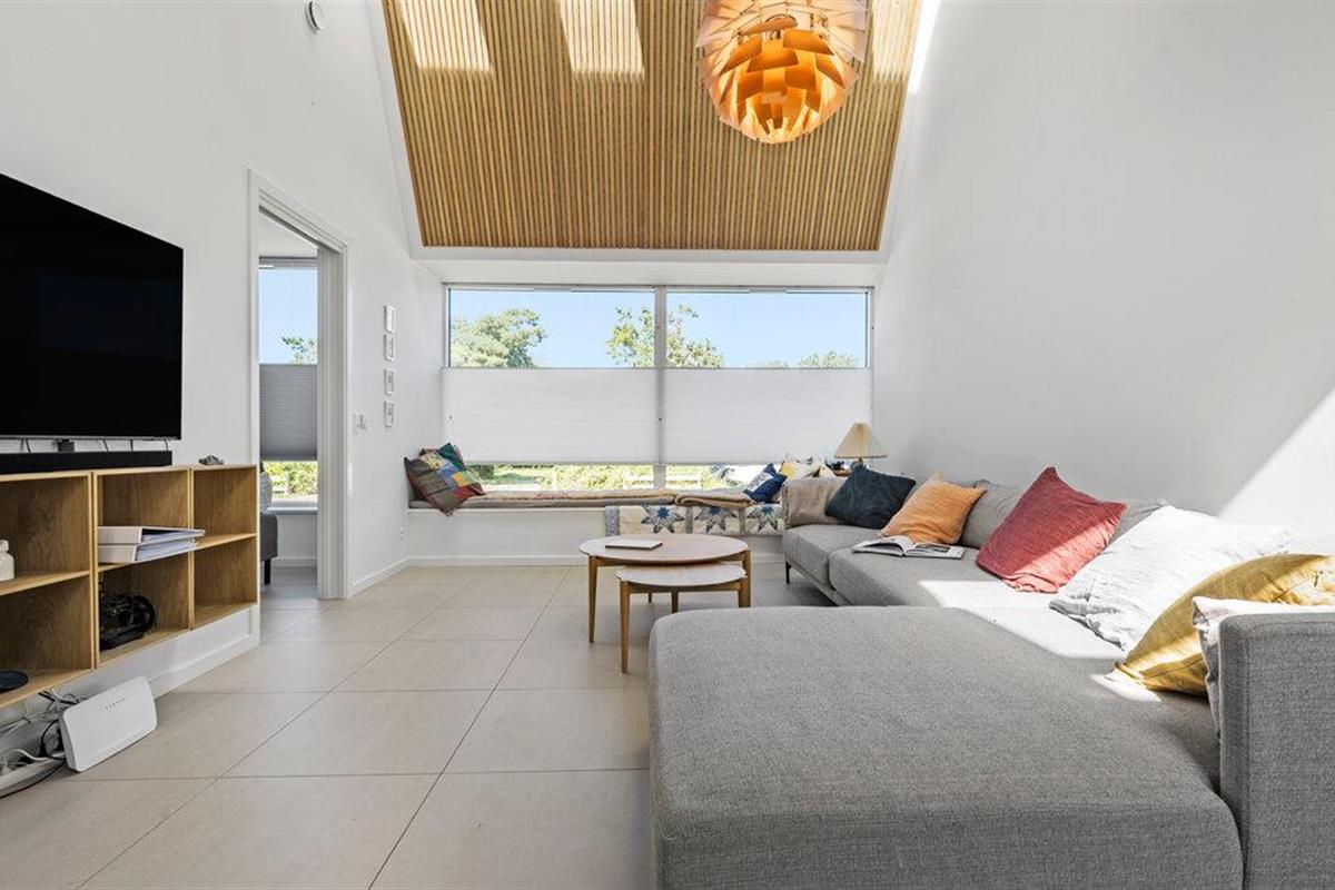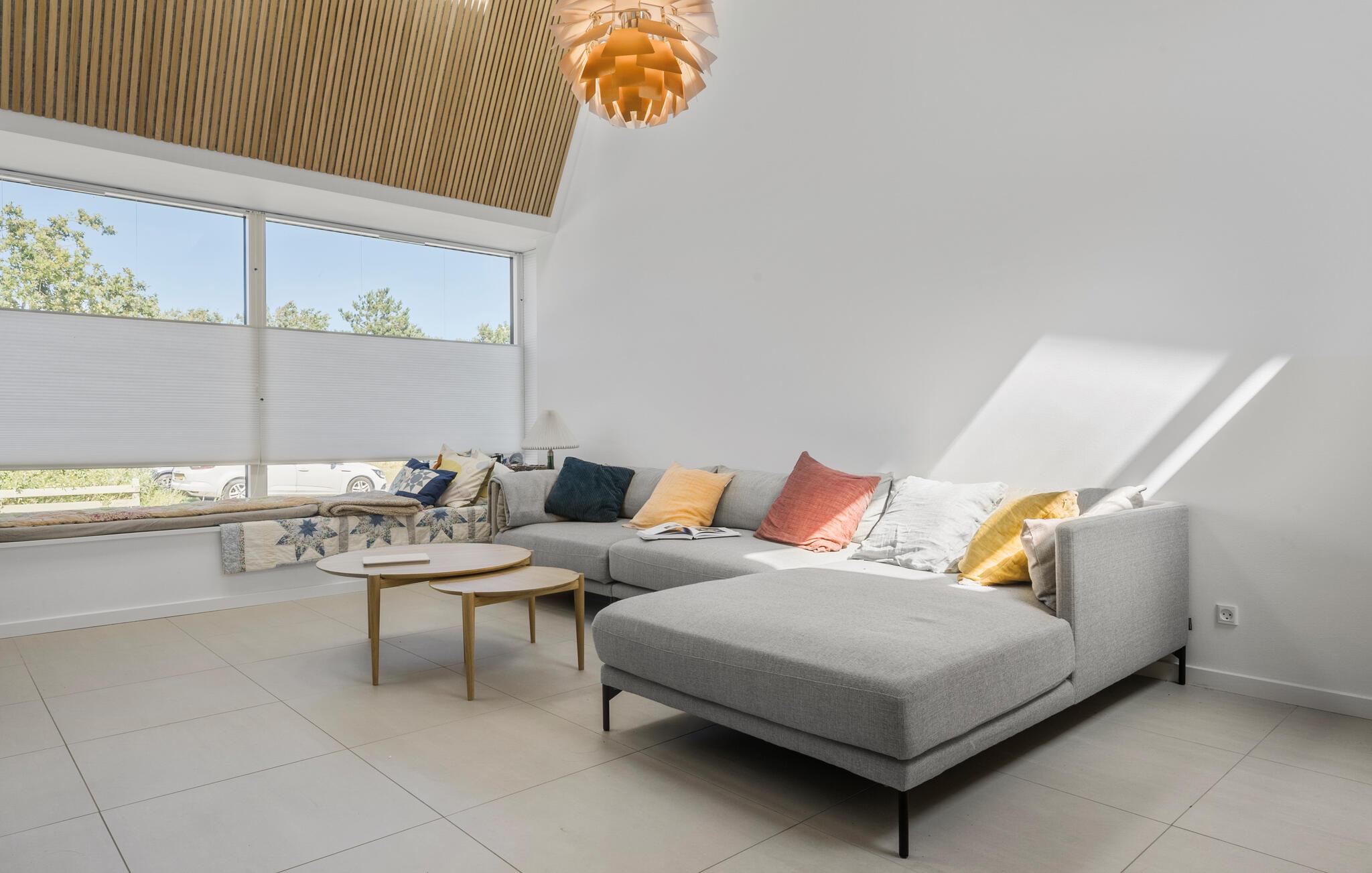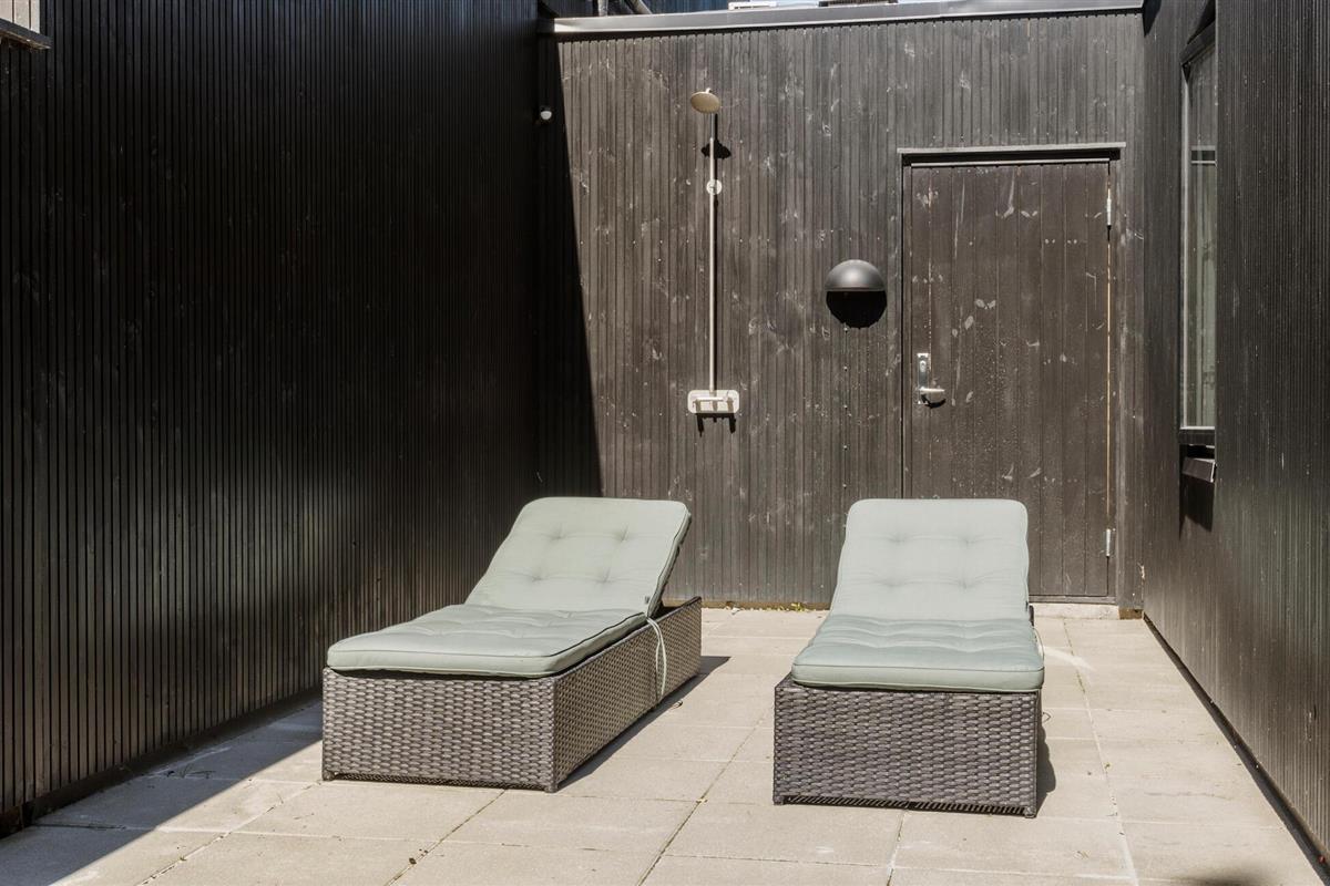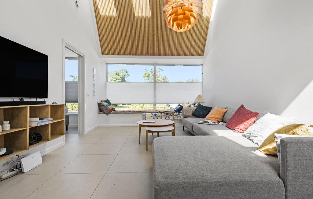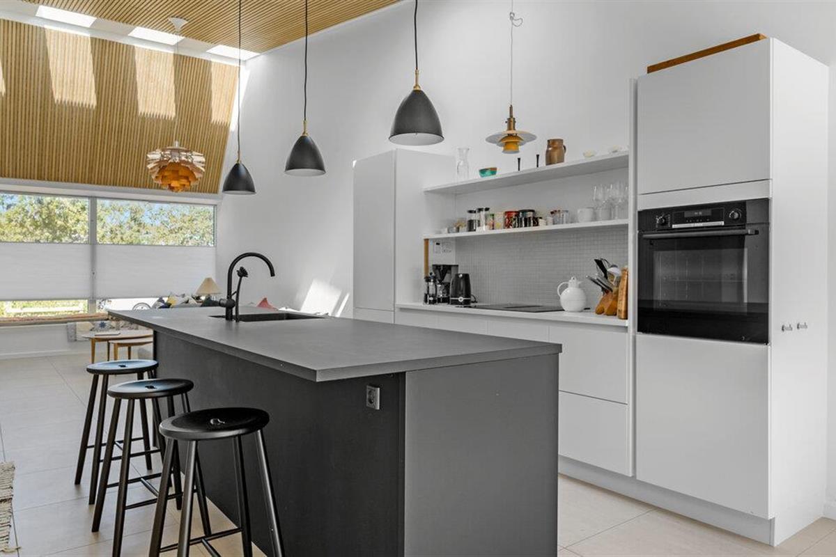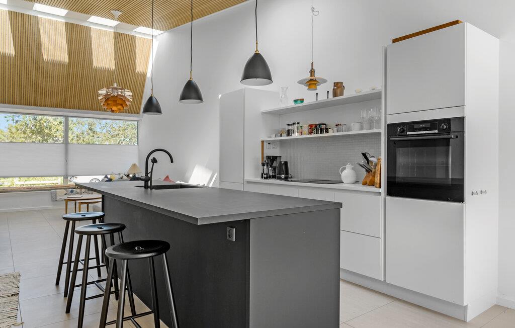 Beleef een heerlijke vakantie op Gilleleje Strand in dit moderne vakantiehuis. Het huis is een echt juweeltje dat indruk maakt met zijn open en lichte ontwerp. De ruime woonkamer met hoge plafonds en grote ramen laat veel natuurlijk licht binnen en creëert een uitnodigende, ontspannen sfeer. Je kunt ontspannen op de comfortabele banken na een dag op het strand. De goed uitgeruste keuken nodigt uit om samen te koken en te genieten van gezellige maaltijden. Het eetgedeelte is naadloos geïntegreerd in het woongedeelte, waardoor een open en communicatieve sfeer ontstaat. Op warme dagen kun je ook genieten van je maaltijden op het beschutte terras, dat direct grenst aan de woonkamer en is uitgerust met comfortabel tuinmeubilair en een barbecue.