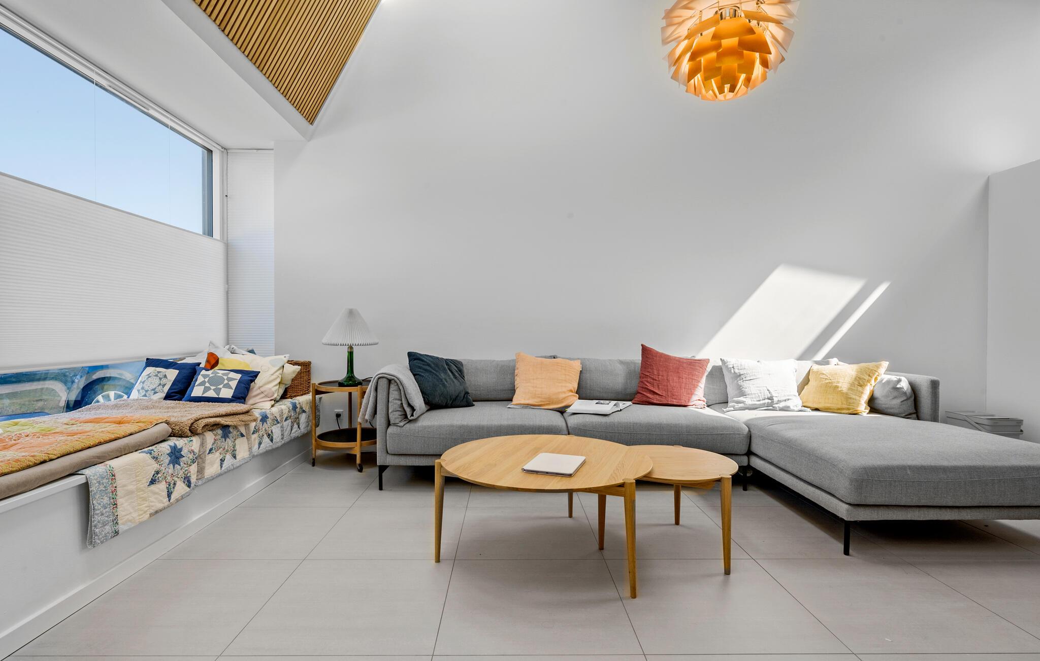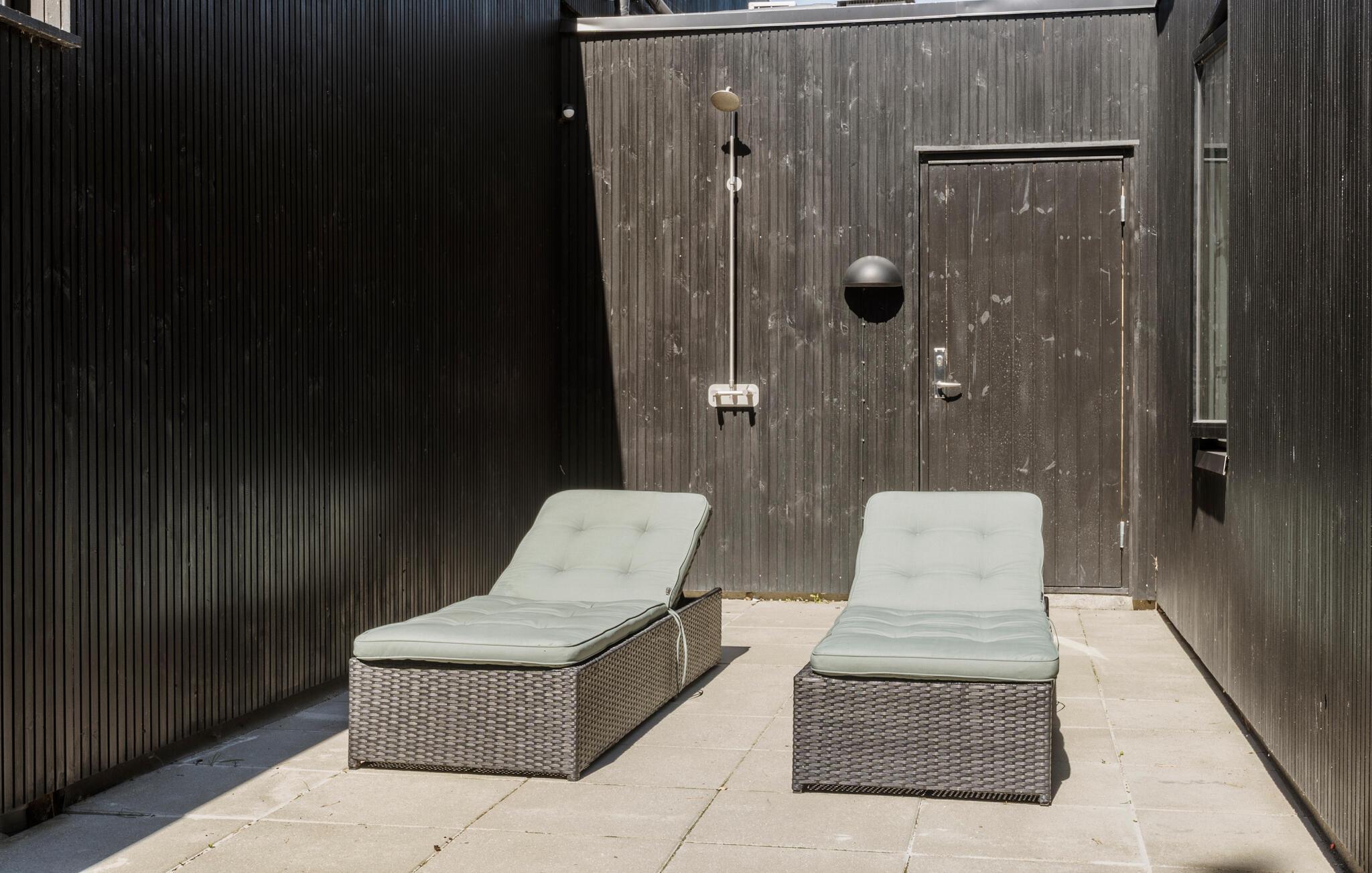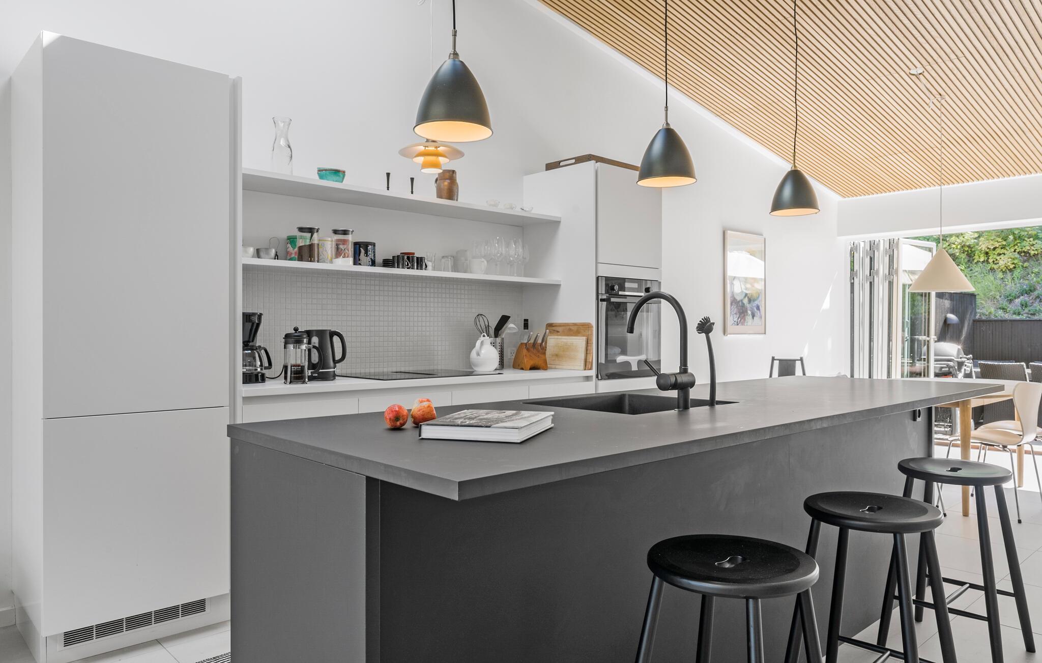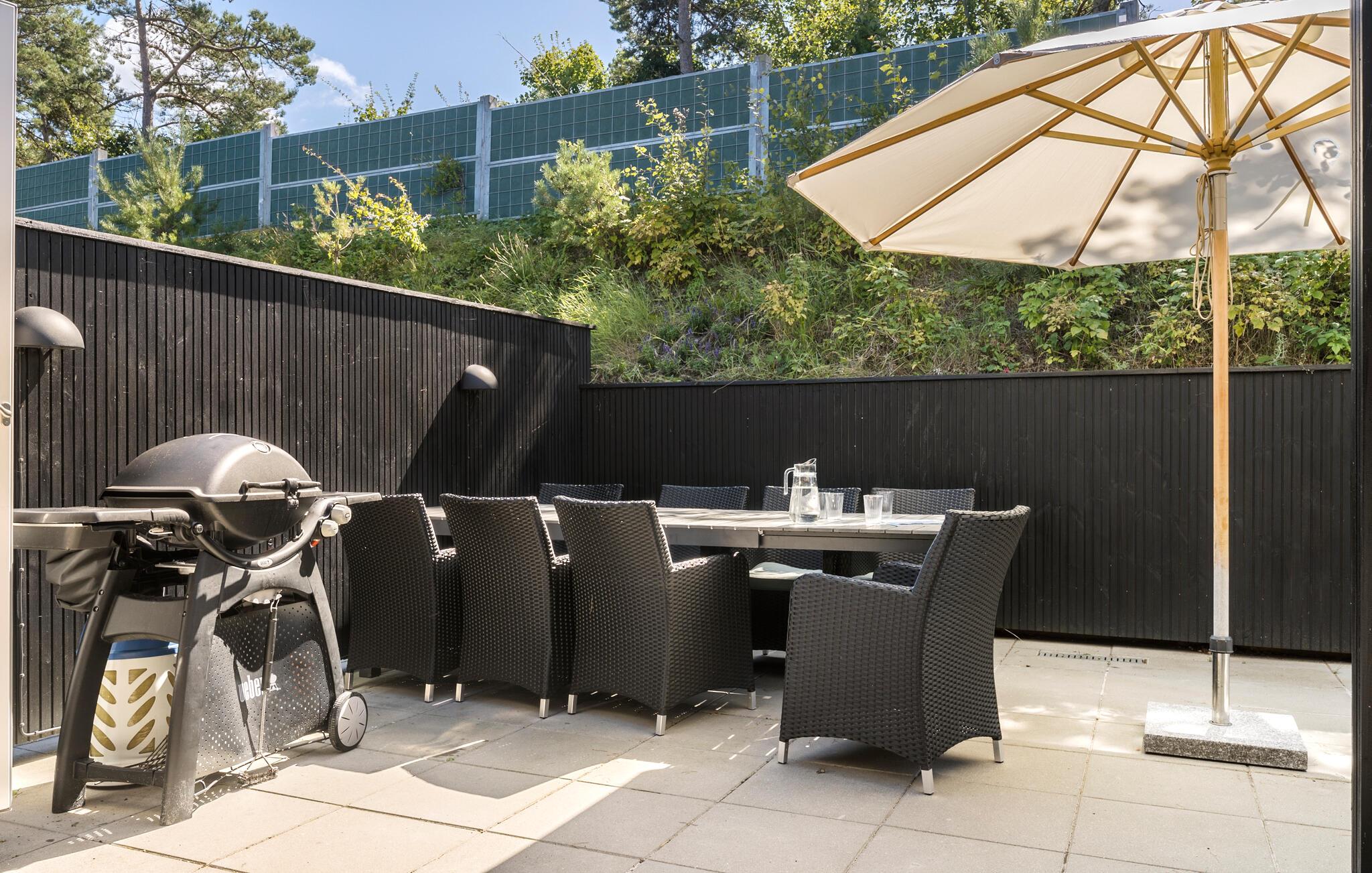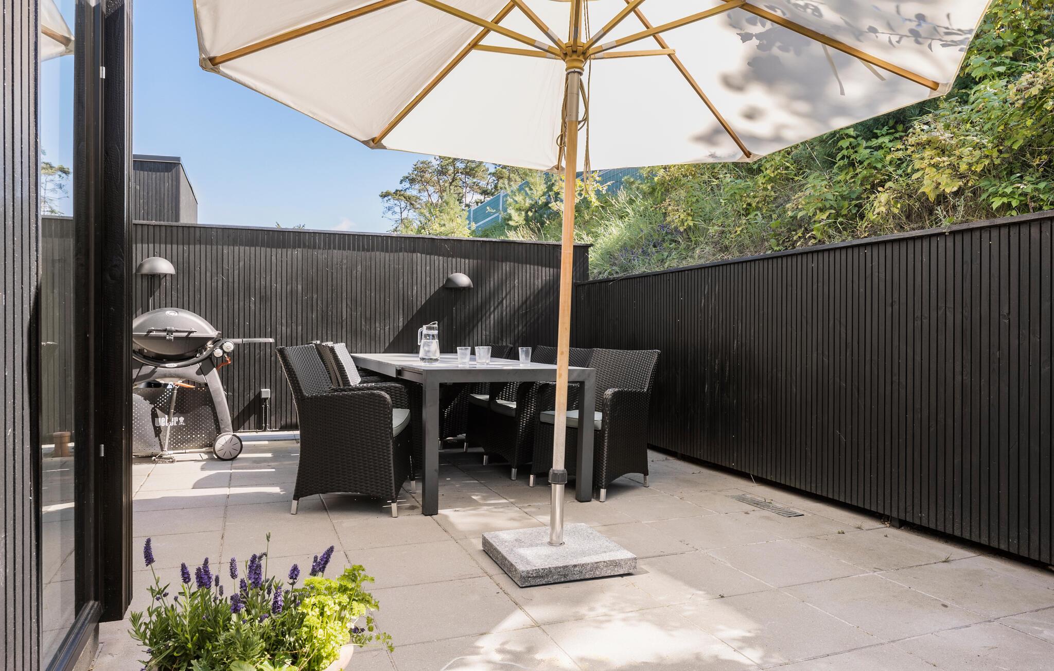 Beleef een heerlijke vakantie op Gilleleje Strand in dit moderne vakantiehuis. Het huis is een echt juweeltje dat indruk maakt met zijn open en lichte ontwerp. De ruime woonkamer met hoge plafonds en grote ramen laat veel natuurlijk licht binnen en creëert een uitnodigende, ontspannen sfeer. Je kunt ontspannen op de comfortabele banken na een dag op het strand. De goed uitgeruste keuken nodigt uit om samen te koken en te genieten van gezellige maaltijden. Het eetgedeelte is naadloos geïntegreerd in het woongedeelte, waardoor een open en communicatieve sfeer ontstaat. Op warme dagen kun je ook genieten van je maaltijden op het beschutte terras, dat direct grenst aan de woonkamer en is uitgerust met comfortabel tuinmeubilair en een barbecue.