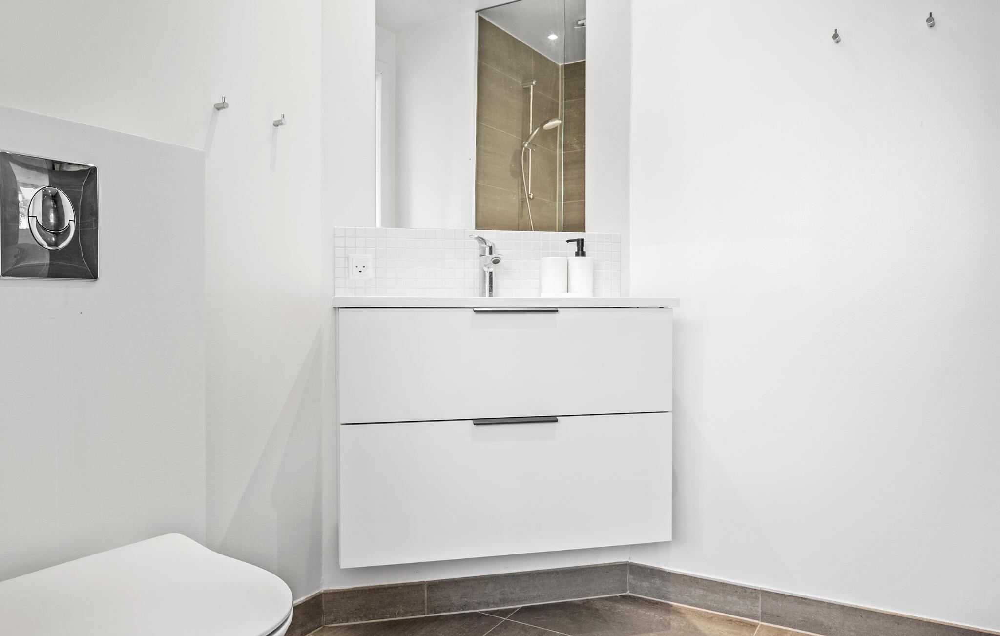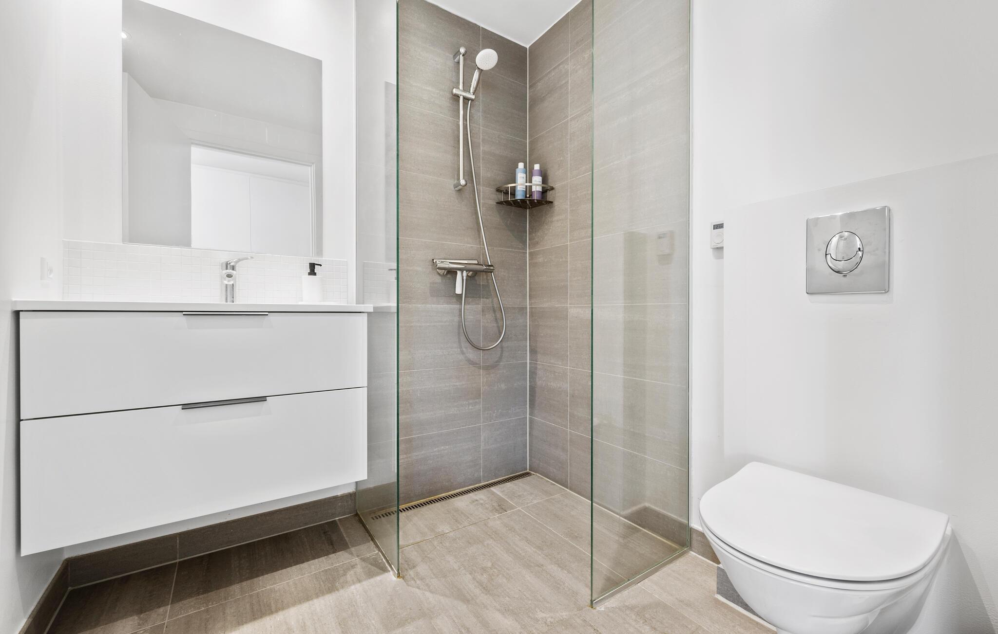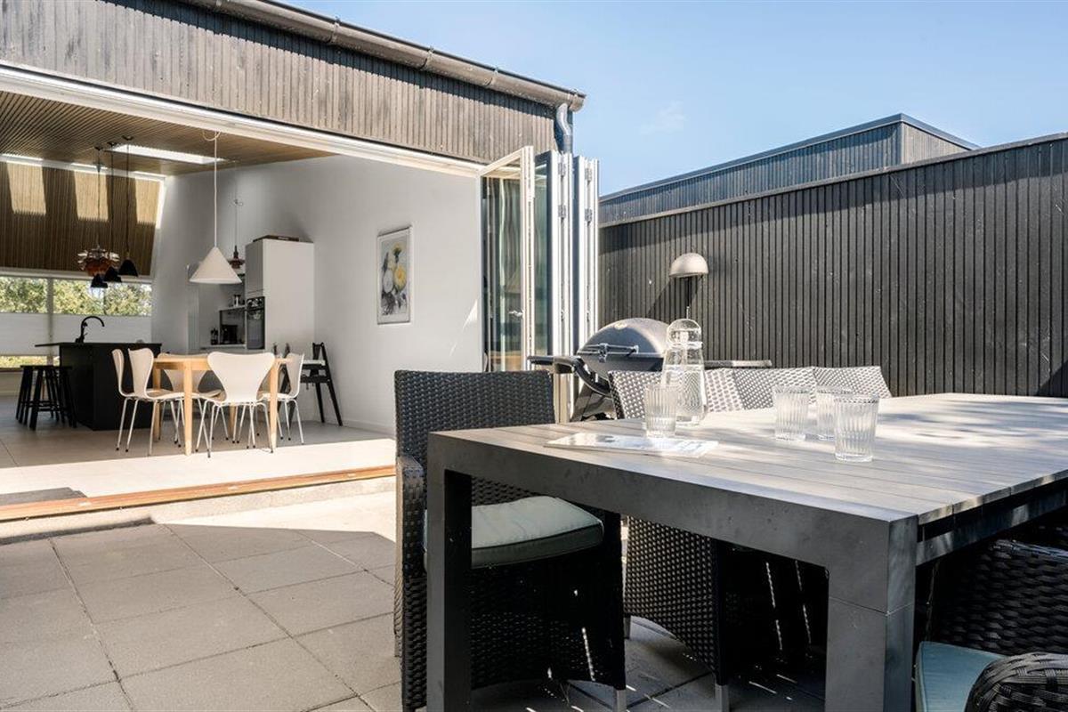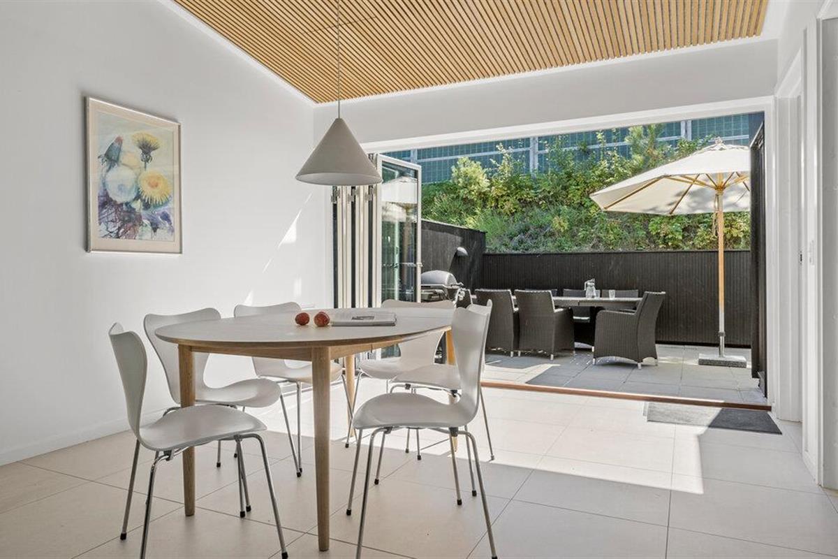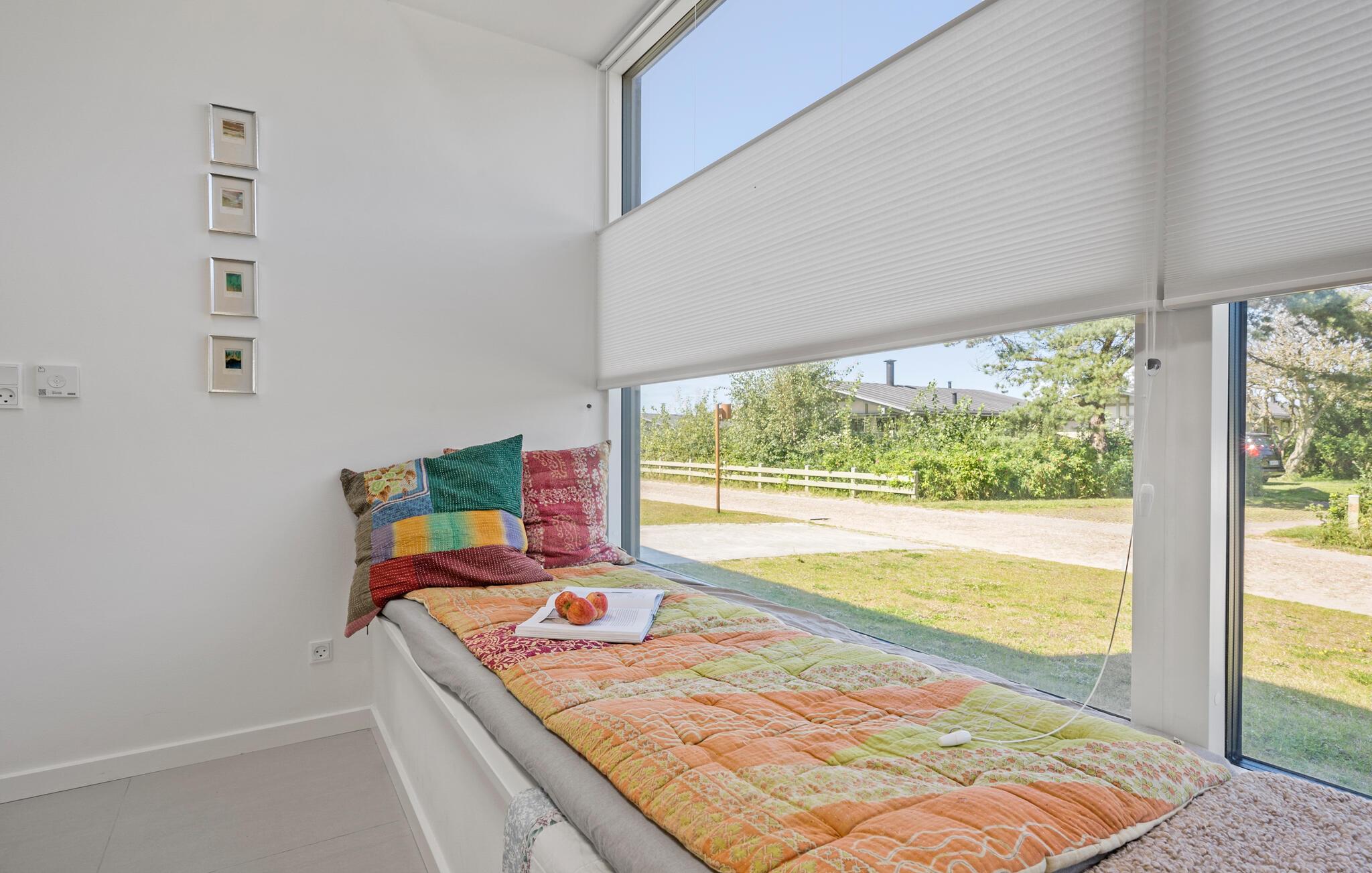 Beleef een heerlijke vakantie op Gilleleje Strand in dit moderne vakantiehuis. Het huis is een echt juweeltje dat indruk maakt met zijn open en lichte ontwerp. De ruime woonkamer met hoge plafonds en grote ramen laat veel natuurlijk licht binnen en creëert een uitnodigende, ontspannen sfeer. Je kunt ontspannen op de comfortabele banken na een dag op het strand. De goed uitgeruste keuken nodigt uit om samen te koken en te genieten van gezellige maaltijden. Het eetgedeelte is naadloos geïntegreerd in het woongedeelte, waardoor een open en communicatieve sfeer ontstaat. Op warme dagen kun je ook genieten van je maaltijden op het beschutte terras, dat direct grenst aan de woonkamer en is uitgerust met comfortabel tuinmeubilair en een barbecue.