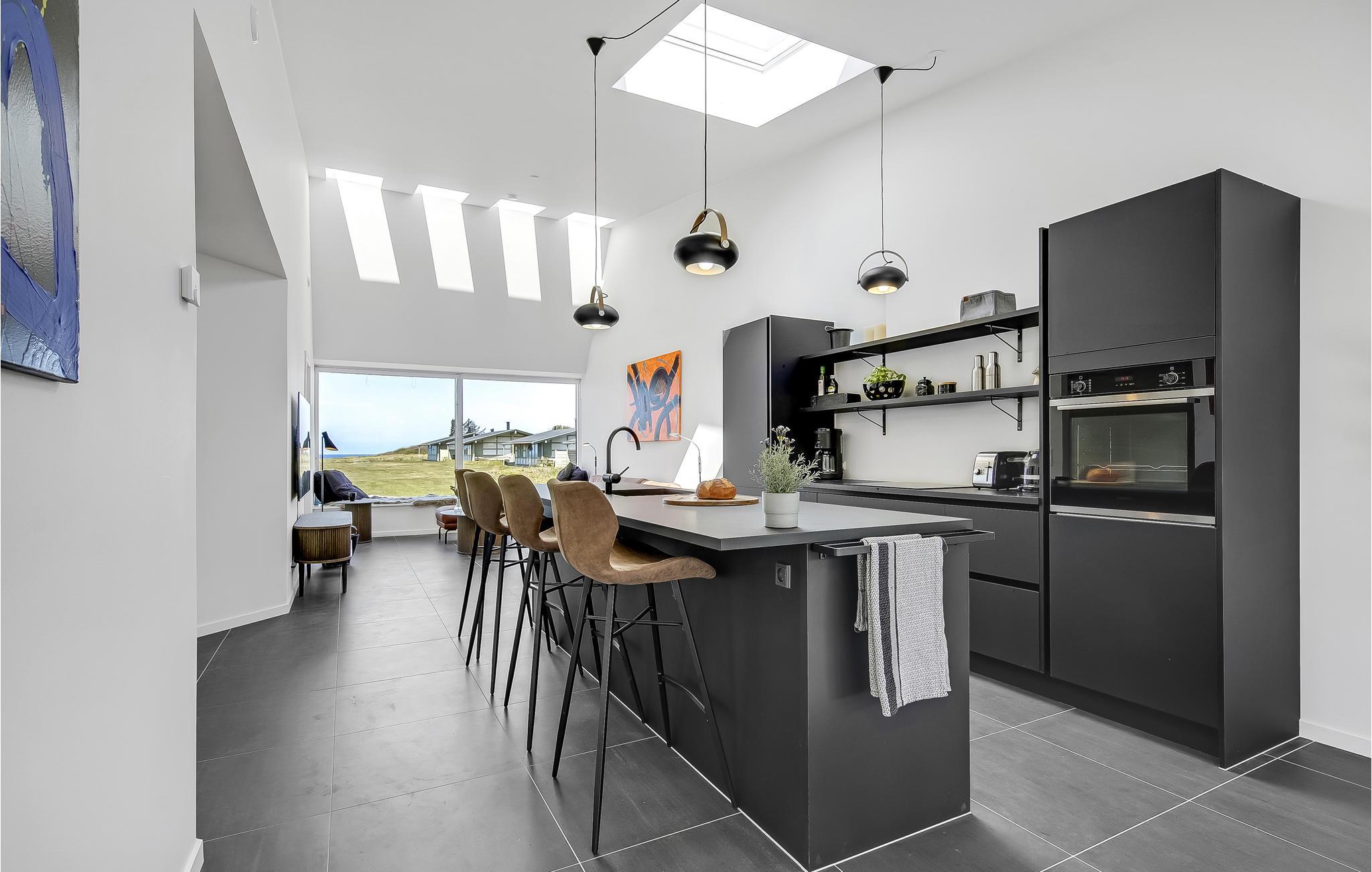 Zeer dicht bij de populaire kust bij Gilleleje vindt u dit aantrekkelijke vakantiehuis. Hier krijgt u een hoogwaardig interieur met moderne, praktische voorzieningen en stijlvolle meubels in Scandinavische stijl. Het kamerontwerp met vensterfront en dakramen zorgt voor een goede lichtinval en een zeer aangename sfeer. Maak het uzelf comfortabel bij het raam met uw favoriete boek en een kopje thee en laat uw ogen na een hoofdstuk naar de zee dwalen.