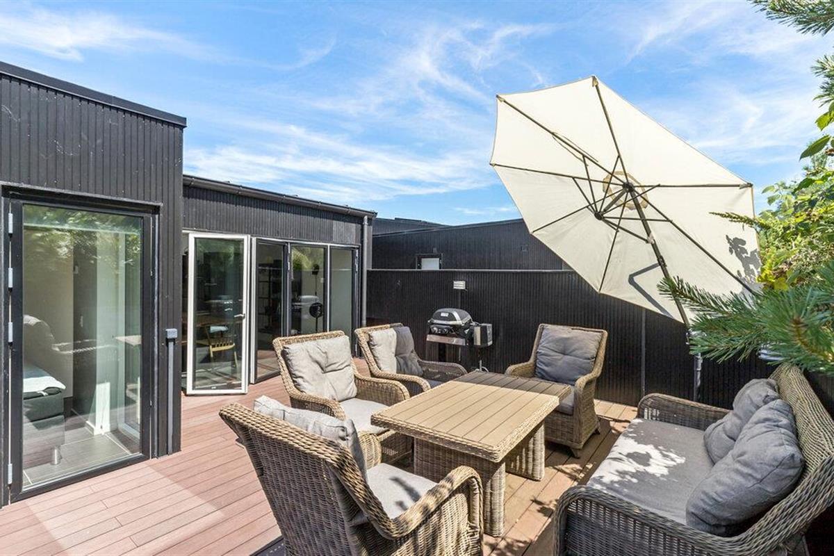 Modern vakantiehuis met zeezicht, dichtbij zandstrand en eigen omheinde tuin in Gilleleje.