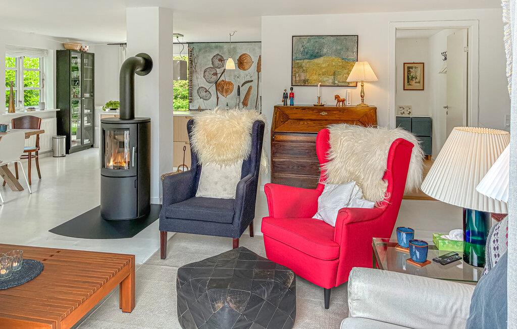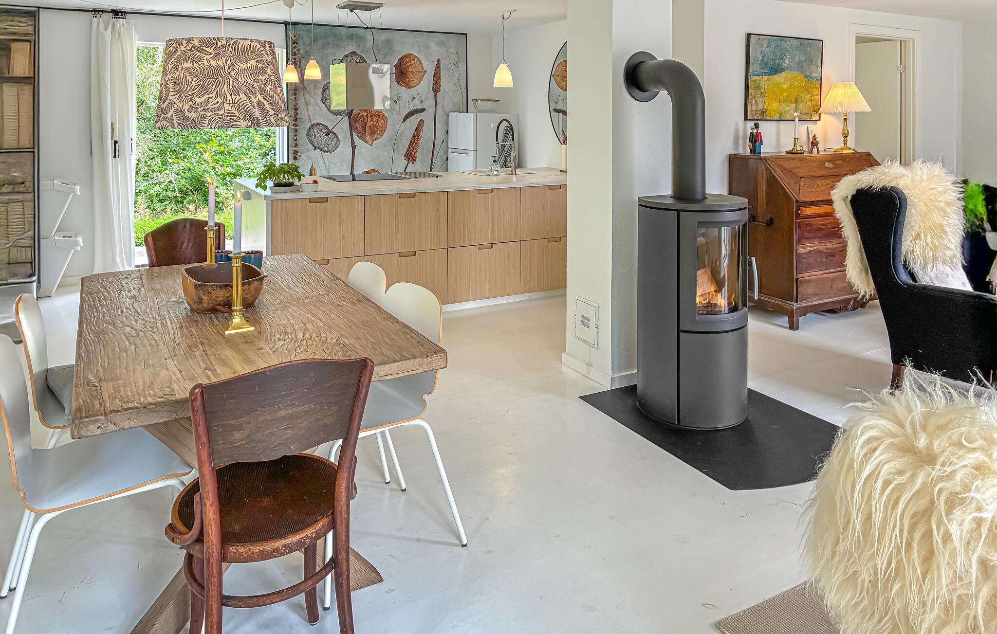 Je vakantiehuis ademt een huiselijke en gezellige sfeer uit. De goede locatie en de eigen zwemsteiger op het nabijgelegen strand maken deze plek tot een bijzondere vakantiebestemming. Stap binnen en laat je verwelkomen door de lichte en vriendelijke sfeer. De woonkamer met gezellige fauteuils en een houtkachel nodigt je uit om ontspannende uren door te brengen. Bereid culinaire hoogstandjes in de moderne keuken met een royaal werkblad en hoogwaardige apparatuur.