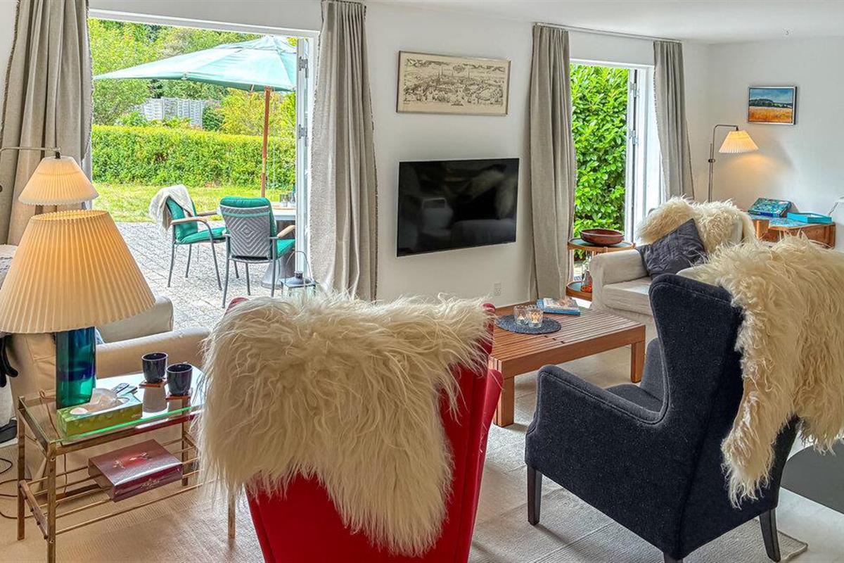 Charmant vakantiehuis met eigen zwemsteiger nabij het strand in Gilleleje, ideaal voor een ontspannen verblijf.