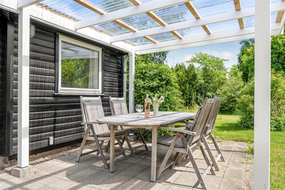 Buiten nodigt het terras uit tot mooie momenten in de buitenlucht. Begin de dag hier met een heerlijk ontbijt en plan de activiteiten van de dag. Op het overdekte terras staan mooie loungemeubelen.
