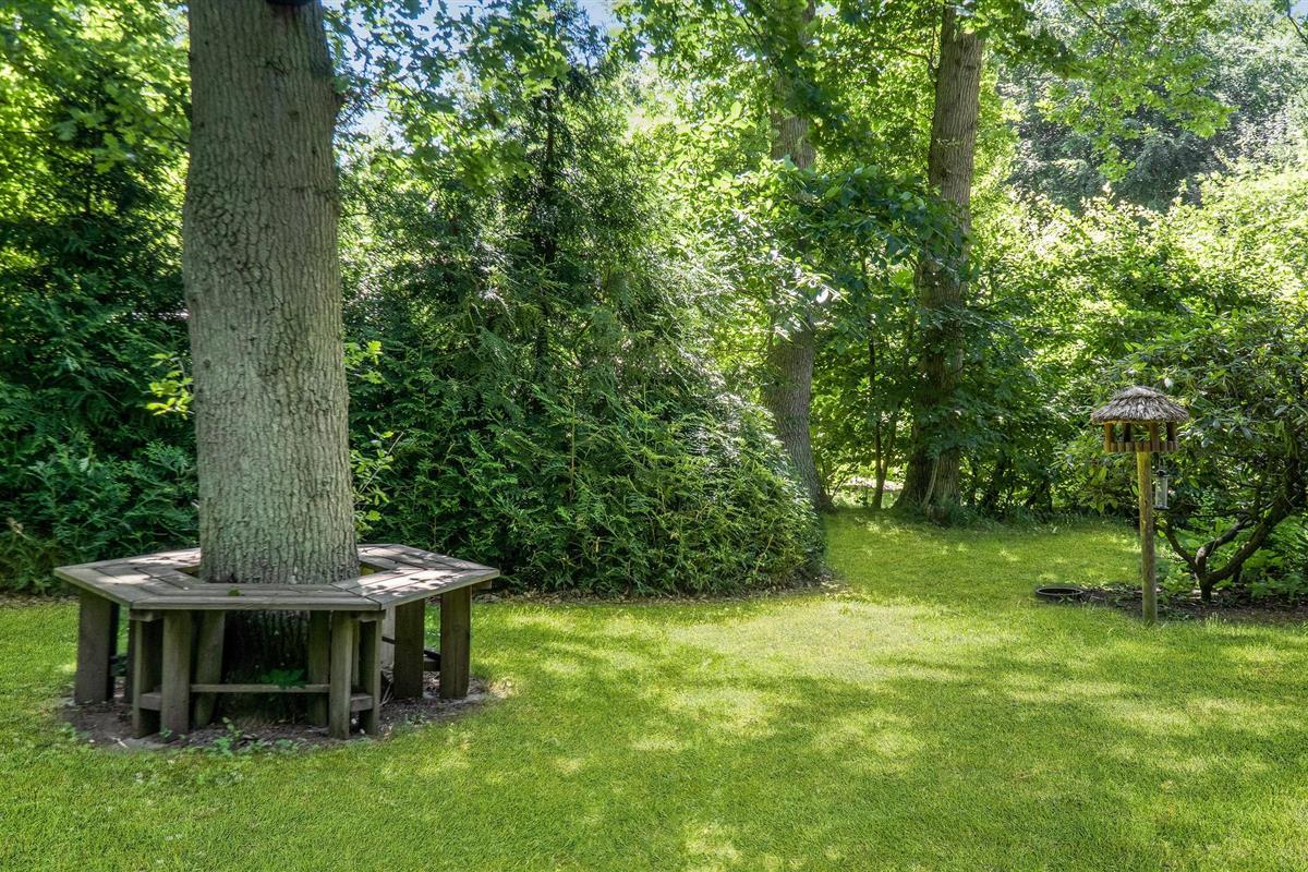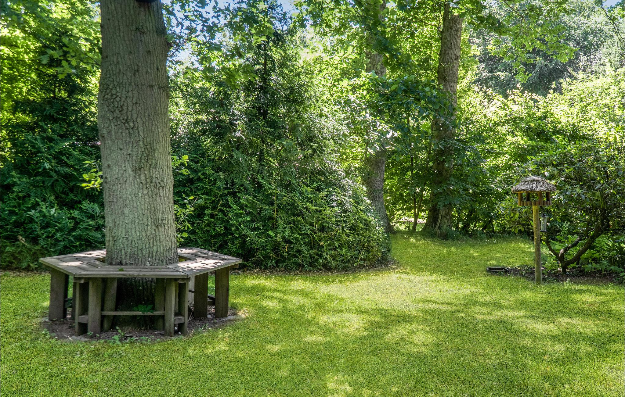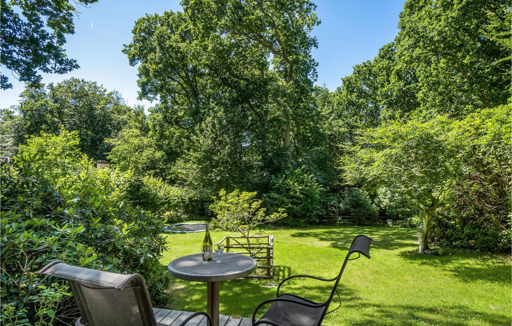 De tuin met zijn prachtige bomen en vele hoekjes is een ware oase om te ontspannen en te spelen. Maak het uzelf gemakkelijk met uw vakantie lectuur op de houten veranda of onder de oude eik en geniet van de rust van de natuur. Laat de kinderen zich vermaken op het terrein of op de trampoline en maak het 's avonds gezellig rond het kampvuur.