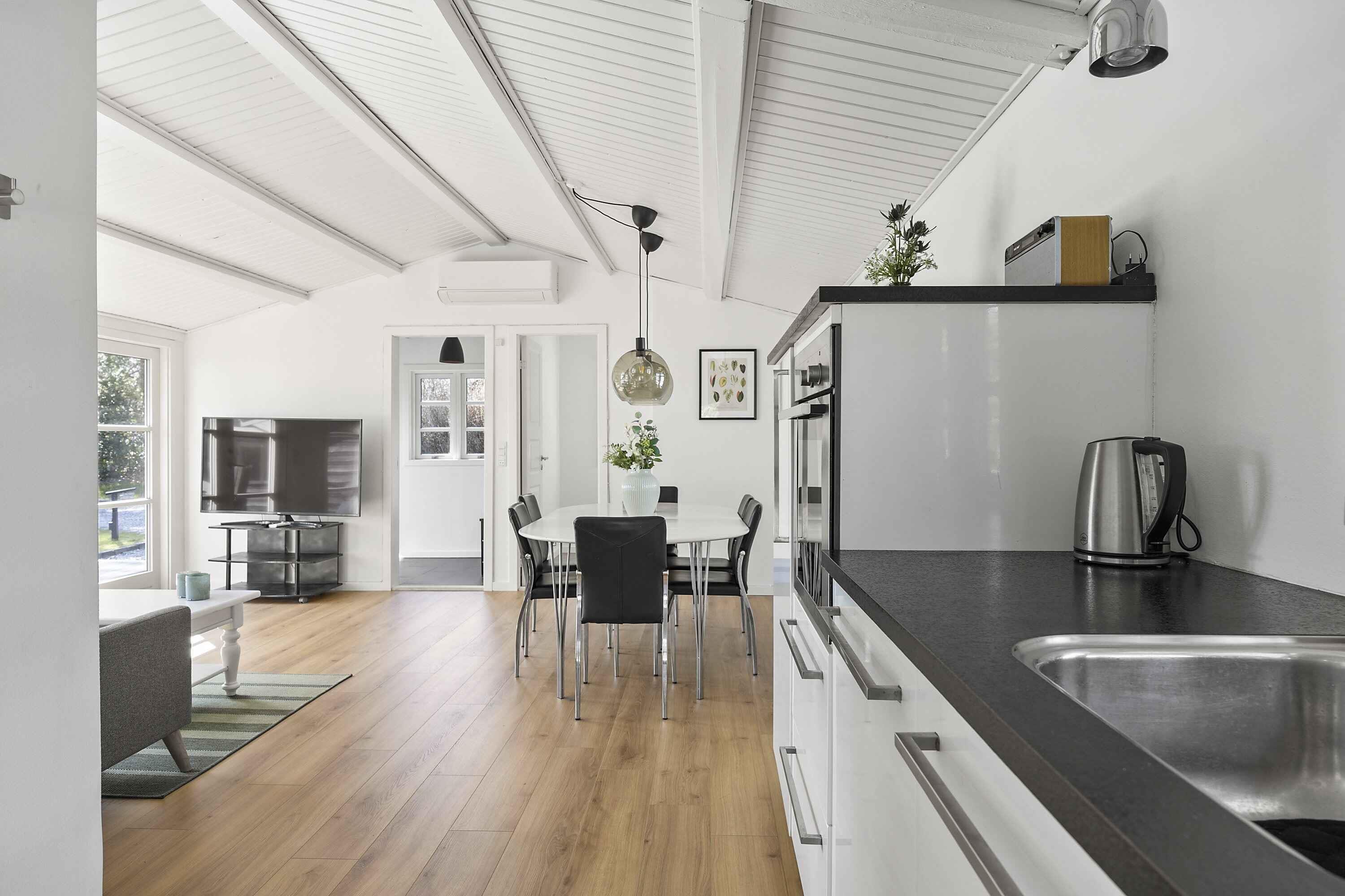 Welkom in Byåsen 22 – een lichte en uitnodigende vakantiewoning in rustige, groene omgeving dicht bij Gilleleje, Hornbæk en enkele van de beste stranden van Noord-Sjælland. Hier ervaart u rust, comfort en echte vakantiesfeer vanaf het eerste moment. Het hoofdgebouw heeft een lichte en functionele indeling met een ruime woonkamer en open keuken, waar grote ramen uitkijken op de tuin. Er is voldoende plek voor gezamenlijke maaltijden en gezellige momenten. Er zijn twee slaapkamers: een kinderkamer met stapelbed (190 cm) en een slaapkamer met tweepersoonsbed, plus een lichte badkamer in klassieke Scandinavische stijl. De bijgebouwen bieden extra flexibiliteit: • een nieuwer bijgebouw met tweepersoonsbed – ideaal voor gasten of tieners • een kleiner, ouder bijgebouw met twee eenpersoonsbedden (niet geschikt voor wintergebruik) Buiten staat centraal met een groot houten terras met eethoek en ligstoelen en een ruime grasweide met volop plek om te spelen en te ontspannen. De omgeving biedt mooie natuur, gezellige cafés, havenleven en fijne wandel- en fietsroutes langs de kust. Hornbæk en Gilleleje liggen dichtbij, Helsingør is bereikbaar in 20 min. en Kopenhagen in ca. 45 min. De lokale trein “Grisen” ligt slechts 600 meter verderop. Een heerlijk toevluchtsoord voor rust, samenzijn en familievakanties – het hele jaar door.