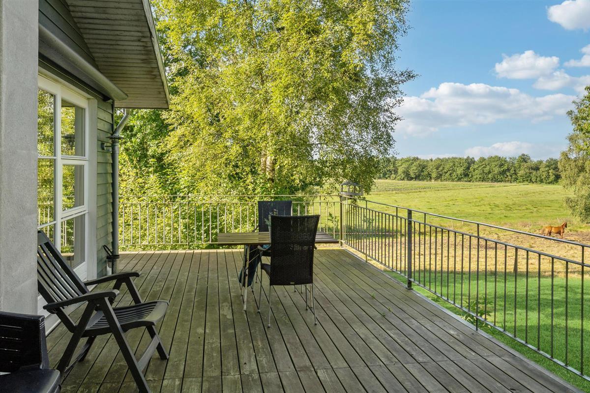Mooie landelijke vakantiewoning nabij Give met balkon en uitzicht op paardenweide, ideaal voor een ontspannen familievakantie.