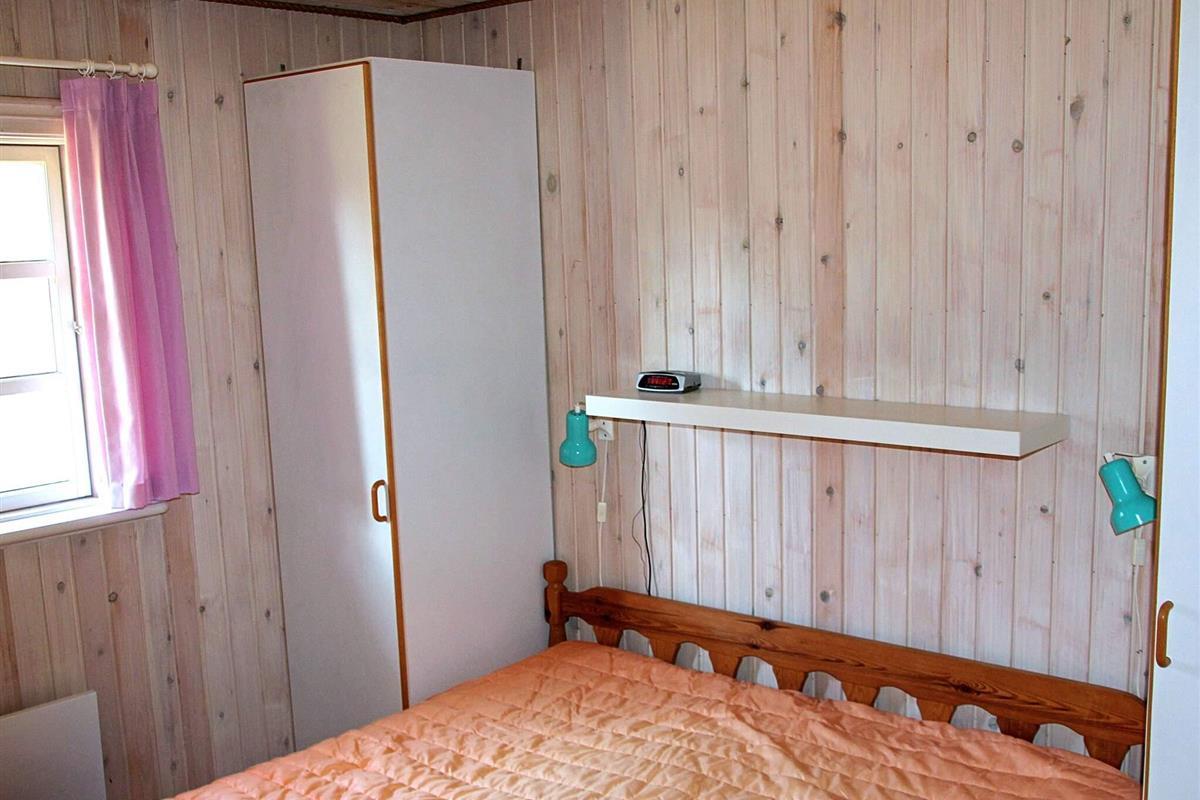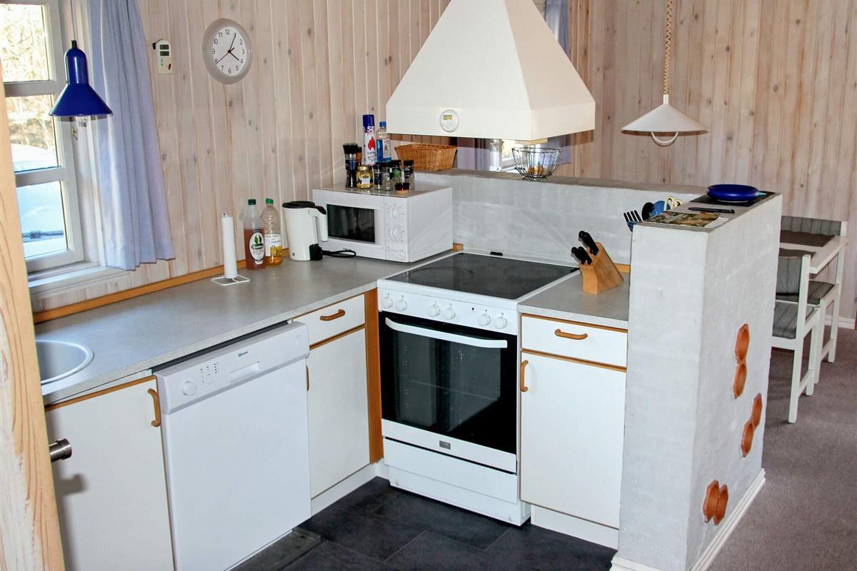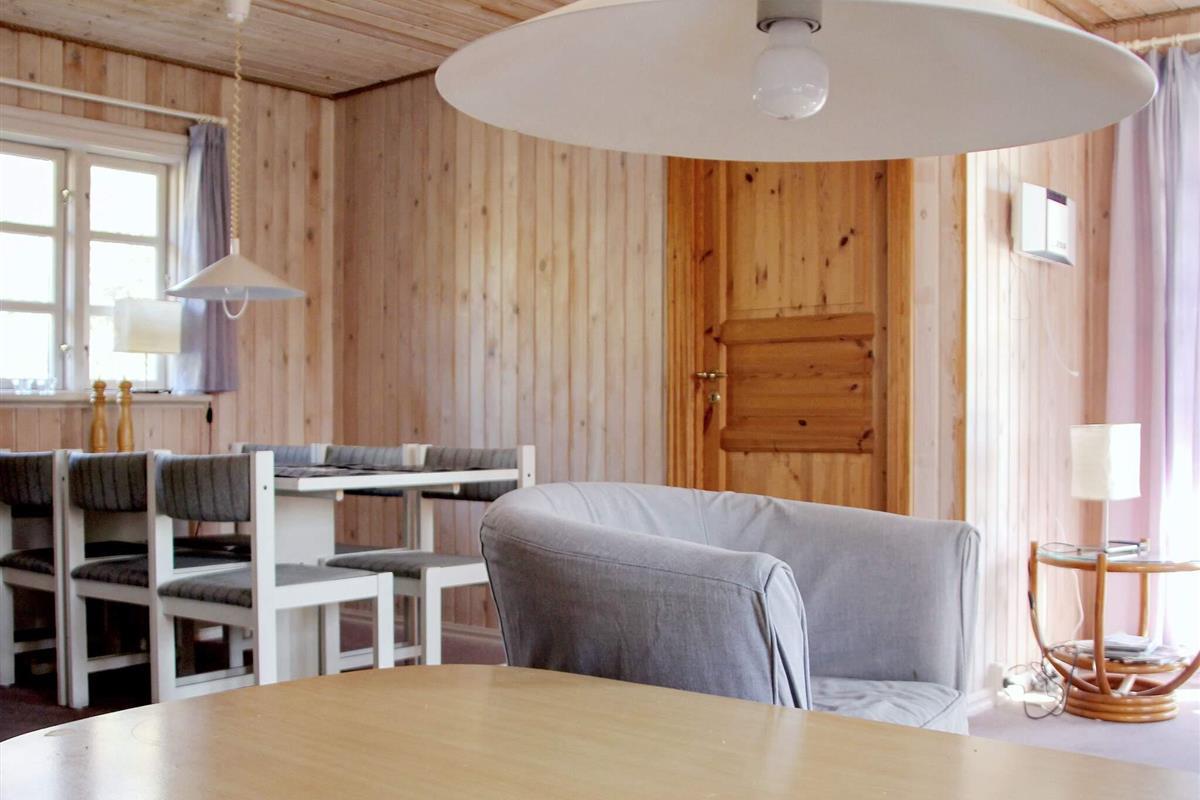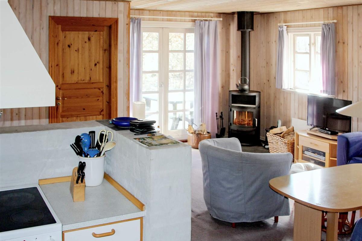 Ferienhaus bei Gjøl, auf einem 2500 m2 großen Naturgrundstück gelegen, umgeben von hohen, schützenden Bäumen. Das ältere Ferienhaus ist u.a. mit drei Schlafzimmern ausgestattet, zwei davon mit je einem Doppelbett, das dritte mit einem Einzelbett. Zur Einrichtung im Wohnbereich gehören u.a. Flachbildfernseher mit einigen deutschen Sendern, WLAN, Stereoanlage mit CD-Player und ein guter Holzofen. Badezimmer mit Dusche/WC und angenehmer Fußbodenheizung. Küche mit Kühl-/Gefrierschrank, Kaffeemaschine und Geschirrspüler.