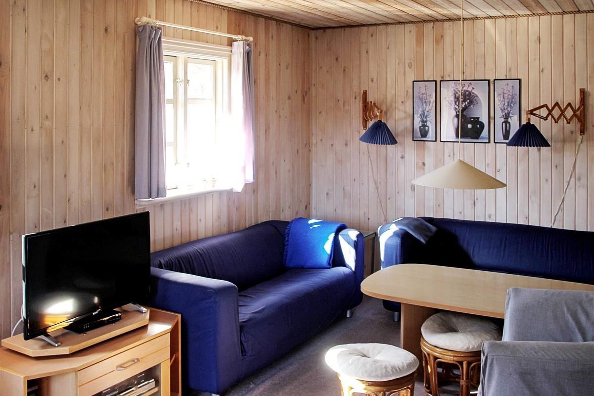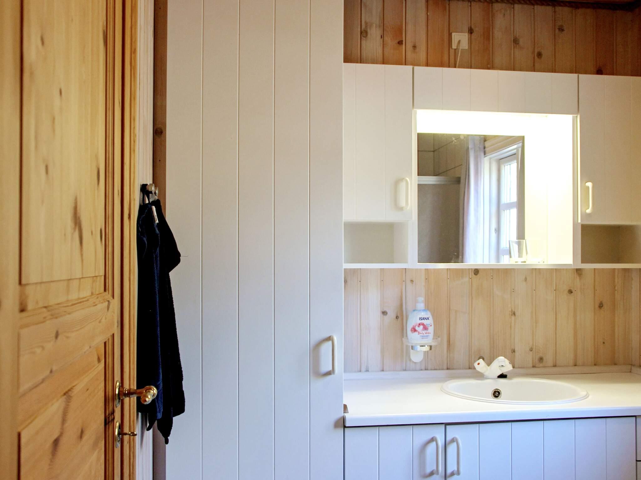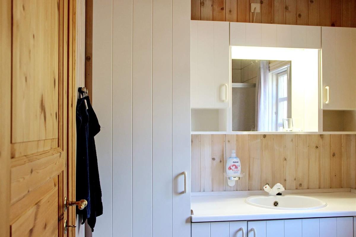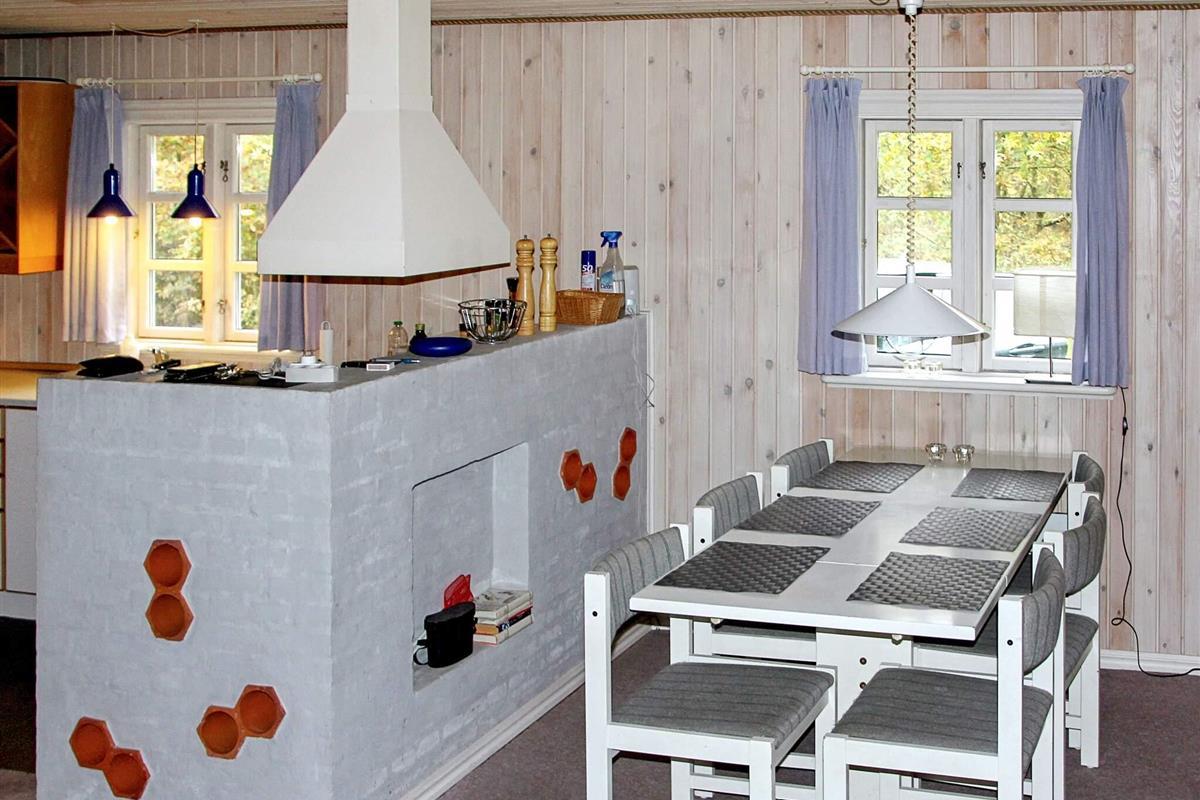 Ferienhaus bei Gjøl, auf einem 2500 m2 großen Naturgrundstück gelegen, umgeben von hohen, schützenden Bäumen. Das ältere Ferienhaus ist u.a. mit drei Schlafzimmern ausgestattet, zwei davon mit je einem Doppelbett, das dritte mit einem Einzelbett. Zur Einrichtung im Wohnbereich gehören u.a. Flachbildfernseher mit einigen deutschen Sendern, WLAN, Stereoanlage mit CD-Player und ein guter Holzofen. Badezimmer mit Dusche/WC und angenehmer Fußbodenheizung. Küche mit Kühl-/Gefrierschrank, Kaffeemaschine und Geschirrspüler.