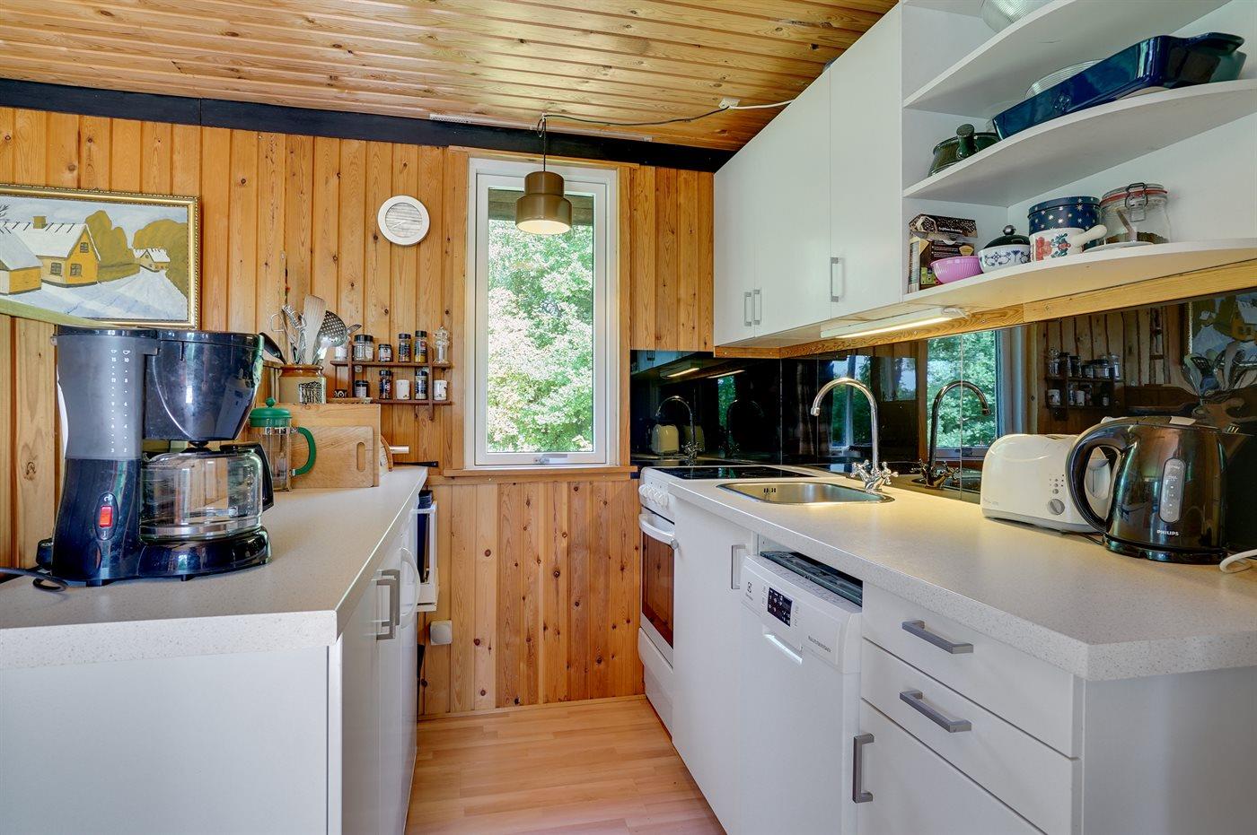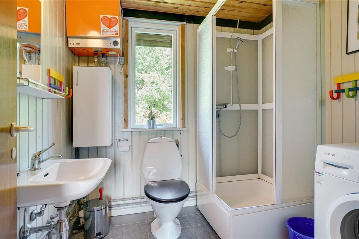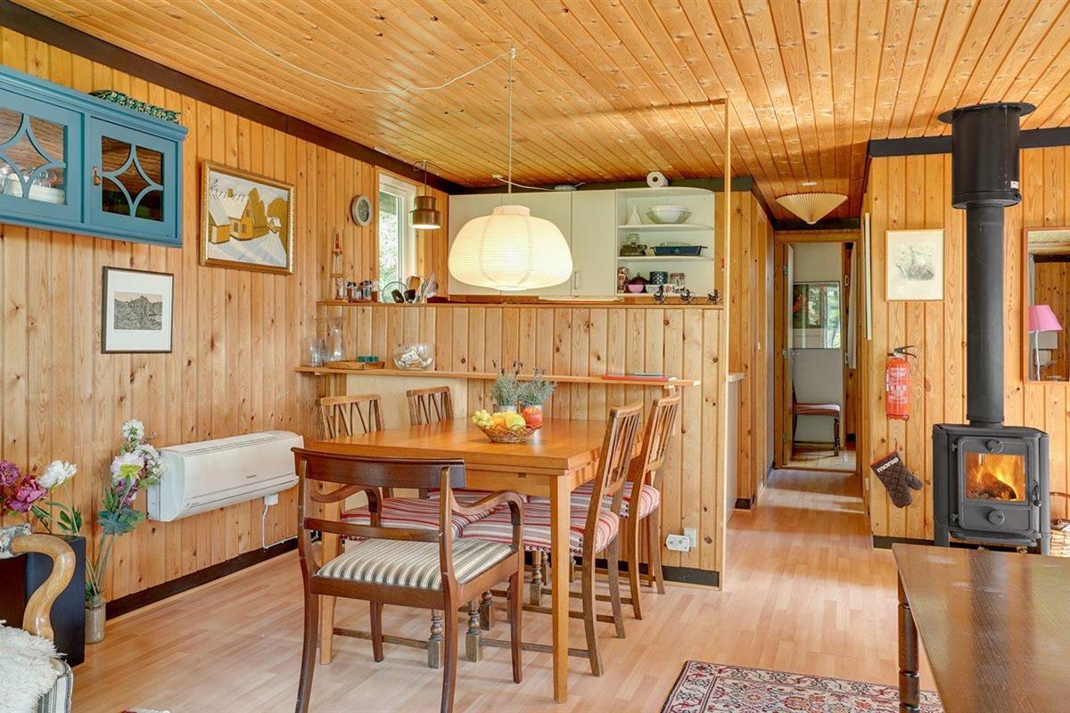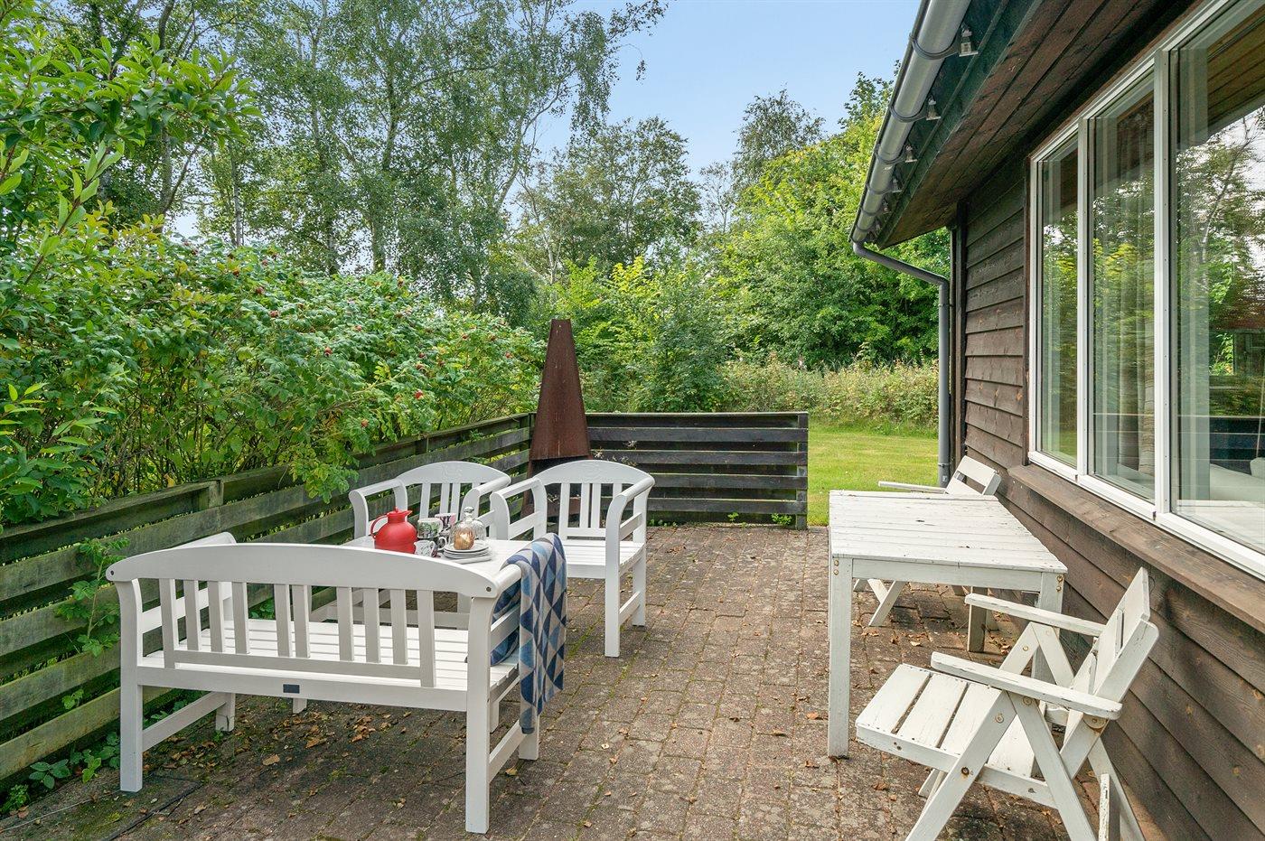 De vakantiewoning is gelegen op een 2500 m² groot natuural grond. Afstand tot de zee 25000 m. Afstand tot de fjord 100 m. Dichtstbijzijnde winkel 3000 m. Bij de vakantiewoning hoort 16 m² terras. Zandbak. Parkeerplaats bij het huis.